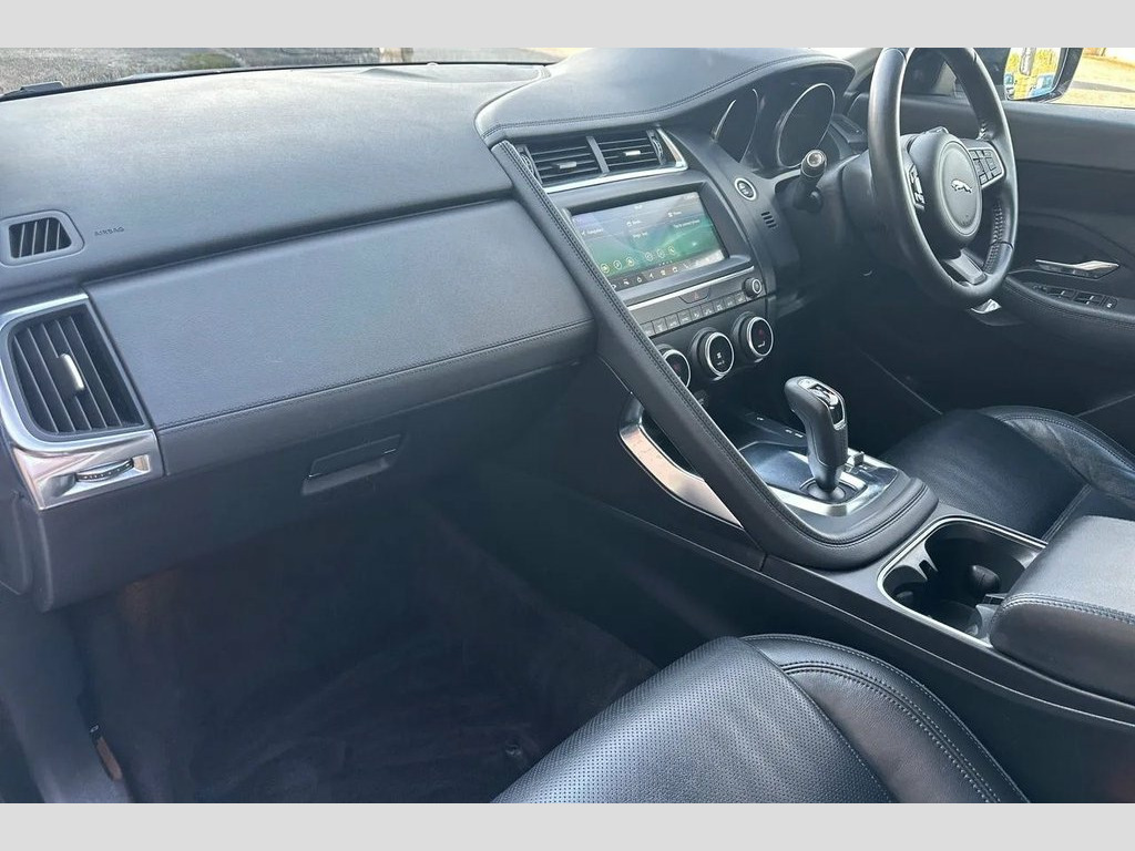 Don't miss this striking all-wheel drive JAGUAR E-Pace 'S' 2.0 diesel automatic. Finished in White with a contrasting black leather interior this popular 4x4 SUV features; front heated seats and windscreen, electronically operated tailgate, cruise and climate control and automatic headlights. There is front and rear parking sensors and a rear parking camera fitted as well as 4 x 12v power points and 2x USB. This car features the sought after 'Black Pack'. Fred Coupe is a NISSAN and INFINITI authorised repairer and a multiple global award winner for customer service as well as a 4th generation family business. We pride ourselves on quality, reliability, great service and good value. *Buy online, visit www.fredcoupe.co.uk * The vehicle comes with a 12 month warranty and we can deliver nationwide. We charge NO administration fee. Vehicle registered: 27/09/2019 10-Way Heated Electric Front Seats, 10in Touch Pro, 18in Alloy Wheels - 9 Spoke Gloss Sparkl, 2-Zone Climate Control, 3-Flash Lane Change Indicators, 60-40 Split Fold Rear Seat, ABS - Anti-locking Braking System, AM-FM Radio, ASPC - All Surface Progress Control, Airbags - Front Side, Airbags - Full Length Side Window Curtai, Analogue Dials with Central TFT Display, Android Auto, Apple CarPlay, Approach Illumination, Auto-Dimming - Power Fold - Heated Door , Auto-Dimming Interior Rear View Mirror, Automatic Headlights, Bluetooth Connectivity, Body Coloured Roof, Body-Coloured Bumpers, Carpet Mats, Centre Console with Armrest, Chrome Side Vents, Connect Pro Pack, Cruise Control with Speed Limi