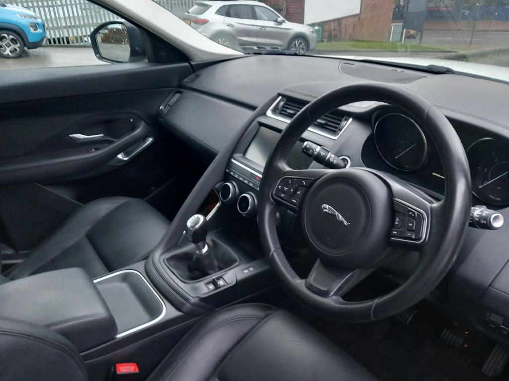 This 2019 Jaguar E-Pace 2.0 D150 S SUV with 59500 miles on the clock is the perfect companion for those long road trips or family outings, with its spacious 5 seats and 5 doors. Powered by a reliable Diesel engine, this SUV is ULEZ compliant, making it an environmentally friendly choice for city driving. The 10-way heated electric front seats and 2-zone climate control ensure a comfortable and luxurious ride, while the 3-flash lane change indicators and 60-40 split fold rear seat add convenience and practicality. With analogue dials and a central TFT display, you'll have all the information you need at your fingertips. This Euro 6 (s/s) engine produces 150 ps, delivering the power and performance you expect from a Jaguar. Stylish, practical, and efficient, this E-Pace is the ideal vehicle for any adventure. This vehicle has only had former keeper and has a good service history and drives without fault and is in great condition throughout and will be supplied with 2 keys and a mechanical breakdown warranty -way heated electric front seats, 2-zone climate control, 3-flash lane change indicators, 60-40 split fold rear seat, analogue dials with central tft display, auto-dimming interior rear view mirror, carpet mats, centre console with armrest, diesel misfuelling protection device, interior lighting, leather steering wheel, light oyster morzine headlining, loadspace cover, loadspace elasticated side-strap, loadspace lighting, loadspace storage net, luggage tie downs in loadspace, metal treadplates with jaguar script, overhead lighting console, passive front head restraints, push button start, rain sensing windscreen wipers, rear air vents, rear bench seat - 3 seats, rear centre headrest, smart settings, sunvisors with illuminated vanity mirrors, twin front cupholders, x4 hooks in loadspace, 10in touch pro, am-fm radio, android auto, apple carplay, bluetooth connectivity, connect pro pack, dab radio, dynamic volume control, navigation pro system, power sockets, pro services and wi-fi hotspot, remote, smartphone pack, sound system - 125w, 18in alloy wheels - 9 spoke gloss sparkle silver - style 9008, auto-dimming - power fold - heated door mirrors with approach lights, body coloured roof, body-coloured bumpers, chrome side vents, d150 badge, e-pace badge, electric windows - front and rear with one-touch open-close and anti-trap, grained black door claddings, grained black grille with chrome surround, heated front windscreen, heated rear window, heated washer jets, jaguar script and leaper, locking wheel nuts, manual tailgate - boot lid, rear fog lights, s badge, satin black side window surround, summer tyres, tailgate spoiler, twin tailpipes, tyre repair system, abs - anti-locking braking system, airbags - front side, airbags - full length side window curtain, customer configurable autolock, dynamic stability control - dsc, eba - emergency brake assist, ebd - electronic brake-force distribution, epb - electric parking brake, emergency braking, front airbags with passenger seat occupant detector, hill launch assist, intrusion sensor, lane keep assist, power operated child locks, rear isofix, seat belt reminder, approach illumination, automatic headlights, led headlights with signature daytime running lights, cruise control with speed limiter, driver condition monitor, eco driving style assistant, epas - electric power assisted steering, front and rear parking aid, jaguardrive control, outside temperature gauge, passive suspension, rear view camera, speed proportional steering, start up sequence with movement - dials and lighting, traffic sign recognition with adaptive speed limiter, trip computer, tyre pressure monitoring system, voice control