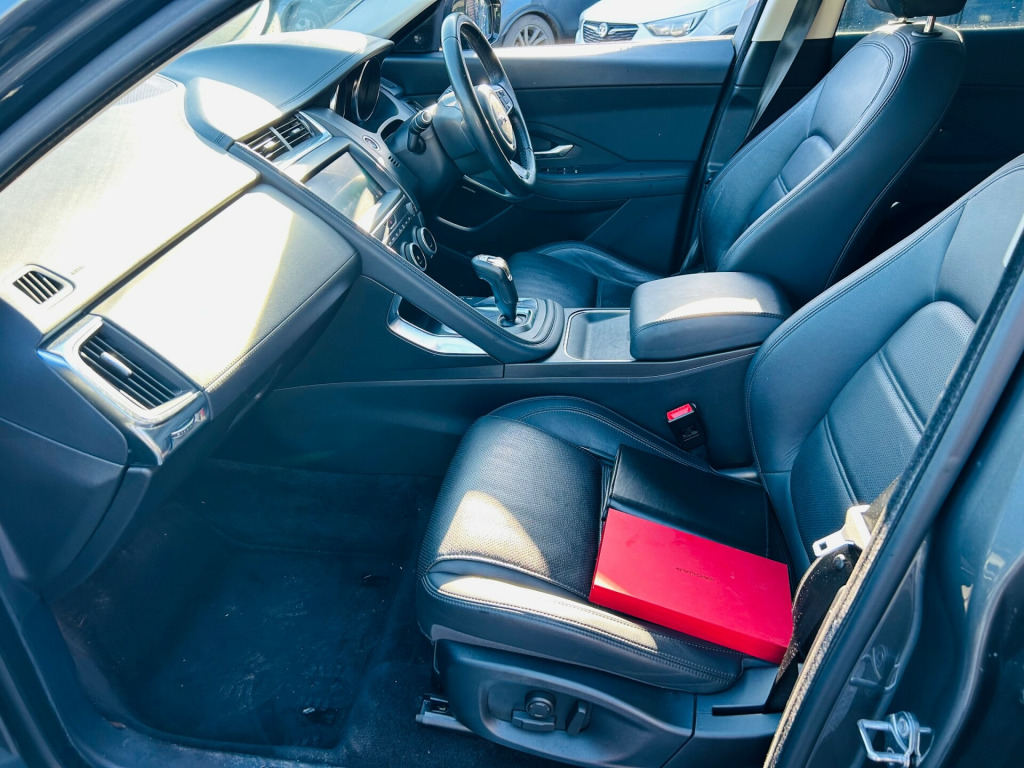This 2018 Jaguar E-Pace 2.0 D150 SE SUV with 33100 miles is the perfect blend of luxury and practicality. Powered by a Euro 6 (s/s) 150 ps Diesel engine and equipped with a smooth 5-door automatic transmission and AWD, this ULEZ compliant SUV offers both power and efficiency. Inside, the 5-seater boasts a spacious, modern cabin with luxurious features including a 10-inch Touch Pro infotainment system, AM-FM radio, Bluetooth connectivity, Connect Pro Pack, and DAB radio. With its sleek design and top-notch technology, this Jaguar E-Pace is ready to take on any adventure in style and comfort.- Extended Warranties Available - Finance Available - Part Exchange Welcome, in touch pro, am-fm radio, bluetooth connectivity, connect pro pack, dab radio, dynamic volume control, incontrol apps, meridian sound system - 380w, navigation pro system, power sockets, remote, 14-way electric memory front seats, 2-zone climate control, 3-flash lane change indicators, 60-40 split fold rear seat, analogue dials with central tft display, auto-dimming interior rear view mirror, centre console cubby box, centre console with armrest, diesel misfuelling protection device, hooks in loadspace, interior lighting, leather steering wheel, light oyster morzine headlining, loadspace cover, loadspace elasticated side-strap, loadspace lighting, loadspace storage net, luggage tie downs in loadspace, metal treadplates with jaguar script, overhead lighting console, passive front head restraints, power tailgate-boot lid, push button start, rain sensing windscreen wipers, rear air vents, rear bench seat - 3 seats, rear centre headrest, sunvisors with illuminated vanity mirrors, twin front cupholders with cover, 19in alloy wheels - 10 spoke style 1039, auto-dimming - power fold - heated door mirrors with memory and approach lights, body coloured roof, body-coloured bumpers, chrome side vents, d150 awd badge, e-pace badge, electric windows - front and rear with one-touch open-close and anti-trap, grained black door claddings, grained black grille with chrome surround, heated front windscreen, heated rear window, heated washer jets, jaguar script and leaper, locking wheel nuts, rear fog lights, se badge, satin black side window surround, summer tyres, tailgate spoiler, twin tailpipes, tyre repair system, abs - anti-locking braking system, aspc - all surface progress control, airbags - front side, airbags - full length side window curtain, customer configurable autolock, dynamic stability control - dsc, eba - emergency brake assist, ebd - electronic brake-force distribution, epb - electric parking brake, emergency braking, front airbags with passenger seat occupant detector, hill launch assist, intrusion sensor, lane keep assist, park pack, power operated child locks, rear isofix, seat belt reminder, approach illumination, auto high beam assist, automatic headlights, led headlights with signature daytime running lights, driver condition monitor, eco driving style assistant, epas - electric power assisted steering, efficient driveline, jaguardrive control, outside temperature gauge, passive suspension, rear view camera, speed proportional steering, start up sequence with movement - dials and lighting, torque vectoring by braking - tvbb, traffic sign recognition with adaptive speed limiter, trip computer, tyre pressure monitoring system, voice control