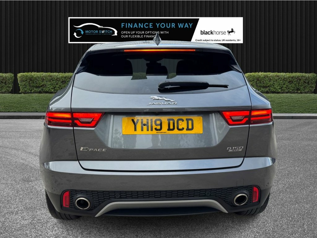 Jaguar E-Pace D150 SE SUV 5dr 2.0 Diesel Automatic AWD Euro 6 Switch your drive from ordinary to extraordinary. Your New Motor is just a switch away. Key highlights Full 12-month nationwide warranty MOT valid until 18 May 2026 5 service history stamps, last serviced at 99,361 miles 2 Previous keepers Finance from 10.9% APR Delivery available; Part Exchange welcome Fully valeted with Auto Smart products HPI clear and mileage checked Specification highlights 10" Touch Pro infotainment 14-way heated memory front seats 19" Style 1039 alloy wheels (10-spoke, gloss sparkle silver) 2-zone climate control 360° parking aid with rear camera Lane change indicators, auto high beam, auto-dimming mirrors Android Auto & Apple CarPlay Bluetooth, DAB, Android Auto, Apple CarPlay Cruise control with speed limiter Traffic Sign Recognition with Adaptive Speed Limiter Park Assist, Rear Traffic Monitor, Rear ISOFIX Traction and stability: DSC, ABS, EBD Eco driving style assistant, hill launch assist Electric parking brake, EPAS, power-operated windows Leather steering wheel, privacy glass, and more Safety and convenience Advanced driver assistance: Lane Keep Assist, Traffic Sign Recognition with Adaptive Speed Limiter, Rear View Camera, Park Assist Misfuelling protection All surface progress control (ASPC) Tyre pressure monitoring and vehicle health checks Push-button start and rain-sensing wipers Why choose this E-Pace? Impeccable service histor 10in Touch Pro, 14-Way Heated Electric Memory Front Seat, 19in Alloy Wheels - 10 Spoke Gloss Spark, 2-Zone Climate Control, 3-Flash Lane Change Indicators, 360 Degree Parking Aid, 60-40 Split Fold Rear Seat, ABS - Anti-locking Braking System, AM-FM Radio, ASPC - All Surface Progress Control, Airbags - Front Side, Airbags - Full Length Side Window Curtai, Analogue Dials with Central TFT Display, Android Auto, Apple CarPlay, Approach Illumination, Auto High Beam Assist, Auto-Dimming - Power Fold - Heated Door , Auto-Dimming Interior Rear View Mirror, Automatic Headlights, Bluetooth Connectivity, Body Coloured Roof, Body-Coloured Bumpers, Carpet Mats, Centre Console with Armrest, Chrome Side Ve