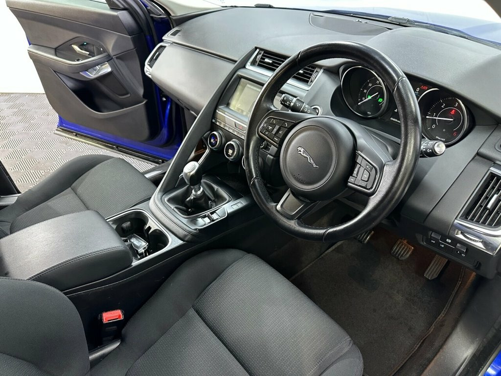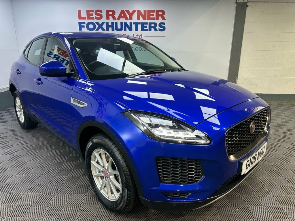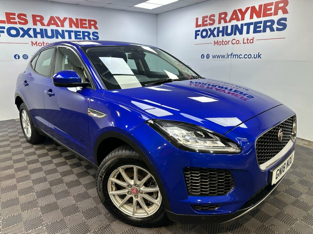 GN18NOU JAGUAR E-PACE 2.0 D150 SUV 5dr Diesel Manual Euro 6 (s/s) (150 ps)- 34K miles- 2 former keeper- - E-Pace looks stunning in Caesium blue and offers a brilliant specification of 17 inch alloys, reversing camera, front and rear parking sensors, LED headlights, electric folding wing mirrors, multifunction steering wheel, cruise control, autolights, drive modes, stop start, dual zone climate control, air conditioning, quick clear front screen, bluetooth, DAB/FM Radio, electric windows and remote locking. Full service and new MOT completed at sale so you can buy with confidence. Whats App Part Ex Valuation Hotline! Send photo's and details to 07591835255 Caesium Blue