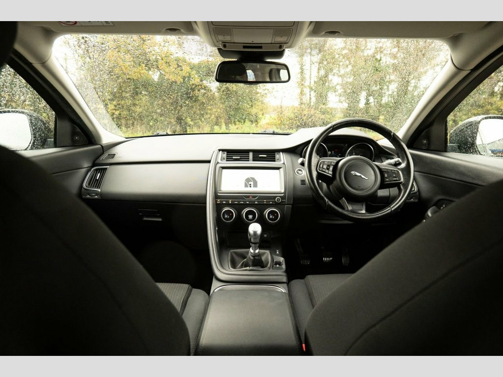 Prestige Car Supermarket in York presents this capable and efficient 2018 Jaguar E-PACE 2.0 D150 SUV. Finished in optional Corris Grey metallic paintwork, costing £615.00, this five-door SUV is powered by a 150 horsepower diesel engine paired with a manual gearbox and is Euro 6 compliant. The exterior styling is complemented by 17in 10-Spoke Style 1005 Alloy Wheels and features a Body Coloured Roof, Chrome Side Vents, and Satin Black Side Window Surround. The interior is comfortable and practical, trimmed in Ebony Fabric, featuring 8-Way Manual Front Seats, 2-Zone Climate Control, and the Light Oyster Morzine Headlining. Technology and convenience features include the 10in Touch Pro infotainment system, DAB Radio, Bluetooth Connectivity, a Leather Steering Wheel, and the JaguarDrive Control system. Driver aids are comprehensive, including LED Headlights, Front and Rear Parking Aid, a Rear View Camera, Lane Keep Assist, Cruise Control with Speed Limiter, and Emergency Braking, ensuring a secure and well-equipped driving experience. Fabric - Ebony with Ebony-Ebony Interior, Corris Grey, 10in Touch Pro, 17in Alloy Wheels - 10 Spoke Style 1005, 2-Zone Climate Control, 3-Flash Lane Change Indicators, 5in Display with Instrument Panel, 60-40 Split Fold Rear Seat, 8-Way Manual Front Seats, ABS - Anti-locking Braking System, Airbags - Front Side, Airbags - Full Length Side Window Curtai, Approach Illumination, Automatic Headlights, Bluetooth Connectivity, Body Coloured Roof, CBC - Cornering Brake Control, Centre Console Cubby Box, Centre Console with Armrest, Chrome Side Vents, Cruise Control with Speed Limiter, Customer Configurable Autolock, DAB Radio, Driver Condition Monitor, Dynamic Stability Control and Traction C, Dyna