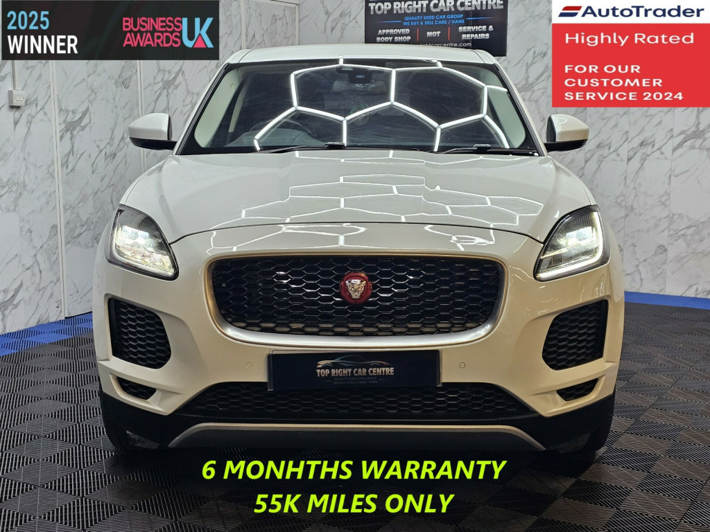 6 MONTHS WARRANTY AND BREAKDOWN COVER WITH THIS CAR.Very Low mileage 55k miles only. 2 former keepers only.SERVICE HISTORY. MOT 19 MAY 2026. We just done the fresh service.This stunning Jaguar E-PACE has been sourced directly from its Previous Private Owner. Every now and again, a car comes into stock at Top Right Car Centre, that you cannot help but fall in love with.Top Spec D150 has massive centre touch screen, driving modes, lane assist, reversing camera, parking sensors, digital dual climate control, all electric windows, privacy glass, cruise control. Clean Car in White colour. Great comfortable family car. Well maintained body work and interior. Bullet fast response. Checked by our engineers. Professionally detailed. Good reliable runner. Price checked. We've just completed a full pre delivery inspection on the car to give you complete piece of mind. Central locking key. Smooth gear box. Clean Alloy wheels. Excellent condition tyres. Multimedia has Bluetooth RADIO mp3. Run with no fault strong reliable engine. Good fuel economy. First to see will buy it this well looked after car. cat S. p/x welcome. We do price our cars/van as competitively as possible and because of this we sell cars/vans very quickly. BE QUICK! MISS IT - MISS OUT. With so much variety, quality and highly rated award winner 2024, it is no wonder we are super busy all the time. Why Buy From Top Right Car Centre?Thoroughly Inspected Cars. All our vehicles are quality-checked and HPi verified, giving you peace of mind with every purchase.Award-Winning Family Business. As a trusted family-run business, we have earned awards for our customer service and expertise.Hand-Picked, Quality Cars. We carefully select only the finest cars with full service histories, so you can drive away with confidence.Test Driven for Assurance. Each car is personally test-driven by our team, ensuring it meets our high standards.Delivery Service. Need it delivered? We have got you covered.Please visit our website www.toprightcarcentre.com in touch pro, 5in display with instrument panel, bluetooth connectivity, dab radio, dynamic volume control, jaguar optimised assistance, power sockets, remote, sos emergency call, sound system - 125w, 17in alloy wheels - 10 spoke style 1005, body coloured roof, chrome side vents, electric windows - front and rear with one-touch open-close and anti-trap, heated door mirrors, heated front windscreen, heated rear window, heated washer jets, locking wheel nuts, manual tailgate, rear fog lights, satin black side window surround, tailgate spoiler, twin tailpipes, tyre repair system, 2-zone climate control, 3-flash lane change indicators, 60-40 split fold rear seat, 8-way manual front seats, centre console cubby box, centre console with armrest, hooks in loadspace, leather steering wheel, light oyster morzine headlining, loadspace cover, loadspace elasticated side-strap, loadspace lighting, loadspace storage net, luggage tie downs in loadspace, metal treadplates with jaguar script, overhead lighting console, passive front head restraints, push button start, rain sensing windscreen wipers, second row air vents, sunvisors with illuminated vanity mirrors, twin front cupholders with cover, abs - anti-locking braking system, airbags - front side, airbags - full length side window curtain, cbc - cornering brake control, customer configurable autolock, dynamic stability control and traction control, eba - emergency brake assist, ebd - electronic brake-force distribution, ebl - emergency brake lights, epb - electric parking brake, emergency braking, front airbags with passenger seat occupant detector, hill launch assist, intrusion sensor - perimetric and volumetric protection, lane keep assist, pedestrian airbag system, power operated child locks, rsc - roll stability control, rear isofix, remote control central locking, seat belt reminder, trailer stability assist, approach illumination, automatic headlights, led headlights, led tail lights, cruise control with speed limiter, driver condition monitor, eco driving style assistant, epas - electric power assisted steering, front and rear parking aid, jaguardrive control, rear view camera, trip computer, tyre pressure monitoring system, voice control