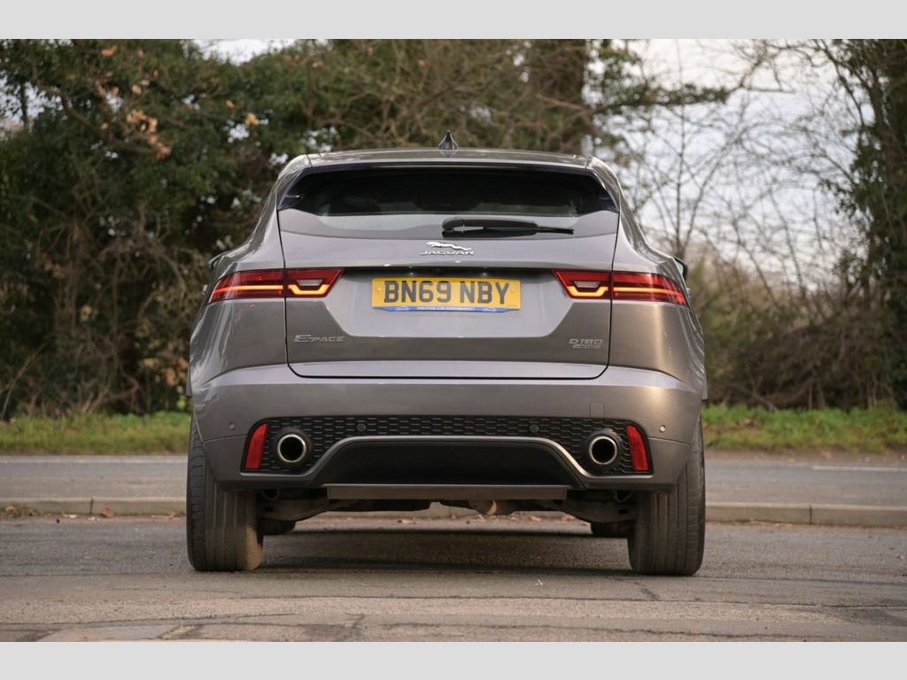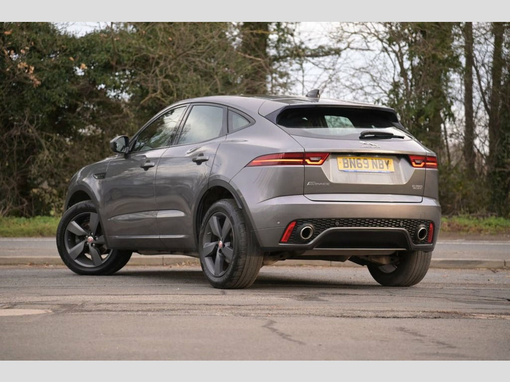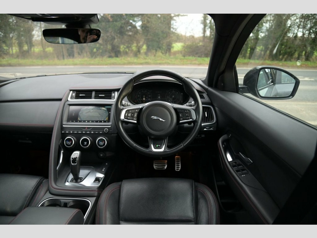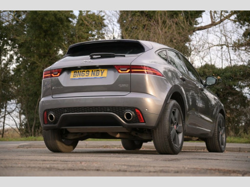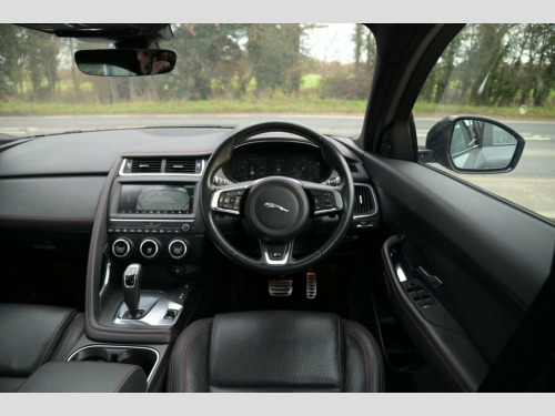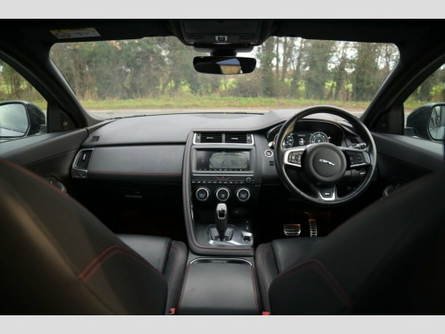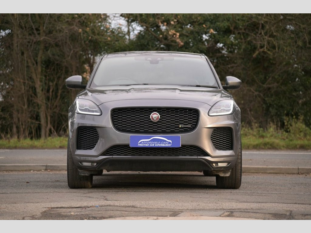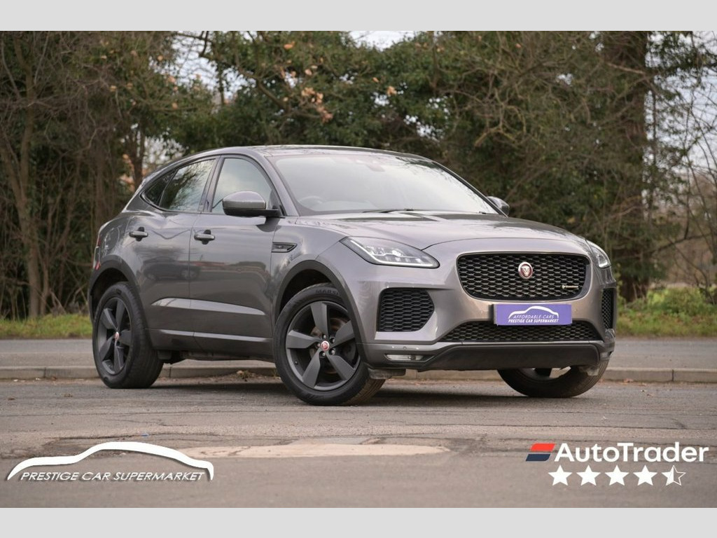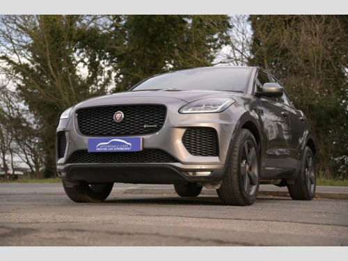 Prestige Car Supermarket in York presents this 2020 Jaguar E-Pace 2.0 D180 Chequered Flag SUV finished in Corris Grey with Ebony grained leather featuring Flame Red stitching and an Ebony-Ebony interior, delivering 180 ps through its automatic AWD system. This Chequered Flag edition offers 19in 5-spoke satin dark grey alloy wheels, a Black Exterior Pack, R-Dynamic body-coloured bumpers, tailgate spoiler, twin tailpipes with finishers, and distinctive Chequered Flag badging with branded metal treadplates. The cabin features 10-way heated electric front seats, a fixed panoramic roof, a 10in Touch Pro display, Navigation Pro, Interactive Driver Display, Apple CarPlay, Android Auto, DAB radio, Bluetooth, Connect Pro Pack, Pro Services with Wi-Fi hotspot, Smart Settings, and a 125W sound system. Convenience and comfort technology include 2-zone climate control, auto-dimming heated power-fold mirrors with approach lights, heated windscreen and washer jets, cruise control with speed limiter, power tailgate, keyless entry, Push Button Start, and bright metal pedals. Safety and driver assistance systems comprise Lane Keep Assist, Emergency Braking, Rear View Camera, Front and Rear Parking Aid, Driver Condition Monitor, Traffic Sign Recognition with Adaptive Speed Limiter, ABS, DSC, EBA, EBD, EPB, airbags including full-length curtains, ISOFIX, and tyre pressure monitoring. Additional features include JaguarDrive Control, All Surface Progress Control, Low Friction Launch, Efficient Dri Grained Leather - Ebony with Flame Red S, Corris Grey, 10-Way Heated Electric Front Seats, 10in Touch Pro, 19in Alloy Wheels - 5 Spoke Satin Dark G, 2-Zone Climate Control, 3-Flash Lane Change Indicators, 60-40 Split Fold Rear Seat, ABS - Anti-locking Braking System, AM-FM Radio, ASPC - All Surface Progress Control, Airbags - Front Side, Airbags - Full Length Side Window Curtai, Android Auto, Apple CarPlay, Approach Illumination, Auto-Dimming - Power Fold - Heated Door , Auto-Dimming Interior Rear View Mirror, Automatic Headlights, Black Exterior Pack, Black Gearshift Paddles, Bluetooth Connectivity, Body Coloured Roof, Body-Coloured Door Claddings, Bright Metal Pedals, Centre Console with A