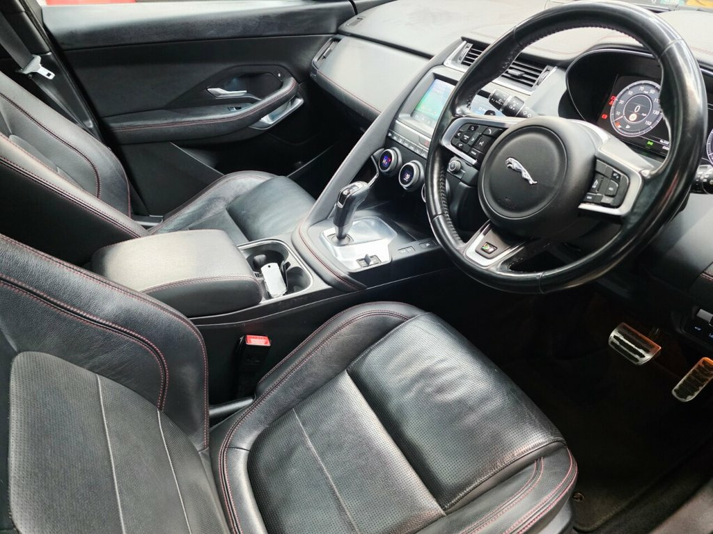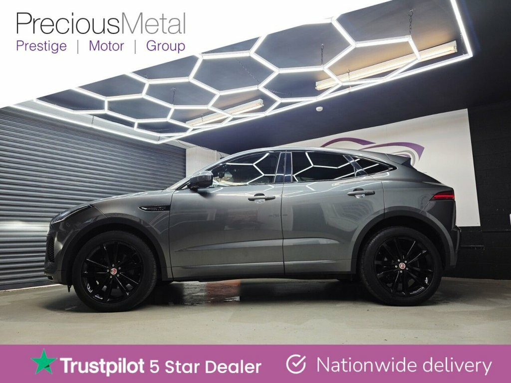 This 2019 Jaguar E-PACE D180 Chequered Flag is a standout example, boasting a single owner from new and a full service history, ensuring excellent provenance. This stylish SUV features a responsive 2.0L diesel engine paired with a capable four wheel drive system, making it a Euro 6 compliant vehicle. With only 50,100 miles on the clock, it represents low mileage for its age, and its MOT is valid until October 2026, offering peace of mind for its next owner. Experience the dynamic performance of this E-PACE, which can accelerate from 0 to 60mph in just 8.6 seconds. This impressive acceleration, combined with its well maintained condition and desirable Chequered Flag trim, positions this Jaguar as a superior choice compared to other vehicles in its class. It offers a compelling blend of Jaguar's renowned design, practical SUV versatility, and engaging driving dynamics. Corris Grey, 20in Alloy Wheels - 5 Split-Spoke Gloss , Privacy Glass, 10-Way Heated Electric Front Seats, 10in Touch Pro, 19in Alloy Wheels - 5 Spoke Satin Dark G, 2-Zone Climate Control, 3-Flash Lane Change Indicators, 60-40 Split Fold Rear Seat, ABS - Anti-locking Braking System, AM-FM Radio, ASPC - All Surface Progress Control, Airbags - Front Side, Airbags - Full Length Side Window Curtai, Android Auto, Apple CarPlay, Approach Illumination, Auto-Dimming - Power Fold - Heated Door , Auto-Dimming Interior Rear View Mirror, Automatic Headlights, Black Exterior Pack, Black Gearshift Paddles, Bluetooth Connectivity, Body Coloured Roof, Body-Coloured Door Claddings, Bright Metal Pedals, Carpet