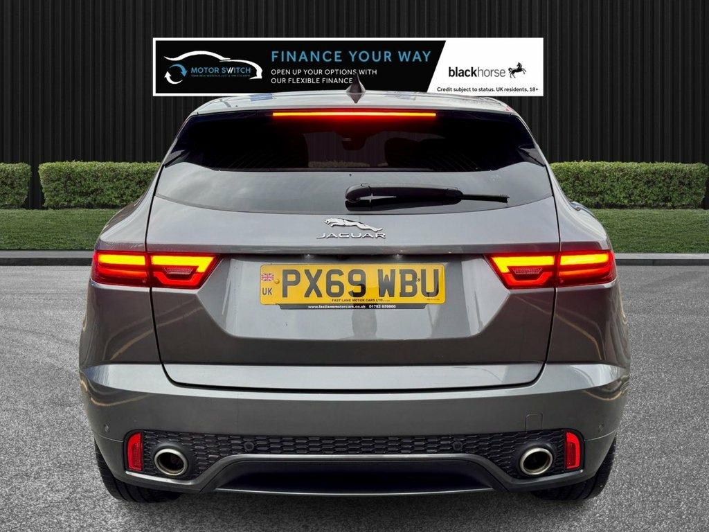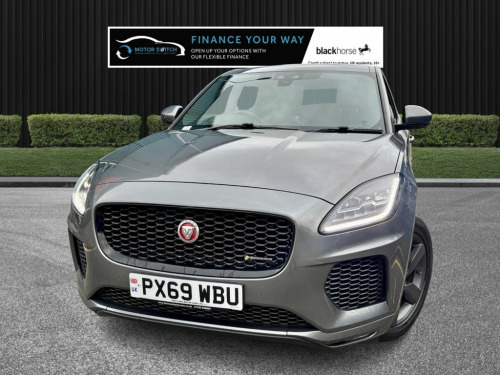 Jaguar E-PACE D180 Chequered Flag SUV 5dr 2.0 Diesel Automatic AWD Euro 6 Turn the key, unleash the switch. Your new motor is just a switch away. Full 12-month nationwide warranty Full 12-month MOT included Service history stamps, last service at 74,428 miles 2 keys, 2 former keepers Finance available from 10.9% APR Delivery available Part-ex welcome Fully valeted using Auto Smart products HPI clear, mileage checked Key features and comfort 10-way heated electric front seats 10" Touch Pro touchscreen 19" alloy wheels (5-spoke satin dark grey) – Style 5049 2-zone climate control 60-40 split folding rear seat Auto-dimming interior rear-view mirror Auto-dimming headlights Auto-dimming/heated door mirrors with approach lights Keyless entry Navigation Pro system Pro Services and Wi-Fi hotspot Android Auto & Apple CarPlay Bluetooth connectivity DAB radio Cruise control with speed limiter Traffic Sign Recognition with Adaptive Speed Limiter Eco driving style assistant Dynamic Stability Control (DSC) and Electronic Brake-Force Distribution (EBD) ABS with misfuelling protection device Tyre Pressure Monitoring System and Tyre Repair System E-PACE badge and R-Dynamic branded leather steering wheel Safety and driver-assist 2-zone climate control Lane change indicators Adaptive features and parking aids with thoughtful touches throughout If you're after a premium, capable SUV that blends performance with luxury tech, the Jaguar 10-Way Heated Electric Front Seats, 10in Touch Pro, 19in Alloy Wheels - 5 Spoke Satin Dark G, 2-Zone Climate Control, 3-Flash Lane Change Indicators, 60-40 Split Fold Rear Seat, ABS - Anti-locking Braking System, AM-FM Radio, ASPC - All Surface Progress Control, Airbags - Front Side, Airbags - Full Length Side Window Curtai, Android Auto, Apple CarPlay, Approach Illumination, Auto-Dimming - Power Fold - Heated Door , Auto-Dimming Interior Rear View Mirror, Automatic Headlights, Black Exterior Pack, Black Gearshift Paddles, Bluetooth Connectivity, Body Coloured Roof, Body-Coloured Door Claddings, Bright Metal Pedals, Carpet Mats, Centre Console with Armrest, Chequered Flag Badge, Connect Pro