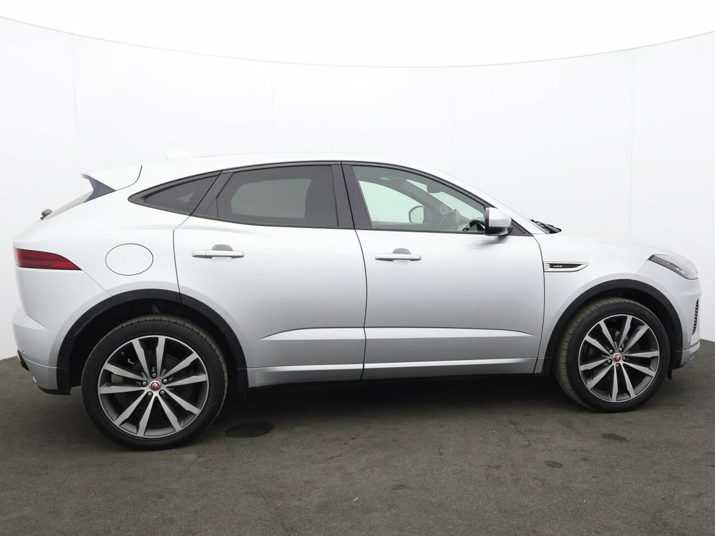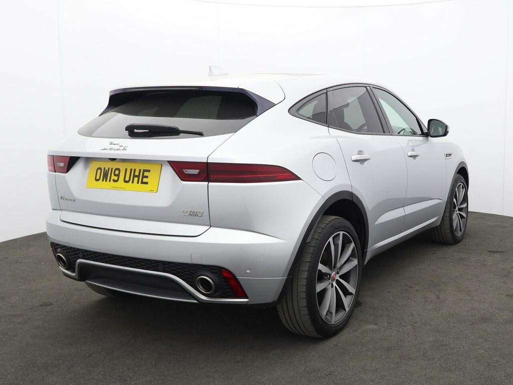 This 2019 Jaguar E-PACE D180 R-Dynamic HSE boasts a clear vehicle history check, offering you peace of mind. This stylish SUV features a powerful 2.0L Diesel engine, delivering an impressive 0-60mph in just 8.6 seconds, all while adhering to Euro 6 emissions standards. Its Four Wheel Drive system ensures confident handling in various conditions. The R-Dynamic HSE trim enhances its sporty appeal, and with it's long MOT, this E-PACE is ready for your adventures. Experience exceptional comfort and convenience with the 18-way heated electric memory front seats, designed to provide personalised support. Navigating tight spaces is made effortless thanks to the 360 degree parking aid and camera system, complemented by Blind Spot Assist for added safety. Keyless entry allows for seamless access, while automatic headlights adapt to changing light conditions. Beyond its advanced features, this Jaguar E-PACE offers generous boot space, making it a practical choice for everyday life and longer journeys, setting it apart from other vehicles in its class. 10in Touch Pro, AM-FM Radio, Android Auto, Apple CarPlay, Bluetooth Connectivity, Connect Pro Pack, DAB Radio, Dynamic Volume Control, Meridian Sound System - 380W, Navigation Pro System, Power Sockets, Pro Services and Wi-Fi Hotspot, Remote, Smartphone Pack, 20in Alloy Wheels - 5 Split-Spoke Satin , Auto-Dimming - Power Fold - Heated Door , Body Coloured Roof, Body-Coloured Door Claddings, D180 AWD Badge, E-PACE Badge, Electric Windows - Front and Rear with O, Gloss Black Grille with Satin Chrome Sur, Heated Front Windscreen, Heated Rear Window, Heated Washer Jets, HSE Badge, Jaguar Script and Leaper, R-Dynamic Badge, R-Dynamic Body-Coloured Bumpers, Rear Fog Lights, Satin Black Side Window