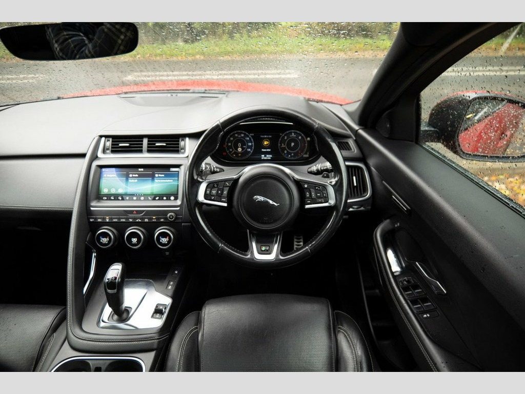 Prestige Car Supermarket in York presents this highly specified and desirable 2020 Jaguar E-PACE 2.0 D180 R-Dynamic HSE SUV. Finished in optional Firenze Red metallic paintwork and featuring the Black Exterior Pack, this diesel automatic SUV delivers 180 horsepower via its intelligent All-Wheel Drive system and is Euro 6 compliant. The luxurious HSE specification is enhanced by the optional Fixed Panoramic Roof and Privacy Glass, complemented by 20in Gloss Black 5 Split-Spoke Alloy Wheels, R-Dynamic Bodystyling, and Satin Black Side Window Surrounds. The cabin is premium and comfortable, featuring 18-Way Heated Electric Memory Front Seats, Ebony Morzine Headlining, and the R-Dynamic Branded Leather Steering Wheel with Black Gearshift Paddles. Technology is state-of-the-art with the Navigation Pro System, 10in Touch Pro, Meridian Sound System, Interactive Driver Display, and the Drive Pro Pack which includes Adaptive Cruise Control with Queue Assist and Blind Spot Assist. Further assistance is provided by the Park Pro Pack, which includes 360 Degree Parking Aid, Park Assist, and Rear Traffic Monitor, ensuring a comprehensive and dynamic driving experience. Black Exterior Pack, Fixed Panoramic Roof, Privacy Glass, Firenze Red, 10in Touch Pro, 18-Way Heated Electric Memory Front Seat, 2-Zone Climate Control, 20in Alloy Wheels - 5 Split-Spoke Gloss , 3-Flash Lane Change Indicators, 360 Degree Parking Aid, 60-40 Split Fold Rear Seat, ABS - Anti-locking Braking System, AM-FM Radio, ASPC - All Surface Progress Control, Adaptive Cruise Control with Queue Assis, Airbags - Front Side, Airbags - Full Length Side Window Curtai, Android Auto, Apple CarPlay, Approach Illumination, Auto High Beam Assist, Auto-Dimming - Power Fold - Heated Door , Auto-Dimming Interior Rear View Mirror, Automatic Headlights, Black Gearshift Paddles, Blind Spot Assist, Bluetoo