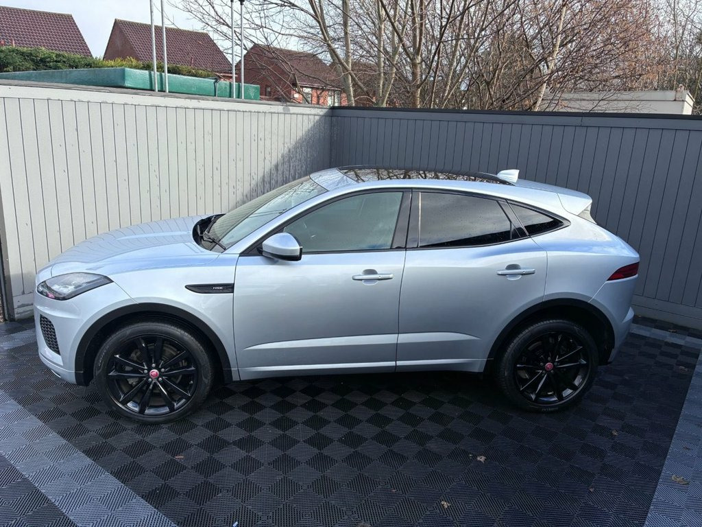 WOW, A SUPERB SPEC, AMAZING VALUE AND STUNNING LOOKING JAGUAR E-PACE AUTO IN A STUNNING SILVER. IF YOU ARE LOOKING FOR SOMETHING A LITTLE SPECIAL AND SOMETHING THAT HAS THE WOW FACTOR THEN STOP YOUR SEARCH. THIS CAR COMES WITH A FRESH 12 MONTH MOT AND SERVICE AT POINT OF SALE READY FOR ITS LUCKY NEW OWNER ALONG WITH HAVING 2 KEYS. I CAN SAY WITH CONFIDENCE THAT YOU WILL STRUGGLE TO FIND A CAR LIKE THIS ANYWHERE ON THE INTERNET AT SUCH GREAT VALUE AND IN THIS CONDITION. A TEST DRIVE AND VIEWING IS HIGHLY RECOMMENDED TO APPRECIATE THE CONDITION AND DRIVE SO PLEASE POP OVER AND COME AND MEET THE TEAM WHO WILL BE MORE TAHN HAPPY TO HELP WITH EVERY STEP OF YOUR NEW CAR PURCHASE. PLEASE POP OVER AND HAVE A LOOK AT OUR AUTO TRADER REVIEW PAGE AND SEE WHAT OVGER 1150+ CUSTOMERS HAVE HAD TO SAY ABOUT THEIR BUYING EXPERIENCE AND AFTER SALES PACKAGES WE OFFER AS CUSTOMER SATISFACTION IS OUR NUMBER ONE PRIORITY ALWAYS. WE ARE A GROWING FAMILY BUSINESS AND CUSTOMER CARE AND SATISFACTION IS PARAMOUNT TO OUR SUCCESS FREE DELIVERY CAN BE ARRANGED. LIVE OR RECORDED WALK AROUND VIDEO VIEWING CAN BE ARRANGED AND SENT DIRECTLY OVER TO YOU. 10in Touch Pro, 18-Way Heated Electric Memory Front Seat, 2-Zone Climate Control, 20in Alloy Wheels - 5 Split-Spoke Satin , 3-Flash Lane Change Indicators, 360 Degree Parking Aid, 60-40 Split Fold Rear Seat, ABS - Anti-locking Braking System, AM-FM Radio, ASPC - All Surface Progress Control, Adaptive Cruise Control with Queue Assis, Airbags - Front Side, Airbags - Full Length Side Window Curtai, Android Auto, Apple CarPlay, Approach Illumination, Auto High Beam Assist, Auto-Dimming - Power Fold - Heated Door , Auto-Dimming Interior Rear View Mirror, Automatic Headlights, Black Gearshift Paddles, Blind Spot Assist, Bluetooth Connectivity, Body Coloured Roof, Body-Coloured Door Claddings, Brig