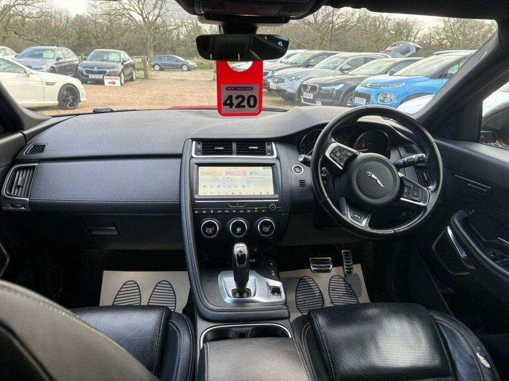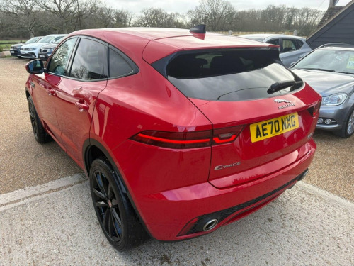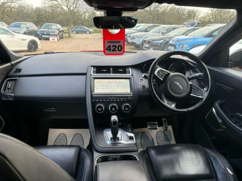 This 2020 Jaguar E-PACE D180 R-Dynamic SE offers a superb blend of style and practicality. Powered by a 2.0 litre Euro 6 diesel engine and featuring a capable four wheel drive system, this R-Dynamic SE model is designed for everyday journeys. Inside, you'll find luxurious 14 way heated electric memory front seats, ensuring comfort for every drive. The advanced Park Pro Pack, coupled with a 360 degree parking aid and rear view camera, makes manoeuvring effortless. Automatic headlights further enhance convenience. The E-PACE boasts a generous boot space, providing ample room for luggage or shopping. Its performance is equally impressive, with an acceleration of 0-60mph achieved in just 8.6 seconds. These features, combined with its refined engineering, position this Jaguar E-PACE as a compelling choice for those seeking a premium compact SUV that excels in both comfort and dynamic capability. 10in Touch Pro, 14-Way Heated Electric Memory Front Seat, 19in Alloy Wheels - 5 Spoke Gloss Sparkl, 2-Zone Climate Control, 3-Flash Lane Change Indicators, 360 Degree Parking Aid, 60-40 Split Fold Rear Seat, ABS - Anti-locking Braking System, AM-FM Radio, ASPC - All Surface Progress Control, Airbags - Front Side, Airbags - Full Length Side Window Curtai, Analogue Dials with Central TFT Display, Android Auto, Apple CarPlay, Approach Illumination, Auto High Beam Assist, Auto-Dimming - Power Fold - Heated Door , Auto-Dimming Interior Rear View Mirror, Automatic Headlights, Black Gearshift Paddles, Bluetooth Connectivity, Body Coloured Roof, Body-Coloured Door Claddings, Bright Metal Pedals, Car