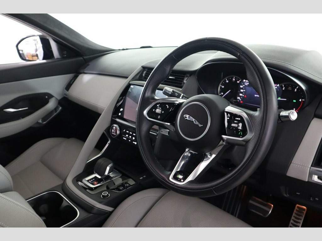 This 2022 Jaguar E-PACE D204 R-Dynamic Black is a superb example, having had only one owner since new. This stylish compact SUV boasts a powerful 2.0L diesel engine, delivering an impressive 0-60mph in just 7.9 seconds, all managed through a smooth automatic transmission and a capable four wheel drive system. As a Euro 6 compliant vehicle, it meets modern emissions standards. The R-Dynamic Black trim enhances the E-PACE's already striking appearance, and this particular model comes equipped with a host of desirable features. Enjoy effortless driving with automatic LED headlights that include signature daytime running lights, animated rear indicators, and auto high beam assist. For convenience and connectivity, it offers Android Auto integration and a fixed panoramic roof that floods the cabin with natural light. Parking is made simpler with the integrated rear camera. These features collectively demonstrate the superior specification of this Jaguar E-PACE compared to other vehicles in its class. 11.4in Touchscreen, 19in Alloy Wheels - 5 Spoke Satin Dark G, 2-Zone Climate Control, 3-Flash Lane Change Indicators, 40-20-40 Split Fold Rear Seat, ABS - Anti-locking Braking System, ASPC - All Surface Progress Control, Airbags - Front Side, Airbags - Full Length Side Window Curtai, Analogue Dials with Central TFT Display, Android Auto, Apple CarPlay, Approach Illumination, Auto-Dimming Interior Rear View Mirror, Automatic Headlights, Black Exterior Pack, Body Coloured Roof, Bright Metal Pedals, Cabin Lighting, Carpet Mats, Centre Console with Armrest, Centre High-Mounted Stop Light, Configurable Dynamics, Customer Configurable Autolock, DAB Radio, Diesel Misfuelling Protection Device, Driv