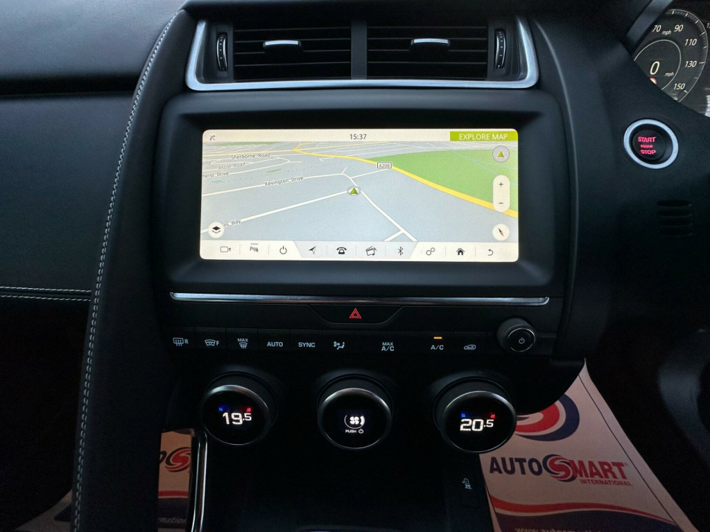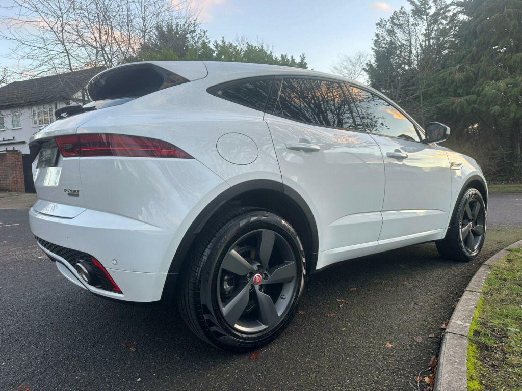 REG NUMBER>(KV68DXC)This 2019 Jaguar E-PACE P200 R Dynamic S boasts a clear vehicle history, offering you peace of mind. This stylish SUV features a 2.0 litre petrol engine paired with Four Wheel Drive for confident handling in various conditions. Its Euro 6 emission class ensures it meets current environmental standards. Notable features include automatic headlights, a rear view camera, and front and rear parking sensors to assist you with manoeuvring. Experience the dynamic performance of this E-PACE, capable of accelerating from 0 to 60 miles per hour in just 7.7 seconds, demonstrating its responsive nature. The R Dynamic S trim enhances its sporty appeal, while the P200 AWD badge signifies its capable powertrain. You'll also appreciate the generous boot space, making it a practical choice for everyday life and longer journeys. The inclusion of 350mm front brakes further highlights its performance credentials, offering assured stopping power. This car has 3 service which 2 are jaguar last one done on the 17/2/25 and the mileage was 44211.This vehicle complies with ULEZ regulations in London zones. please Contact us today to book a test drive and find out more about our finance options and warranty options, including lifetime warranty. We offer excellent part-exchange prices, so please contact us before you sell your old car. We also provide nationwide delivery for your convenience. We can arrange video calls with our customers before they visit us in person. We have no hidden fees or charges, and you can check our reviews on our website. Please book an appointment in advance to view our cars, by phone or email, as we operate on an appointment only basis. We look forward to hearing from you.. 10-Way Electric Front Seats, 10in Touch Pro, 2-Zone Climate Control, 3-Flash Lane Change Indicators, 350mm Front Brakes, 60-40 Split Fold Rear Seat, ABS - Anti-locking Braking System, AM-FM Radio, ASPC - All Surface Progress Control, Airbags - Front Side, Airbags - Full Length Side Window Curtain, Analogue Dials with Central TFT Display, Approach Illumination, Auto-Dimming - Power Fold - Heated Door Mirrors with Approach Lights, Auto-Dimming Interior Rear View Mirror, Automatic Headlights, Black Gearshift Paddles, Bluetooth Connectivity, Body Coloured Roof, Body-Coloured Door Claddings, Bright Metal Pedals, Centre Console Cubby Box, Centre Console with Armrest, Connect Pro Pack, Cruise Control with Speed Limiter, Customer Configurable Autolock, DAB Radio, Driver Condition Monitor, Dynamic Stability Control - DSC, Dynamic Volume Control, E-PACE Badge, EBA - Emergency Brake Assist, EBD - Electronic Brake-Force Distribution, ECO Driving Style Assistant, EPAS - Electric Power Assisted Steering, EPB - Electric Parking Brake, Ebony Morzine Headlining, Efficient Driveline, Electric Windows - Front and Rear with One-Touch Open-Close and Anti-Trap, Emergency Braking, Front Airbags with Passenger Seat Occupant Detector, Front Fog Lights, Front and Rear Parking Aid, Gloss Black Grille with Satin Chrome Surround, Heated Front Windscreen, Heated Rear Window, Heated Washer Jets, Hill Launch Assist, Hooks in Loadspace, InControl Apps, Interior Lighting, Intrusion Sensor, Jaguar Script and Leaper, JaguarDrive Control, LED Headlights with Signature Daytime Running Lights, Lane Keep Assist, Loadspace Cover, Loadspace Elasticated Side-Strap, Loadspace Lighting, Loadspace Storage Net, Locking Wheel Nuts, Luggage Tie Downs in Loadspace, Manual Tailgate - Boot Lid, Metal Treadplates with R-Dynamic Branding, Navigation Pro System, Outside Temperature Gauge, Overhead Lighting Console, P200 AWD Badge, Passive Front Head Restraints, Passive Suspension, Power Operated Child Locks, Power Sockets, Push Button Start, R-Dynamic Badge, R-Dynamic Body Kit, R-Dynamic Body-Coloured Bumpers, R-Dynamic Branded Leather Steering Wheel, Rain Sensing Windscreen Wipers, Rear Air Vents, Rear Bench Seat - 3 Seats, Rear Centre Headrest, Rear Fog Lights, Rear ISOFIX, Rear View Camera, Remote, S Badge, Satin Black Side Window Surround, Satin Chrome Side Vents, Seat Belt Reminder, Sound System - 125W, Speed Proportional Steering, Start Up Sequence with Movement - Dials and Lighting, Summer Tyres, Sunvisors with Illuminated Vanity Mirrors, Tailgate Spoiler, Torque Vectoring by Braking - TVBB, Traffic Sign Recognition with Adaptive Speed Limiter, Trip Computer, Twin Front Cupholders with Cover, Twin Tailpipes with Finishers, Tyre Pressure Monitoring System, Tyre Repair System, Voice Control, Navigation System, Bluetooth Preparation, DAB Digital Radio, 19in Alloy Wheels - 5 Spoke Satin Dark Grey Finish - Style 5049, Privacy Glass, Parking Camera(s), Cruise Control, Parking Sensor(s), Climate Control, Heated Seat(s), Synthetic Leather, Meridian Sound System - 380W, Carpet Mats. Full service history