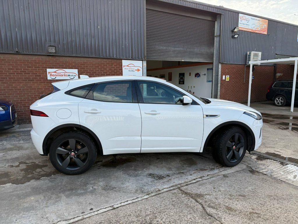 This 2018 Jaguar E-PACE 2.0 P200 R-Dynamic S AWD has covered just 42,000 miles and is finished in elegant white. It's powered by a 2.0-litre petrol engine producing 200 PS, paired with a smooth automatic gearbox and Jaguar's all-wheel-drive system. The car has had just two previous keepers and comes with proof of 5 main dealer services, showing it has been well looked after throughout its life. It is MOT'd until 30th May 2026, and the current advisories will be addressed prior to sale. Stylish, sporty, and packed with premium features, this R-Dynamic S model delivers the perfect balance between luxury and practicality. The elevated driving position, responsive handling, and refined interior create a driving experience that feels every bit as good as it looks. With its dynamic design, advanced tech, and strong petrol performance, the E-PACE is ideal for drivers who want something a little more exciting in the SUV segment. With full Jaguar service history, low mileage, and all the right spec, this example stands out as a smart and desirable choice in the premium compact SUV market. You'll also get 6-Months Gold Warranty. 10-Way Electric Front Seats, 10in Touch Pro, 18in Alloy Wheels - 5 Spoke Style 5048, 2-Zone Climate Control, 3-Flash Lane Change Indicators, 350mm Front Brakes, 60-40 Split Fold Rear Seat, ABS - Anti-locking Braking System, Airbags - Front Side, Airbags - Full Length Side Window Curtai, AM-FM Radio, Analogue Dials with Central TFT Display, Approach Illumination, ASPC - All Surface Progress Control, Auto-Dimming - Power Fold - Heated Door , Auto-Dimming Interior Rear View Mirror, Automatic Headlights, Black Gearshift Paddles, Bluetooth Connectivity, Body Coloured Roof, Body-Coloured Door Claddings, Bright Metal Pedals, Centre Console Cubby Box, Centre Console with Armrest, Connect Pro Pack, C