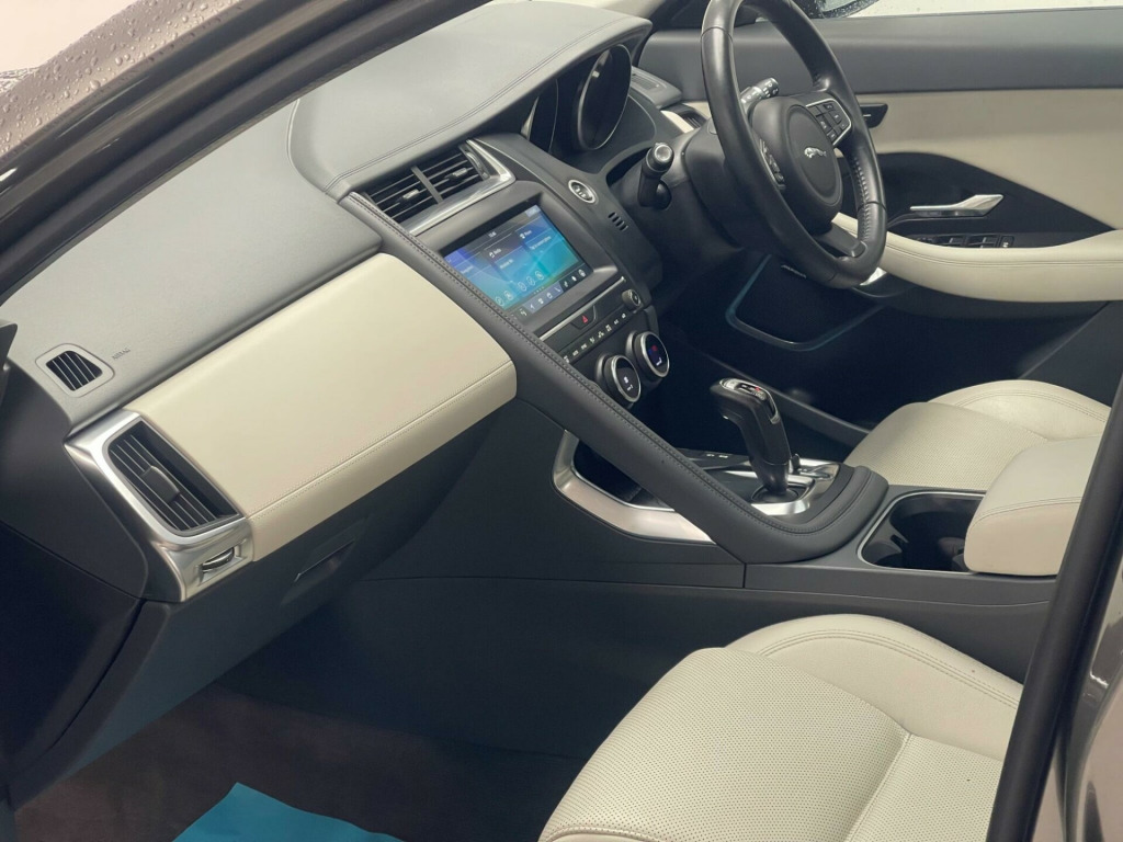 This 2020 Jaguar E-PACE P250 SE boasts exceptionally low mileage for its age, having covered just 28,267 miles. This stylish compact SUV features a responsive 2.0 litre petrol engine paired with a smooth Four Wheel Drive system, ensuring confident handling in all conditions. As a Euro 6 compliant vehicle, it meets modern emissions standards. The SE trim level comes equipped with a suite of desirable features, including striking LED headlights with signature daytime running lights, a premium Meridian Sound System offering 380W of audio clarity, and the convenient Park Pack which includes front and rear parking sensors to aid manoeuvrability. Inside, you can enjoy a comfortable cabin thanks to the 2-Zone Climate Control.The E-PACE P250 SE offers a compelling blend of performance and practicality. Its acceleration is noteworthy, reaching 0-60mph in a swift 6.7 seconds, demonstrating its dynamic capabilities. This performance, combined with its impressive acceleration, sets it apart from many other vehicles in its class. Furthermore, the generous boot space provides ample room for luggage, shopping, or sports equipment, making it a versatile choice for everyday life and weekend adventures. The P250 AWD badge signifies its capable drivetrain, enhancing its appeal for those seeking a refined and capable compact SUV. in touch pro, 14-way electric memory front seats, 19in alloy wheels - 10 spoke style 1039, 2-zone climate control, 3-flash lane change indicators, 350mm front brakes, 60-40 split fold rear seat, abs - anti-locking braking system, am-fm radio, aspc - all surface progress control, airbags - front side, airbags - full length side window curtain, analogue dials with central tft display, approach illumination, auto high beam assist, auto-dimming - power fold - heated door mirrors with memory and approach lights, auto-dimming interior rear view mirror, automatic headlights, bluetooth connectivity, body coloured roof, body-coloured bumpers, centre console cubby box, centre console with armrest, chrome side vents, connect pro pack, customer configurable autolock, dab radio, driver condition monitor, dynamic stability control - dsc, dynamic volume control, e-pace badge, eba - emergency brake assist, ebd - electronic brake-force distribution, eco driving style assistant, epas - electric power assisted steering, epb - electric parking brake, efficient driveline, electric windows - front and rear with one-touch open-close and anti-trap, emergency braking, front airbags with passenger seat occupant detector, grained black door claddings, grained black grille with chrome surround, heated front windscreen, heated rear window, heated washer jets, hill launch assist, hooks in loadspace, incontrol apps, interior lighting, intrusion sensor, jaguar script and leaper, jaguardrive control, led headlights with signature daytime running lights, lane keep assist, leather steering wheel, light oyster morzine headlining, loadspace cover, loadspace elasticated side-strap, loadspace lighting, loadspace storage net, locking wheel nuts, luggage tie downs in loadspace, meridian sound system - 380w, metal treadplates with jaguar script, navigation pro system, outside temperature gauge, overhead lighting console, p250 awd badge, park pack, passive front head restraints, passive suspension, power operated child locks, power sockets, power tailgate-boot lid, push button start, rain sensing windscreen wipers, rear air vents, rear bench seat - 3 seats, rear centre headrest, rear fog lights, rear isofix, rear view camera, remote, se badge, satin black side window surround, seat belt reminder, speed proportional steering, start up sequence with movement - dials and lighting, summer tyres, sunvisors with illuminated vanity mirrors, tailgate spoiler, torque vectoring by braking - tvbb, traffic sign recognition with adaptive speed limiter, trip computer, twin front cupholders with cover, twin tailpipes with finishers, tyre pressure monitoring system, tyre repair system, voice control
