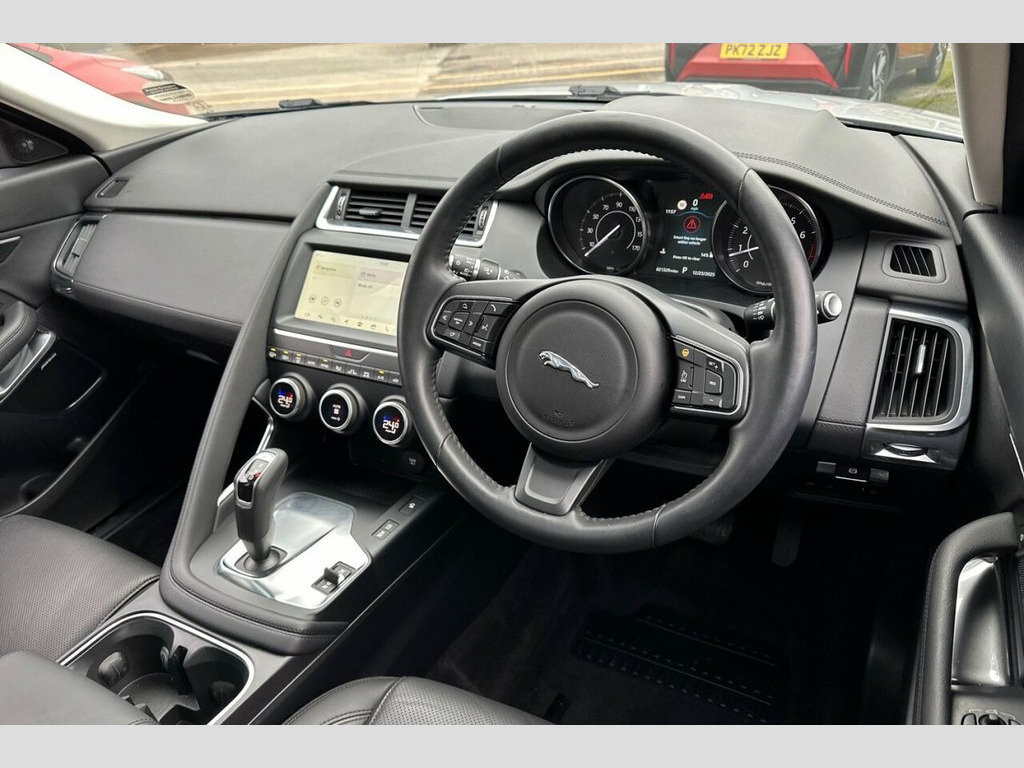 Don't miss this 2019 Jaguar E-PACE P250 SE all-wheel drive SUV. It offers an exceptional ownership proposition with its remarkably low mileage of just 21,200 miles and a single owner from new. This Euro 6 compliant, four wheel drive model is powered by a responsive 2.0 litre petrol engine, delivering an impressive 0-60mph time of 6.7 seconds. Inside, you'll find a wealth of premium features designed for comfort and enjoyment, including 18 way heated electric memory front seats, a heated steering wheel, and a fixed panoramic roof that floods the cabin with light. The Meridian Surround Sound System with 825W output ensures an immersive audio experience, while privacy glass adds a touch of exclusivity. The generous boot space in this E-PACE makes it a practical choice for everyday life and weekend adventures alike. These carefully selected features, combined with its outstanding provenance, demonstrate how this Jaguar E-PACE P250 SE stands out from other vehicles in its class, offering a superior blend of performance, luxury, and thoughtful design for the discerning driver. Indus Silver, Meridian Surround Sound System - 825W, Heated Steering Wheel, 18-Way Heated Electric Memory Front Seat, Privacy Glass, Fixed Panoramic Roof, 10in Touch Pro, 14-Way Heated Electric Memory Front Seat, 19in Alloy Wheels - 10 Spoke Gloss Spark, 2-Zone Climate Control, 3-Flash Lane Change Indicators, 350mm Front Brakes, 360 Degree Parking Aid, 60-40 Split Fold Rear Seat, ABS - Anti-locking Braking System, AM-FM Radio, ASPC - All Surface Progress Control, Airbags - Front Side, Airbags - Full Length Side Window Curtai, Analogue Dials with Central TFT Display, Android Auto, Apple CarPlay, Approach Illumination, Auto High Beam Assist, Auto-Dimming - Power Fold - Heated Door , Auto-Dimmi