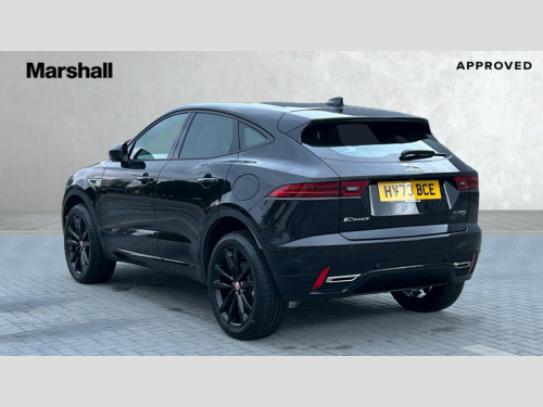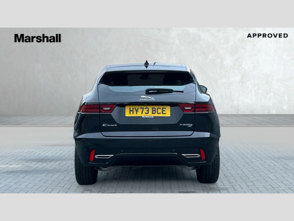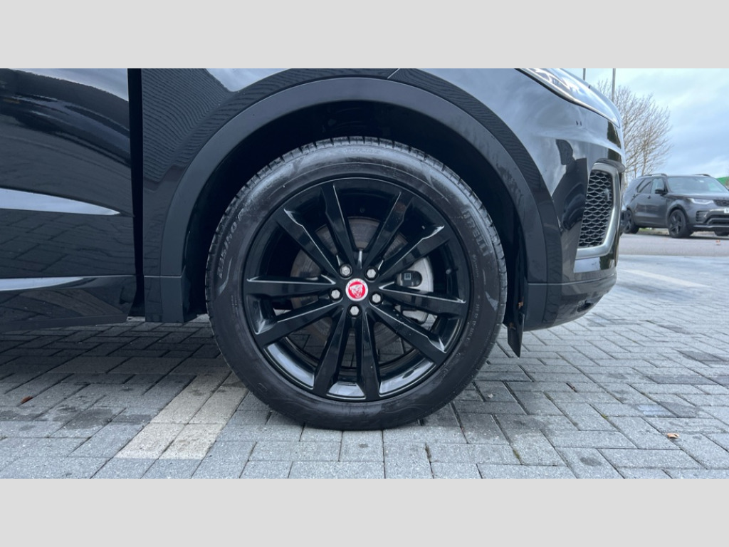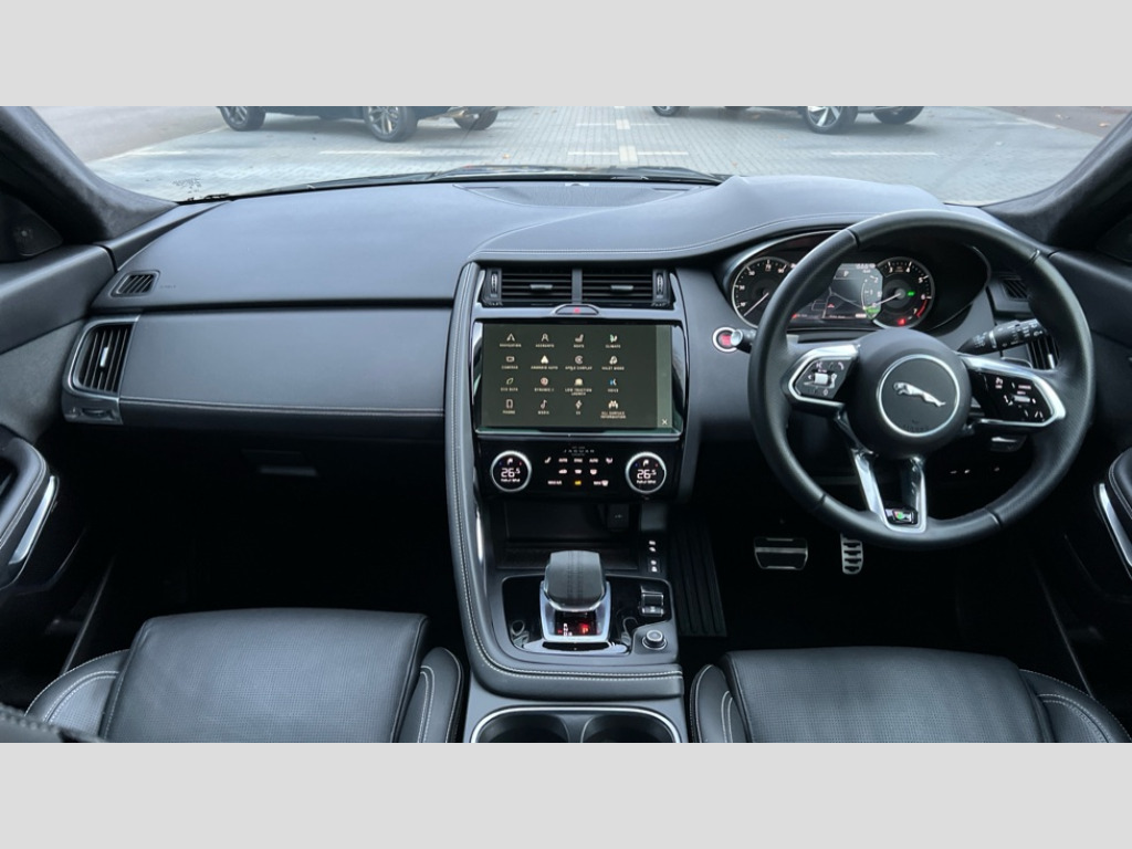 Jaguar E-Pace 1.5 P300e R-Dynamic HSE 5dr Auto 11.4" touchscreen with central ICP, 12.3" full digital instrument panel, Adaptive cruise control, Android Auto, Apple car play, Blind spot assist, Driver condition monitor, Eco driving style assistant, Electric power assisted steering, Emergency services call system, Front and rear parking aid, InControl remote, Jaguar drive control with adaptive surface response, Jaguar Toggle sport shift selector, Lane keep assist, Outside temperature gauge, Pivi pro connected infotainment system with smart settings and navigation pro, Push button start, Rear collision monitor, Rear traffic monitor, Speed proportional steering, Traffic sign recognition with adaptive speed limiter, Trip computer, Voice control system, 7 kW onboard charger, Configurable dynamics, Electric rear axle drive, Home charging cable Mode 2, Large fuel tank, Passive suspension, Public charging cable Mode 3, AM/FM DVD MP3 radio, Bluetooth connectivity including audio streaming, DAB digital audio broadcast, Dynamic volume control, 3 flash lane change indicators, Approach Illumination, Auto high beam assist, Automatic headlights, Body colour door handles, Body colour door mirrors, Body colour front and rear lower bumper main moulding and lower side cladding, Body colour upper spoiler, Body coloured side sills, Centre high-mounted stop light, Dark satin grille tips, Electric front/rear windows with one touch/auto up/down, Electric heated/power fold memory door mirrors with approach lights and auto dimming driver side, Embossed leaper for grained and windsor leather, Heated washer jets, Heated windscreen, Jaguar script and leaper, LED tail lights, LED third brake light, Narvik black antenna pod and side pillar finisher, R Dynamic badge, R Dynamic body colour bumpers, Rain sensor windscreen wipers, Rear fog lights, Rear side wing doors, Rear wash wiper, Satin black grained front outer grille, low grill mesh and low bumper valence, side fender vent mesh and finisher, rear tow eye cover and grille mesh, Twin exhaust tailpipe, Variable front intermittent wipers, 3 rear head restraints, 3 seat bench in 2nd row, 40:20:40 rear seat fold, Bright metal pedals, Carpet mats, Centre console with armrest, Enhanced ambient lighting, Hooks loadspace, ISOFIX on outer rear seats, Loadspace cover, Loadspace light, Loadspace storage net, Luggage tie-downs in loadspace, Manual height/reach adjust steering wheel, Multifunction steering wheel, Overhead lighting console, Passive front head restraints, Power sockets, R-Dynamic branded leather steering wheel, Rear air vents, Rear bench seats, Satin chrome gearshift paddles, Single front passenger seat, Sunvisors with illuminated vanity mirrors, Twin front cupholders, Two zone climate control, Windsor leather upholstery + sport seats, 3x3 point rear seatbelts, ABS, All surface progress control (ASPC), Child locks on rear doors, Customer configurable autolock, DSC - Dynamic Stability Control, Electronic brake force distribution, Electronic parking brake, Emergency brake assist, Emergency braking, Front airbags with passenger seat occupant detector, Front and rear curtain airbags, Front and rear seatbelt reminder, Front passenger airbag deactivation, Front seatbelt pretensioners, Front side airbags, Height adjustable front seatbelts, Hill start assist, Low friction launch, Power child locks, Torque vectoring brake, Tyre pressure monitoring system, Intrusion sensor and alarm, Keyless entry, Locking wheel nuts, Remote central locking