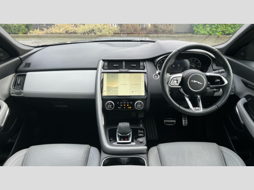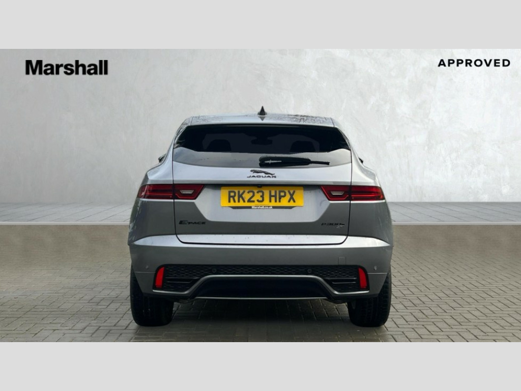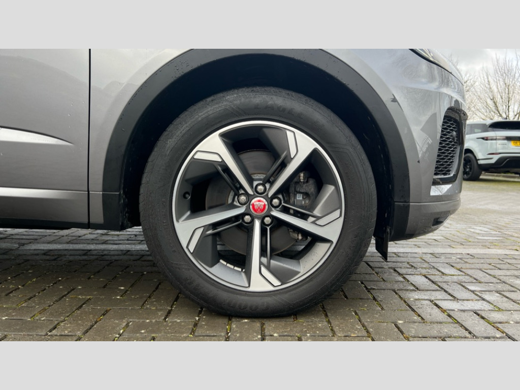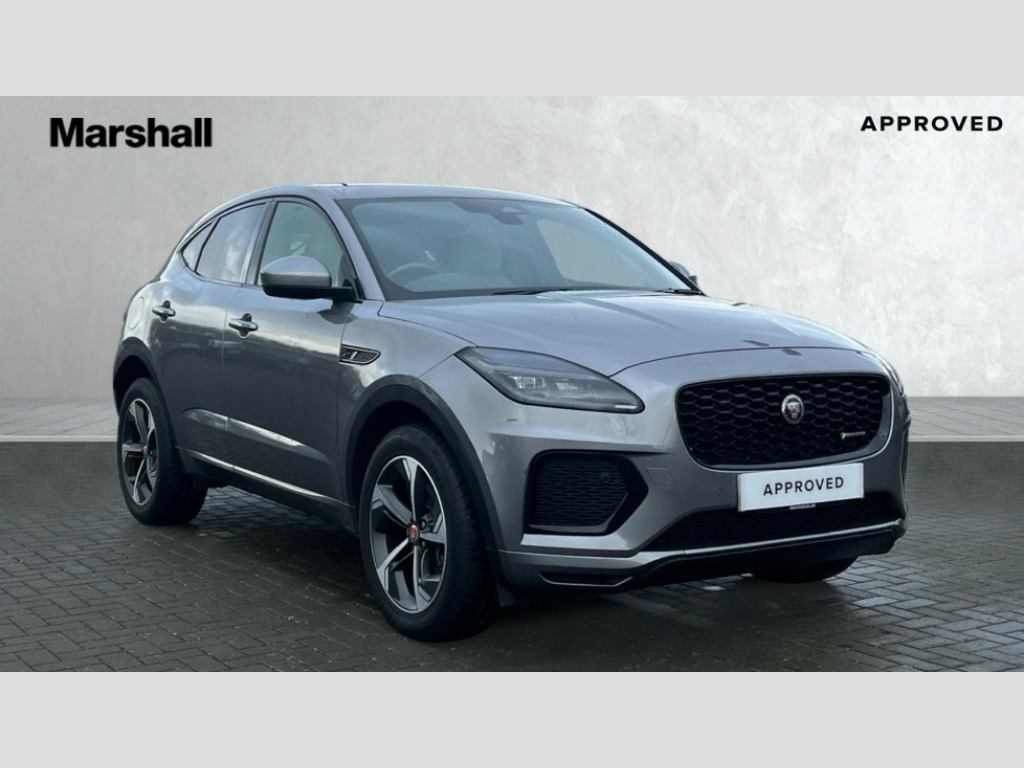 Jaguar E-Pace 1.5 P300e R-Dynamic SE 5dr Auto 11.4" touchscreen with central ICP, 12.3" full digital instrument panel, Adaptive cruise control, Android Auto, Apple car play, Blind spot assist, Driver condition monitor, Eco driving style assistant, Electric power assisted steering, Emergency services call system, Front and rear parking aid, InControl remote, Jaguar drive control with adaptive surface response, Jaguar Toggle sport shift selector, Lane keep assist, Outside temperature gauge, Pivi pro connected infotainment system with smart settings and navigation pro, Push button start, Rear collision monitor, Rear traffic monitor, Speed proportional steering, Traffic sign recognition with adaptive speed limiter, Trip computer, Voice control system, 7 kW onboard charger, Configurable dynamics, Electric rear axle drive, Home charging cable Mode 2, Large fuel tank, Passive suspension, Public charging cable Mode 3, AM/FM DVD MP3 radio, Bluetooth connectivity including audio streaming, DAB digital audio broadcast, Dynamic volume control, 3 flash lane change indicators, Approach Illumination, Auto high beam assist, Automatic headlights, Body colour door handles, Body colour door mirrors, Body colour front and rear lower bumper main moulding and lower side cladding, Body colour upper spoiler, Body coloured side sills, Centre high-mounted stop light, Dark satin grille tips, Electric front/rear windows with one touch/auto up/down, Electric heated/power fold memory door mirrors with approach lights and auto dimming driver side, Embossed leaper for grained and windsor leather, Heated washer jets, Heated windscreen, Jaguar script and leaper, LED tail lights, LED third brake light, Narvik black antenna pod and side pillar finisher, R Dynamic badge, R Dynamic body colour bumpers, Rain sensor windscreen wipers, Rear fog lights, Rear side wing doors, Rear wash wiper, Satin black grained front outer grille, low grill mesh and low bumper valence, side fender vent mesh and finisher, rear tow eye cover and grille mesh, Twin exhaust tailpipe, Variable front intermittent wipers, 3 rear head restraints, 3 seat bench in 2nd row, 40:20:40 rear seat fold, Bright metal pedals, Carpet mats, Centre console with armrest, Enhanced ambient lighting, Hooks loadspace, ISOFIX on outer rear seats, Loadspace cover, Loadspace light, Loadspace storage net, Luggage tie-downs in loadspace, Manual height/reach adjust steering wheel, Multifunction steering wheel, Overhead lighting console, Passive front head restraints, Power sockets, R-Dynamic branded leather steering wheel, Rear air vents, Rear bench seats, Satin chrome gearshift paddles, Single front passenger seat, Sunvisors with illuminated vanity mirrors, Twin front cupholders, Two zone climate control, 3x3 point rear seatbelts, ABS, All surface progress control (ASPC), Child locks on rear doors, Customer configurable autolock, DSC - Dynamic Stability Control, Electronic brake force distribution, Electronic parking brake, Emergency brake assist, Emergency braking, Front airbags with passenger seat occupant detector, Front and rear curtain airbags, Front and rear seatbelt reminder, Front passenger airbag deactivation, Front seatbelt pretensioners, Front side airbags, Height adjustable front seatbelts, Hill start assist, Low friction launch, Power child locks, Torque vectoring brake, Tyre pressure monitoring system, Intrusion sensor and alarm, Locking wheel nuts, Remote central locking