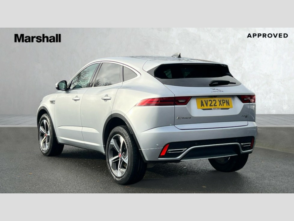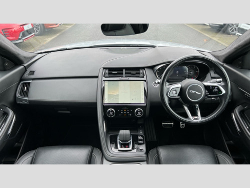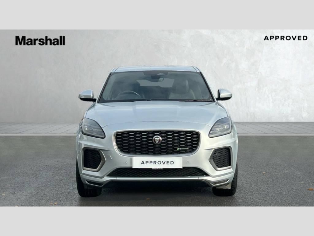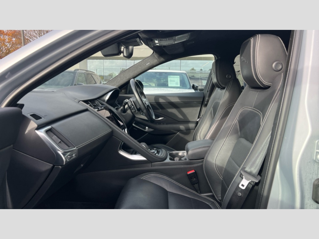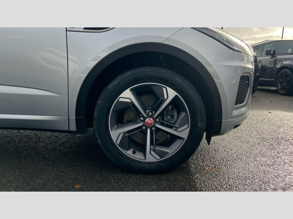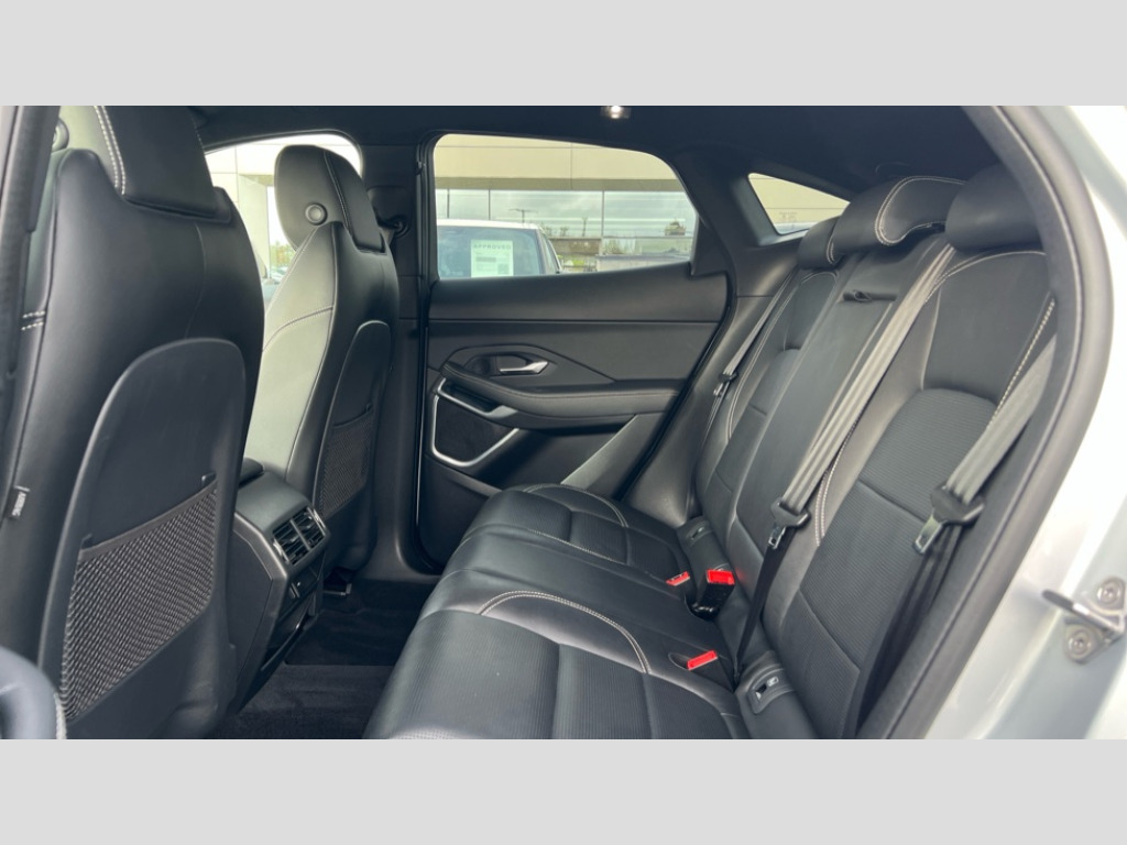 Jaguar E-Pace 2.0 D200 R-Dynamic SE 5dr Auto 11.4" touchscreen with central ICP, 12.3" full digital instrument panel, Adaptive cruise control, Android Auto, Apple car play, Blind spot assist, Driver condition monitor, Eco driving style assistant, Electric power assisted steering, Emergency services call system, Front and rear parking aid, InControl remote, Jaguar drive control with adaptive surface response, Jaguar Toggle sport shift selector, Lane keep assist, Outside temperature gauge, Pivi pro connected infotainment system with smart settings and navigation pro, Push button start, Rear collision monitor, Rear traffic monitor, Speed proportional steering, Traffic sign recognition with adaptive speed limiter, Trip computer, Voice control system, Configurable dynamics, Diesel particulate filter, Efficient Driveline, Passive suspension, AM/FM DVD MP3 radio, Bluetooth connectivity including audio streaming, DAB digital audio broadcast, Dynamic volume control, 3 flash lane change indicators, Approach Illumination, Auto high beam assist, Automatic headlights, Body colour door handles, Body colour door mirrors, Body colour front and rear lower bumper main moulding and lower side cladding, Body colour upper spoiler, Body coloured side sills, Centre high-mounted stop light, Dark satin grille tips, Electric front/rear windows with one touch/auto up/down, Electric heated/power fold memory door mirrors with approach lights and auto dimming driver side, Embossed leaper for grained and windsor leather, Heated washer jets, Heated windscreen, Jaguar script and leaper, LED tail lights, LED third brake light, Narvik black antenna pod and side pillar finisher, R Dynamic badge, R Dynamic body colour bumpers, Rain sensor windscreen wipers, Rear fog lights, Rear side wing doors, Rear wash wiper, Satin black grained front outer grille, low grill mesh and low bumper valence, side fender vent mesh and finisher, rear tow eye cover and grille mesh, Twin exhaust tailpipe, Variable front intermittent wipers, 3 rear head restraints, 3 seat bench in 2nd row, 40:20:40 rear seat fold, Bright metal pedals, Carpet mats, Centre console with armrest, Enhanced ambient lighting, Hooks loadspace, ISOFIX on outer rear seats, Loadspace cover, Loadspace light, Loadspace storage net, Luggage tie-downs in loadspace, Manual height/reach adjust steering wheel, Multifunction steering wheel, Overhead lighting console, Passive front head restraints, Power sockets, R-Dynamic branded leather steering wheel, Rear air vents, Rear bench seats, Satin chrome gearshift paddles, Single front passenger seat, Sunvisors with illuminated vanity mirrors, Twin front cupholders, Two zone climate control, 3x3 point rear seatbelts, ABS, All surface progress control (ASPC), Child locks on rear doors, Customer configurable autolock, DSC - Dynamic Stability Control, Electronic brake force distribution, Electronic parking brake, Emergency brake assist, Emergency braking, Front airbags with passenger seat occupant detector, Front and rear curtain airbags, Front and rear seatbelt reminder, Front passenger airbag deactivation, Front seatbelt pretensioners, Front side airbags, Height adjustable front seatbelts, Hill start assist, Low friction launch, Power child locks, Torque vectoring brake, Tyre pressure monitoring system, Intrusion sensor and alarm, Locking wheel nuts, Remote central locking