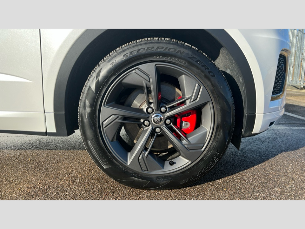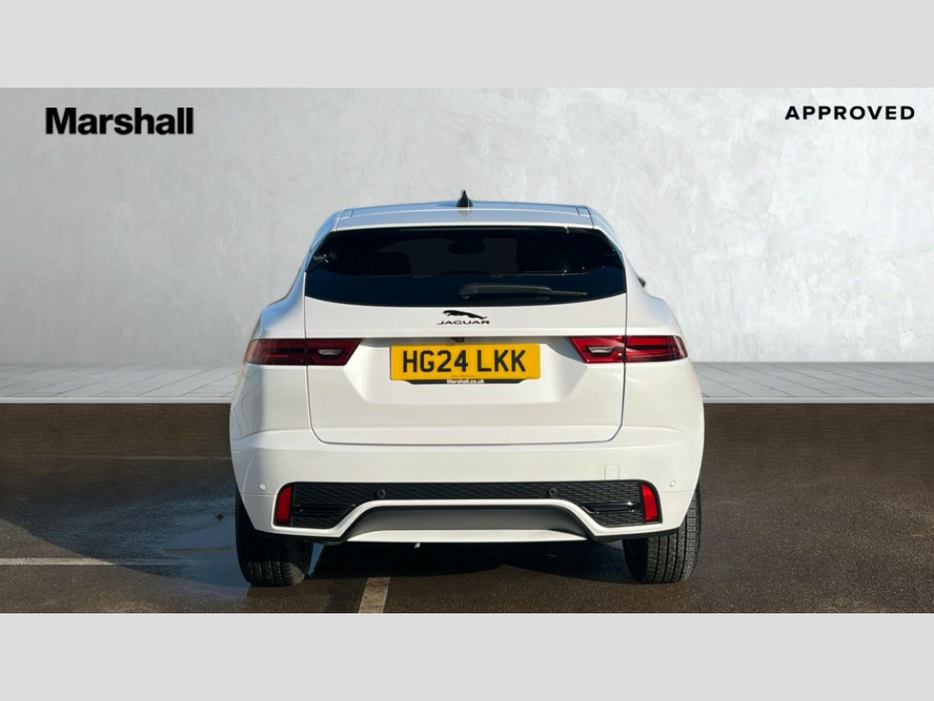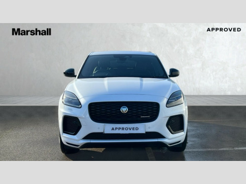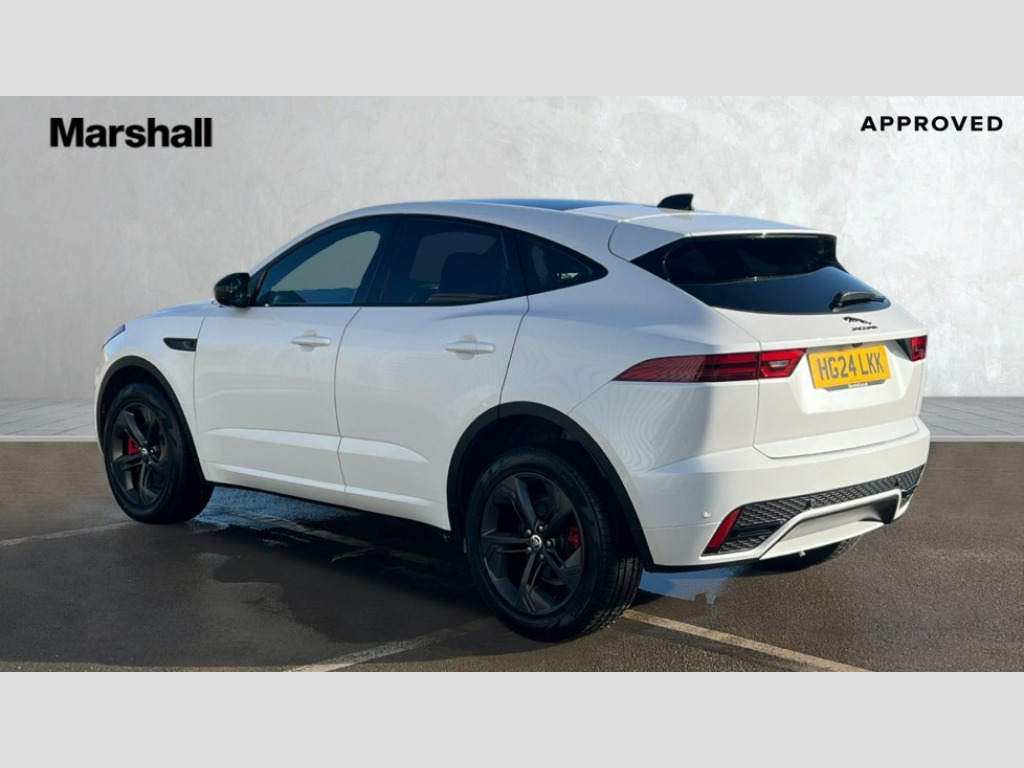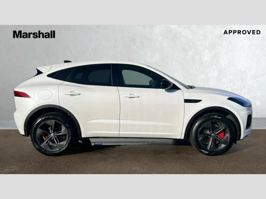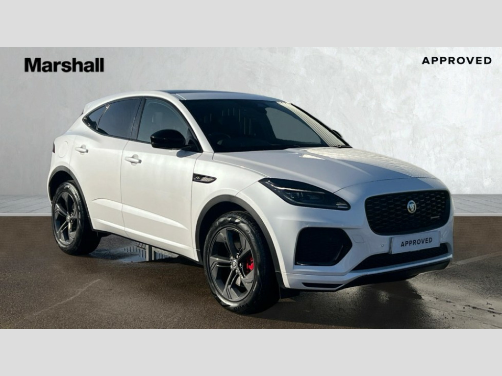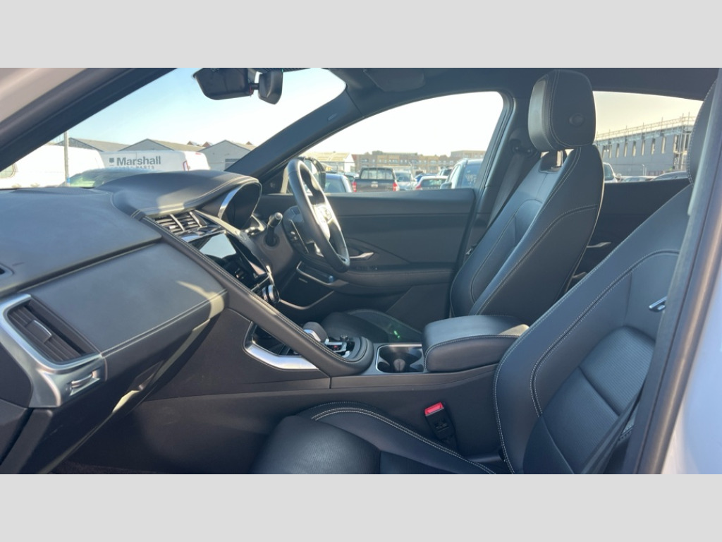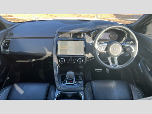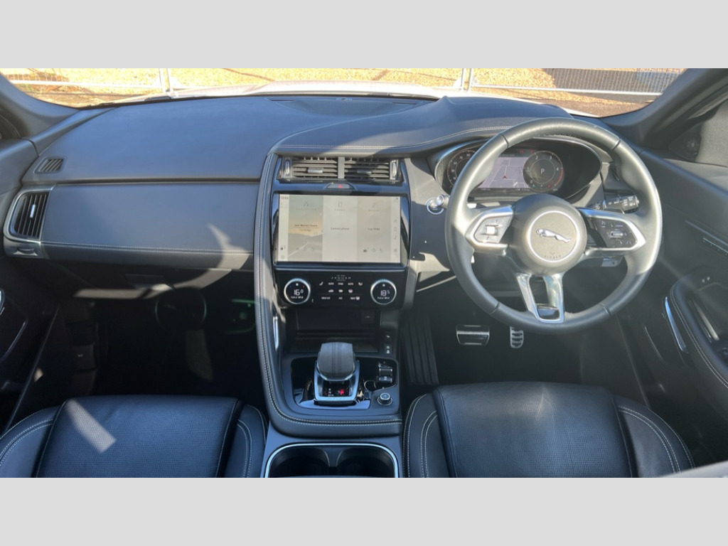 Jaguar E-Pace 2.0 D200 R-Dynamic SE Black 5dr Auto 11.4" touchscreen with central ICP, Adaptive cruise control, Android Auto, Apple car play, Blind spot assist, Driver condition monitor, Eco driving style assistant, Electric power assisted steering, Emergency services call system, Front and rear parking aid, InControl remote, Interactive driver display, Jaguar drive control with adaptive surface response, Jaguar Toggle sport shift selector, Lane keep assist, Outside temperature gauge, Pivi pro connected infotainment system with smart settings and navigation pro, Push button start, Rear collision monitor, Rear traffic monitor, Speed proportional steering, Traffic sign recognition with adaptive speed limiter, Trip computer, Voice control system, Wireless device charging, Configurable dynamics, Diesel particulate filter, Efficient Driveline, Large fuel tank, Passive suspension, Bluetooth connectivity including audio streaming, DAB digital audio broadcast, Dynamic volume control, 3 flash lane change indicators, Approach Illumination, Automatic headlights, Body colour door handles, Body colour front and rear lower bumper main moulding and lower side cladding, Body colour upper spoiler, Body coloured side sills, Centre high-mounted stop light, Dark satin grille tips, Electric front/rear windows with one touch/auto up/down, Electric heated/power fold memory door mirrors with approach lights and auto dimming driver side, Fixed panoramic glass sunroof, Heated washer jets, Heated windscreen, Jaguar script and leaper, Leaper for duo leather and embossed leaper for windsor leather, LED tail lights, LED third brake light, Metal load space scuff plates, Narvik black antenna pod and side pillar finisher, R Dynamic badge, R Dynamic body colour bumpers, Rain sensor windscreen wipers, Rear fog lights, Rear side wing doors, Rear wash wiper, Satin black grained front outer grille, low grill mesh and low bumper valence, side fender vent mesh and finisher, rear tow eye cover and grille mesh, Twin exhaust tailpipe, Variable front intermittent wipers, 3 rear head restraints, 3 seat bench in 2nd row, 40:20:40 rear seat fold, Bright metal pedals, Carpet mats, Centre console with armrest, Enhanced ambient lighting, Hooks loadspace, ISOFIX on outer rear seats, Leather steering wheel, Loadspace cover, Loadspace light, Loadspace storage net, Luggage tie-downs in loadspace, Manual height/reach adjust steering wheel, Multifunction steering wheel, Overhead lighting console, Passive front head restraints, Power sockets, Rear air vents, Rear bench seats, Satin chrome gearshift paddles, Single front passenger seat, Sunvisors with illuminated vanity mirrors, Twin front cupholders, Two zone climate control, Online pack with data plan - E-Pace, 3x3 point rear seatbelts, ABS, All surface progress control (ASPC), Child locks on rear doors, Customer configurable autolock, DSC - Dynamic Stability Control, Electronic brake force distribution, Electronic parking brake, Emergency brake assist, Emergency braking, Front airbags with passenger seat occupant detector, Front and rear curtain airbags, Front and rear seatbelt reminder, Front passenger airbag deactivation, Front seatbelt pretensioners, Front side airbags, Height adjustable front seatbelts, Hill start assist, Low friction launch, Power child locks, Torque vectoring brake, Tyre pressure monitoring system, Intrusion sensor and alarm, Keyless entry, Locking wheel nuts, Remote central locking