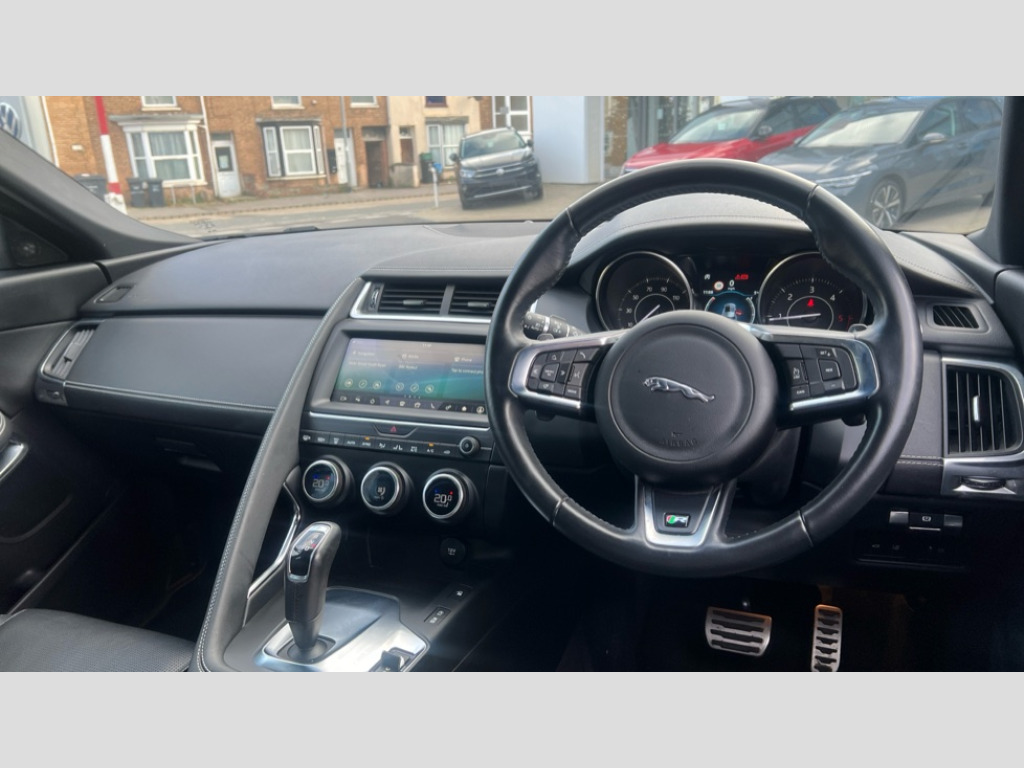 Jaguar E-Pace 2.0d [180] R-Dynamic S 5dr Auto Driver condition monitor, Eco driving style assistant, Electric power assisted steering, InControl remote, InControl Touch navigation pro, Lane keep assist, Misfuelling protection device, Outside temperature gauge, Push button starter, Speed proportional steering, Start up sequence with movement in dials and lighting, Traffic sign recognition with adaptive speed limiter, Trip computer, Voice control system, Diesel particulate filter, Efficient Driveline, Passive suspension, AM/FM DVD MP3 radio, Bluetooth connectivity including audio streaming, DAB Digital radio, Dynamic volume control, 3 flash lane change indicators, Approach Illumination, Auto dimming rear view mirror, Automatic headlights, Body colour side cladding, Electric front/rear windows with one touch/auto up/down, Front fog lights, Heated front windscreen, Heated rear window with timer, Heated washer jets, Jaguar script and leaper, R Dynamic badge, R Dynamic body colour bumpers, Rain sensor windscreen wipers, Rear fog lights, Tailgate/boot lid spoiler, Twin tailpipes with finishers, 12V power socket in rear, 2nd row 60/40 split/fold, 2nd row air vents, 3 seat bench in 2nd row, 4 Load area hooks, Black gearshift paddles, Bright metal pedals, Centre armrest console, Centre headrest in row 2, Elasticated loadspace side strap, Front head restraints, ISOFIX on outer rear seats, JaguarDrive selector, LED lighting in overhead console, Loadspace cover, Loadspace lamp, Passive front headrests, R branded leather steering wheel, Storage net in luggage compartment, Sunvisors with illuminated vanity mirrors, Tie down hooks in luggage area, Twin front cupholders, Two zone climate control, Connect pro pack - E-Pace, Smartphone pack - E-Pace, 3x3 point rear seatbelts, ABS, All surface progress control (ASPC), Customer configurable autolock, DSC - Dynamic Stability Control, Electronic brake force distribution, Electronic parking brake, Emergency brake assist, Front airbags with passenger seat occupant detector, Front and rear curtain airbags, Front and rear seatbelt reminder, Front side airbags, Hill start assist, Low friction launch, Power child locks, Torque vectoring brake, Tyre pressure monitoring system, Intrusion sensor and alarm, Locking wheel nuts