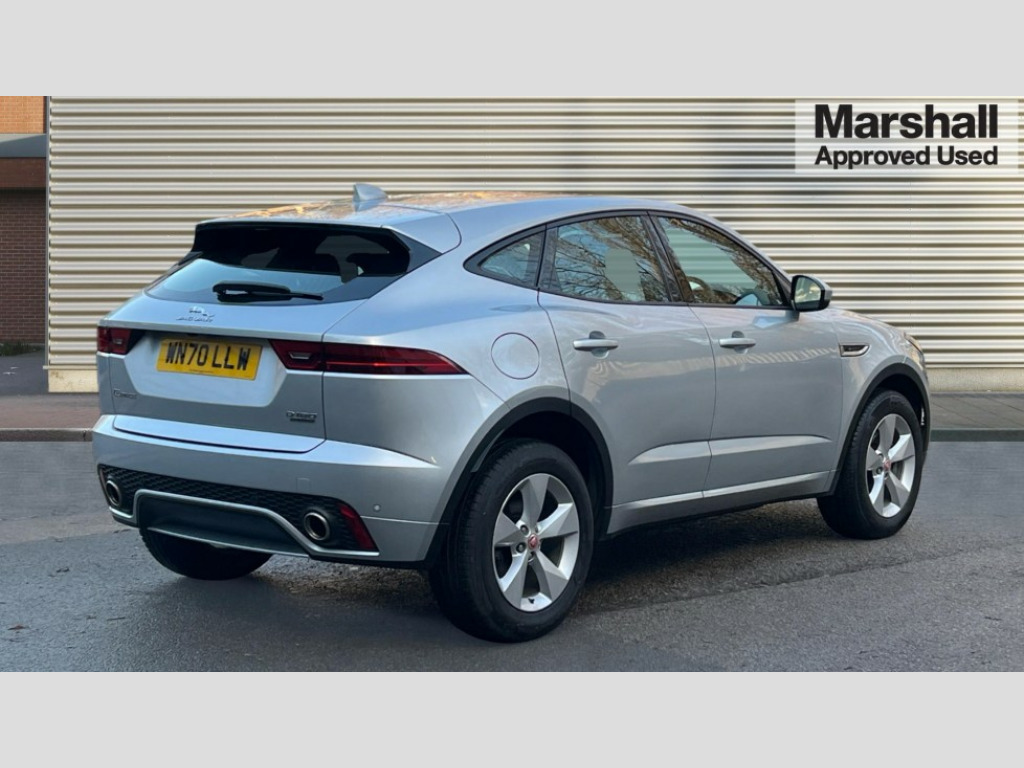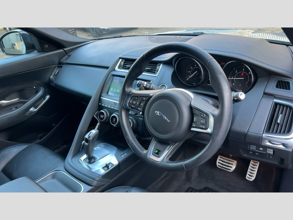 Jaguar E-Pace 2.0d [180] R-Dynamic S 5dr Auto Driver condition monitor, Eco driving style assistant, Electric power assisted steering, InControl remote, InControl Touch navigation pro, Lane keep assist, Misfuelling protection device, Outside temperature gauge, Push button starter, Speed proportional steering, Start up sequence with movement in dials and lighting, Traffic sign recognition with adaptive speed limiter, Trip computer, Voice control system, Diesel particulate filter, Efficient Driveline, Passive suspension, AM/FM DVD MP3 radio, Bluetooth connectivity including audio streaming, DAB Digital radio, Dynamic volume control, 3 flash lane change indicators, Approach Illumination, Auto dimming rear view mirror, Automatic headlights, Body colour side cladding, Electric front/rear windows with one touch/auto up/down, Front fog lights, Heated front windscreen, Heated rear window with timer, Heated washer jets, Jaguar script and leaper, R Dynamic badge, R Dynamic body colour bumpers, Rain sensor windscreen wipers, Rear fog lights, Tailgate/boot lid spoiler, Twin tailpipes with finishers, 12V power socket in rear, 2nd row 60/40 split/fold, 2nd row air vents, 3 seat bench in 2nd row, 4 Load area hooks, Black gearshift paddles, Bright metal pedals, Centre armrest console, Centre headrest in row 2, Elasticated loadspace side strap, Front head restraints, ISOFIX on outer rear seats, JaguarDrive selector, LED lighting in overhead console, Loadspace cover, Loadspace lamp, Passive front headrests, R branded leather steering wheel, Storage net in luggage compartment, Sunvisors with illuminated vanity mirrors, Tie down hooks in luggage area, Twin front cupholders, Two zone climate control, Connect pro pack - E-Pace, Smartphone pack - E-Pace, 3x3 point rear seatbelts, ABS, All surface progress control (ASPC), Customer configurable autolock, DSC - Dynamic Stability Control, Electronic brake force distribution, Electronic parking brake, Emergency brake assist, Front airbags with passenger seat occupant detector, Front and rear curtain airbags, Front and rear seatbelt reminder, Front side airbags, Hill start assist, Low friction launch, Power child locks, Torque vectoring brake, Tyre pressure monitoring system, Intrusion sensor and alarm, Locking wheel nuts