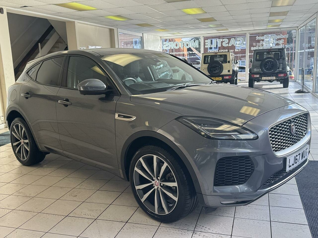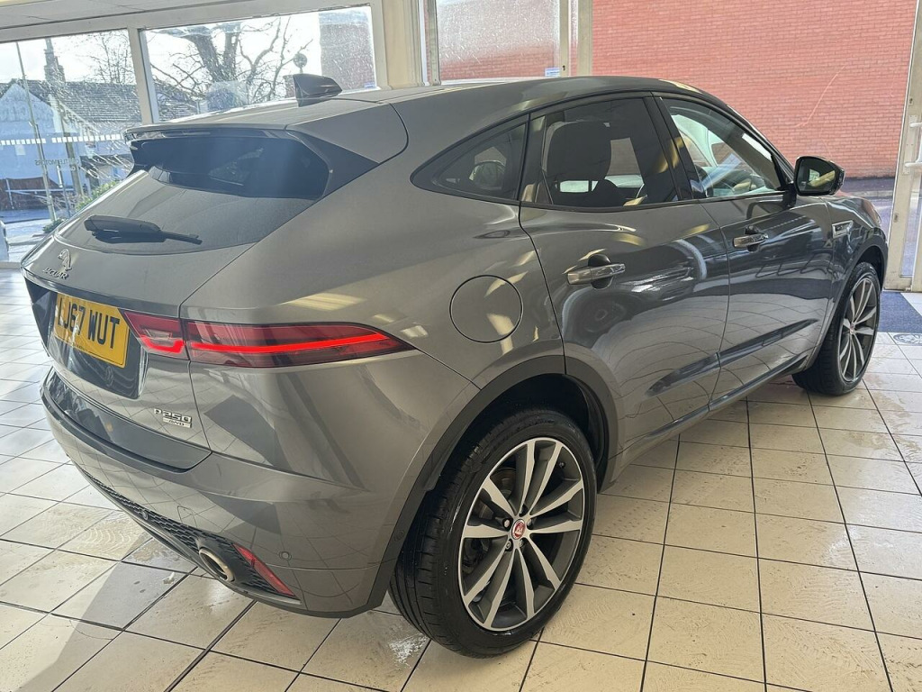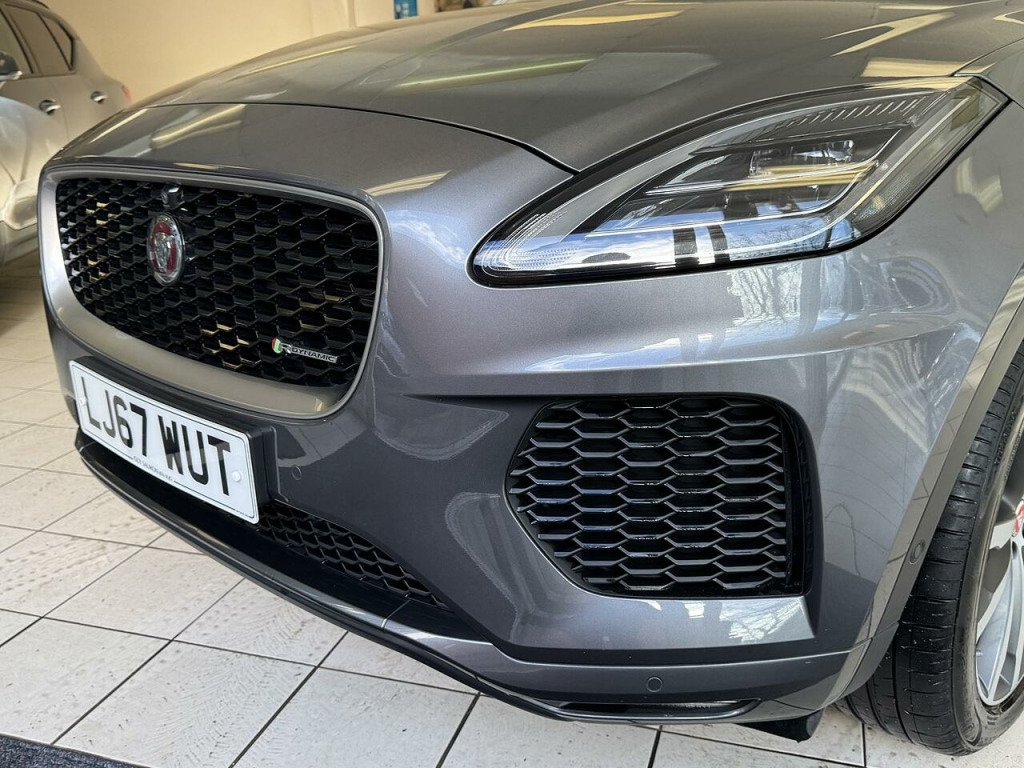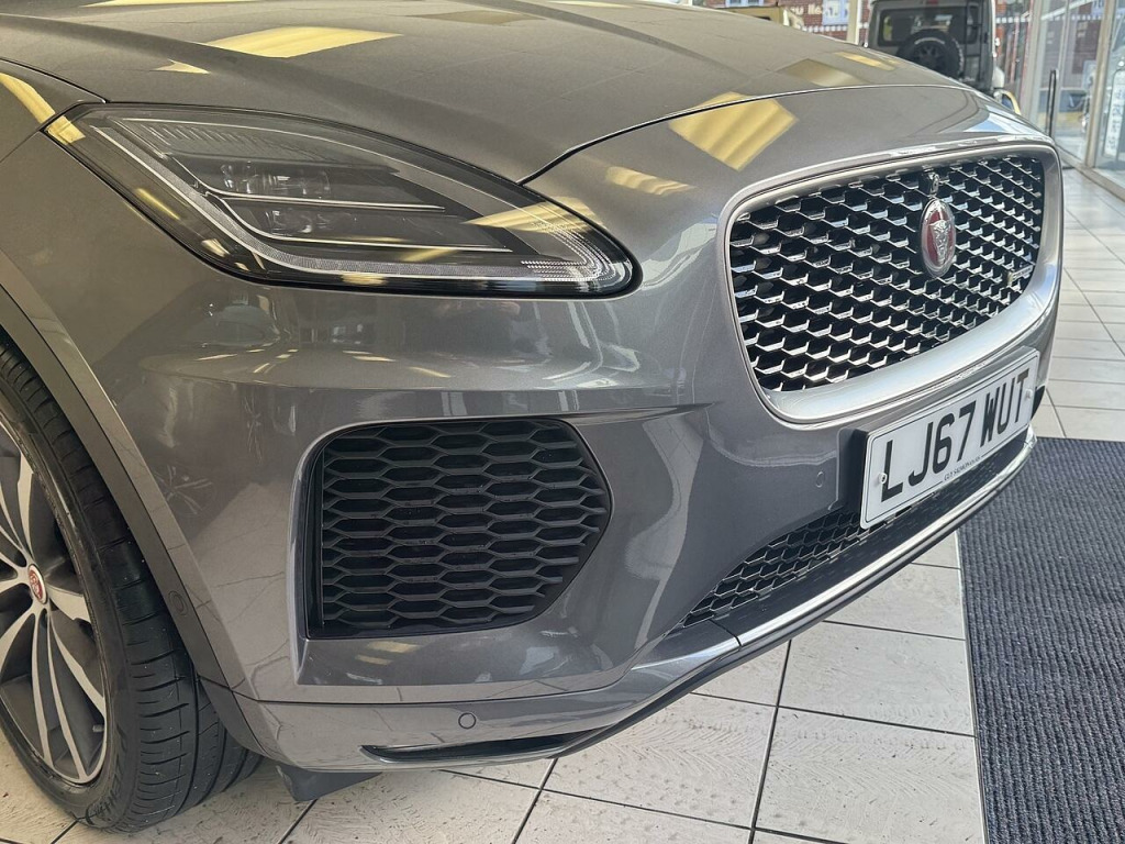 Serviced By Jaguar At 2,871m , 5,306m , 6,359m , 7,735m , 9,224m , 10,820m And 12,561 miles in January 2025. Serviced Prior To Sale. This E-Pace is in outstanding condition and has be meticulously maintained by Jaguar. It comes with some fantastic factory upgrades including the Head Up Display , 360 Degree Camera , Panoramic Glass Roof and so much more. Complete with both keys , mats and handbooks plus a load space liner and space saver spare wheel.. 10in Touch Pro, 5in Display with Instrument Panel, Bluetooth Connectivity, Connect Pro Pack, DAB Radio, Dynamic Volume Control, Jaguar Optimised Assistance, Meridian Sound System - 380W, Navigation Pro System, Power Sockets, Remote, Smartphone Pack, SOS Emergency Call, 360 Degree Parking Aid, Adaptive Cruise Control with Queue Assist, Blind Spot Assist, Driver Condition Monitor, ECO Driving Style Assistant, JaguarDrive Control, Park Assist, Rear View Camera, Traffic Sign Recognition with Adaptive Speed Limiter, Trip Computer, Tyre Pressure Monitoring System, Voice Control, 20in Alloy Wheels - 5 Split-Spoke Satin Grey Diamond Turned Finish - Style 5051, Auto-Dimming - Power Fold - Heated Door Mirrors with Memory and Approach Lights, Body Coloured Roof, Body-Coloured Door Claddings, Electric Windows - Front and Rear with One-Touch Open-Close and Anti-Trap, Gloss Black Grille with Satin Chrome Surround, Heated Front Windscreen, Heated Rear Window, Heated Washer Jets, Locking Wheel Nuts, R-Dynamic Body Kit, Rear Fog Lights, Satin Black Side Window Surround, Satin Chrome Side Vents, Tailgate Spoiler, Twin Tailpipes with Finishers, Tyre Repair System, Approach Illumination, Auto High Beam Assist, Automatic Headlights, Front Fog Lights, LED Headlights with Signature Daytime Running Lights, LED Tail Lights, 18-Way Electric Memory Front Seats, 2-Zone Climate Control, 3-Flash Lane Change Indicators, 60-40 Split Fold Rear Seat, Auto-Dimming Interior Rear View Mirror, Black Gearshift Paddles, Bright Metal Pedals, Centre Console Cubby Box, Centre Console with Armrest, Ebony Morzine Headlining, Hooks in Loadspace, Interactive Driver Display, Loadspace Cover, Loadspace Elasticated Side-Strap, Loadspace Lighting, Loadspace Storage Net, Luggage Tie Downs in Loadspace, Metal Treadplates with R-Dynamic Branding, Overhead Lighting Console, Passive Front Head Restraints, Powered Gesture Tailgate, Push Button Start, Rain Sensing Windscreen Wipers, R-Dynamic Branded Leather Steering Wheel, Second Row Air Vents, Sunvisors with Illuminated Vanity Mirrors, Twin Front Cupholders with Cover, EPAS - Electric Power Assisted Steering, Low Traction Launch, Torque Vectoring by Braking - TVBB, 350mm Brakes, ABS - Anti-locking Braking System, Airbags - Front Side, Airbags - Full Length Side Window Curtain, ASPC - All Surface Progress Control, CBC - Cornering Brake Control, Customer Configurable Autolock, Drive Pack, Dynamic Stability Control and Traction Control, EBA - Emergency Brake Assist, EBD - Electronic Brake-Force Distribution, EBL - Emergency Brake Lights, Emergency Braking, EPB - Electric Parking Brake, Front Airbags with Passenger Seat Occupant Detector, High-Speed Emergency Braking, Hill Launch Assist, Intrusion Sensor - Perimetric and Volumetric Protection, Keyless Entry, Lane Keep Assist, Park Pack, Pedestrian Airbag System, Power Operated Child Locks, Rear ISOFIX, Rear Traffic Monitor, RSC - Roll Stability Control, Seat Belt Reminder, Trailer Stability Assist, Surround Camera System, 20in Alloy Wheels - 5 Spoke Style 5054, Body Coloured Fixed Panoramic Roof, Corris Grey, Head-Up Display, Privacy Glass. Full dealership history