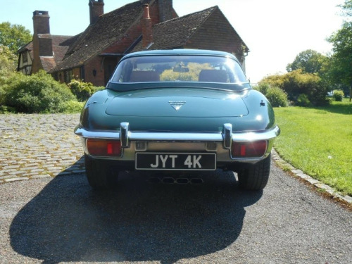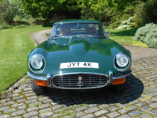This classic 1972 Jaguar E-Type SERIES 3 V12 Automatic is Finished in the Rare Colour Scheme ,from New, of BRITISH RACING GREEN with contrasting TAN LEATHER TRIM with a Black Soft Top and COMES WITH A FACTORY DETATCHABLE HARD TOP finished in the matching British Racing Green which was also supplied when the car was new, Along with CHROME WIRE WHEELS. The Car has ONLY had 4 PREVIOUS OWNERS from NEW , the LAST OWNER for 9 YEARS ( Since 2015 till 2024) and the Owner prior to that OWNED the CAR from 1980 UNTIL 2015 (35 Years) . When the Last owner purchased the car in 2015 he had the car inspected by Miles Classic of Huddersfield which we have the report that states what a good sound original car it was but the paint had faded slightly due it being 43 years old at that time. So having purchased it he asked Miles Classic to set about giving the car BARE METAL RESPAY and to completely Recommission the car with many Upgrades which COST in EXCESS of £40,000. The CAR COMES with PAPERWORK & PHOTOGRAPHIC HISTORY DATING BACK to 1974 with ALL OLD MOTs and Copies of OLD LOG BOOKS and a letter from the OWNER in 1980 That confirms the Ownership and mileage at that time .The work carried out by the last owner is to extensive to list here so please ring for the full outline of the work and upgrades carried out. This is a very nice and well sorted example and an absolute pleasure to drive.