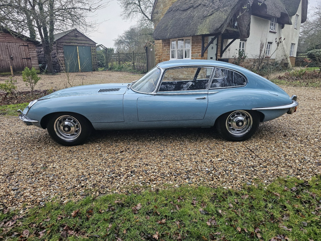 Available soon,, , 1969 Jaguar E-Type Series 2, 4.2 Coupe 2+2. manual. Genuine 55,000 Miles , , This original UK, RHD Manual example is an exceptional and extremely original example of the iconic Jaguar E-Type Series 2 Coupe presented in outstanding condition and showing a genuine 55,000 miles from new. With only two recorded previous owners, this is a rare opportunity to acquire a truly unspoilt car. , Finished in Glorious Cotswold Blue, the paintwork is virtually unmarked, displaying superb lustre and depth of shine. The bodywork is exceptional, with near perfect, factory typical correct panel gaps, clearly reflecting a car that has never been totally stripped or rebuilt, a level of originality seldom found today. The interior remains beautifully preserved, featuring excellent original Connolly black leather seats, a perfect headlining, and well-preserved original trim. The always admired E Type dashboard retains all the original switchgear and dials, crisp and clear, all chrome work is excellent and complements the cars elegant lines perfectly. The engine bay is immaculately clean, highly original, and correctly presented, while the underside, including sills, floors, and structural areas, remains very original, solid, and well rust-protected. The original tool kit and bag sits in the boot along with the original spare wheel. , This super Jaguar has benefitted from extensive recent mechanical work carried out only a few miles ago, including:, , Cylinder head overhaul and conversion to unleaded fuel, new timing chain gears and tensioners, clutch, clutch slave cylinder, gearbox overhaul, including new bearings, carburettor overhaul and balancing, rear suspension overhaul including new Spax shock absorbers, rear springs, brake calipers and discs, track rod ends, ball joints, anti-roll bar links and bushes, propshaft rebuild, rear suspension cradle mountings, all new servo and water hoses, fuel pump, battery, electronic ignition fitted, high-torque starter motor, recent new tyres and full engine service, , The car has been maintained regardless of cost, with substantial expenditure over the years to ensure it drives exactly as an E-Type should. , Accompanied by a comprehensive history file including service and repair invoices, receipts, previous MOT certificates, old tax discs, and original handbooks with wallet. , A truly outstanding, unmolested Jaguar E-Type offering exceptional originality, condition, and provenance, ideal for the discerning collector or serious enthusiast. , Although MOT exempt as classed as a historic vehicle, the car will be supplied with a full 12 months MOT for added peace of mind, , Viewing is highly recommended. , Part exchange considered. , Nationwide UK Mainland transported delivery arranged.