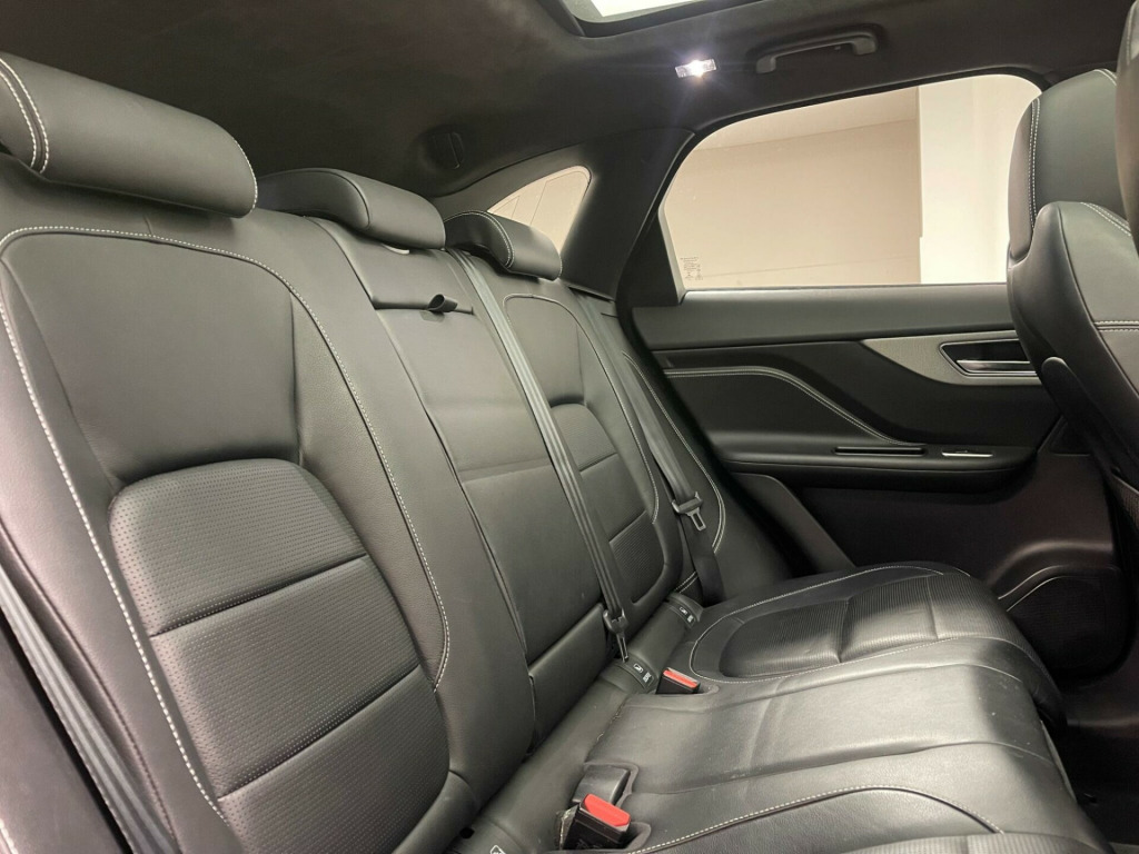 Discover this 2020 Jaguar F-PACE D180 Chequered Flag, a distinguished all wheel drive SUV that combines performance with premium features. Powered by a 2.0 litre diesel engine, this Euro 6 compliant model offers an impressive towing weight of 2400 kg, making it a capable companion for various needs. Inside, you'll find the convenience of Apple CarPlay, a fixed panoramic roof for an airy cabin, and a sophisticated 2 zone climate control system. Enjoy your favourite music through the 380W Meridian sound system, and navigate tight spots with ease thanks to the front and rear parking aid. The generous boot space ensures practicality for all your journeys.Experience the dynamic capability of this F-PACE, accelerating from 0 to 60 mph in just 8.4 seconds, a testament to its responsive engineering. These highlights demonstrate how this Jaguar F-PACE stands out from other vehicles in its class, offering a superior blend of power, comfort, and advanced technology for an exceptional driving experience. -way electric front seats, 10in touch pro, 2-zone climate control, 20d awd badge, 20in alloy wheels - 5 split-spoke style 5031 with gloss black finish, 3-flash lane change indicators, 325mm front brakes, 40-20-40 split fold rear seat, abs - anti-locking braking system, am-fm radio, aspc - all surface progress control, airbags - front side, airbags - full length side window curtain, ambient interior lighting, android auto, apple carplay, approach illumination, auto-dimming interior rear view mirror, bluetooth connectivity, bluetooth streaming, body coloured door mirror caps, body-coloured door claddings with gloss black finishers, brake pad wear indicator, bright metal pedals, cd-dvd player, centre console - side stowage, centre console - storage surround finishers - satin chrome, centre console with armrest, connect pro, cruise control with speed limiter, digital audio broadcast - dab - radio, door trim - luxtec, driver condition monitor, dynamic stability control - dsc, dynamic volume control, eba - emergency brake assist, eco driving style assistant, epas - electric power assisted steering, epb - electronic parking brake, ebony suedecloth headlining, electric windows - front and rear with one-touch open-close and anti-trap, electrically adjustable heated door mirrors, emergency braking, f-pace badge, fixed panoramic roof, front airbags with passenger seat occupant detector, front fog lights, front headrests, front windscreen with non-acoustic layer, front and rear parking aid, gloss black grille with gloss black surround, gloss black roof rails, gloss black side vents with chequered flag badge, gloss black side window surround, glovebox finisher with jaguar script, green tinted glass, headlight power wash, heated front seats, heated front windscreen, heated rear window, heated steering wheel, hill launch assist, hook in loadspace, isofix rear, incontrol apps, interactive driver display, interior front door handles with separate locking switches, jaguar script and leaper, jaguar tyre repair system, jaguardrive control, led tail lights, lane keep assist, lockable glovebox, luggage tie downs in loadspace, luxtec wrapped instrument panel topper with wrapped binnacle, manually adjustable steering column, meridian sound system - 380w, meshed aluminium trim finisher, metal loadspace scuff plate, metal treadplates with chequered flag branding, navigation pro, no loadspace storage rails, open differential with torque vectoring by braking, outside temperature gauge, overhead lighting console, passive front head restraints, power operated child locks, power sockets, powered tailgate - boot lid, premium carpet mats, pro services and wi-fi hotspot, protect for warranty period, r-sport rear bumper, rain sensing windscreen wipers, rear air vents, rear armrest with twin cupholders, rear camera, rear centre headrest, rear fog lights, rear metal treadplates, remote premium, rotary shifter, s front bumper, satin chrome gearshift paddles, satin chrome touchscreen surround, seat belt reminder, seats - sports, single sided twin tailpipes with 75mm finishers, soft grain leather sport steering wheel, speed proportional steering, start up sequence with movement - dials and lighting, steering wheel - multi-function, touch pro navigation pack with meridian digital sound system - 380w, traffic sign recognition with adaptive speed limiter, trailer stability assist, trip computer, twin front cupholders with cover, tyre pressure monitoring system, unpainted brake calipers, valet mode, variable intermittent wipers, voice control, xenon headlights with led signature