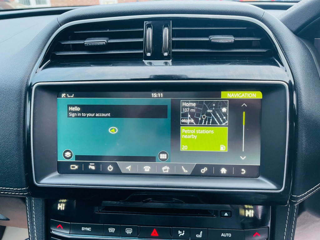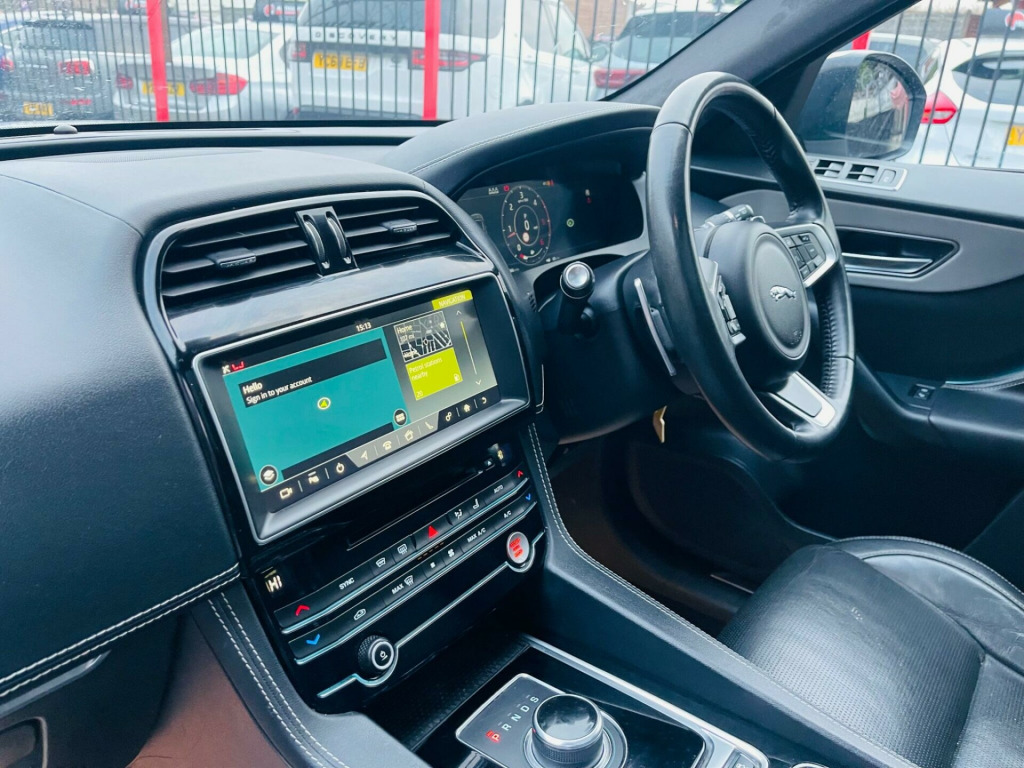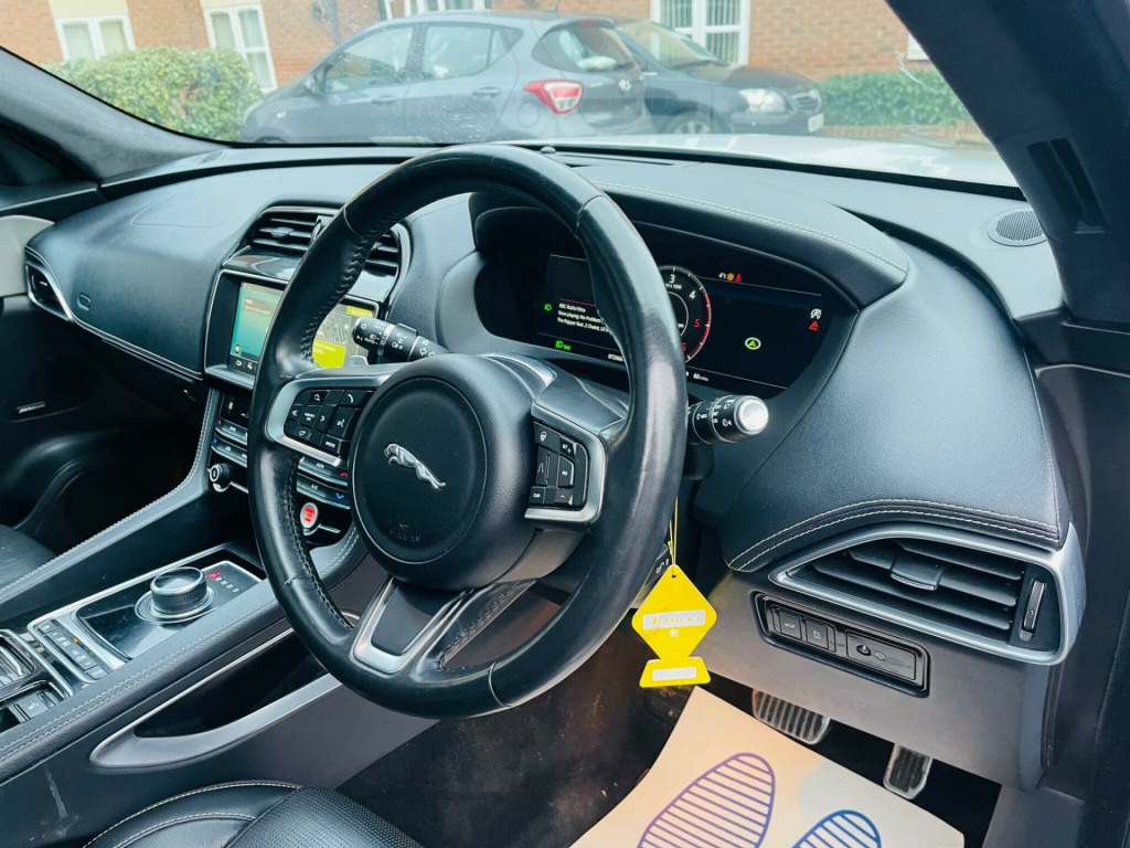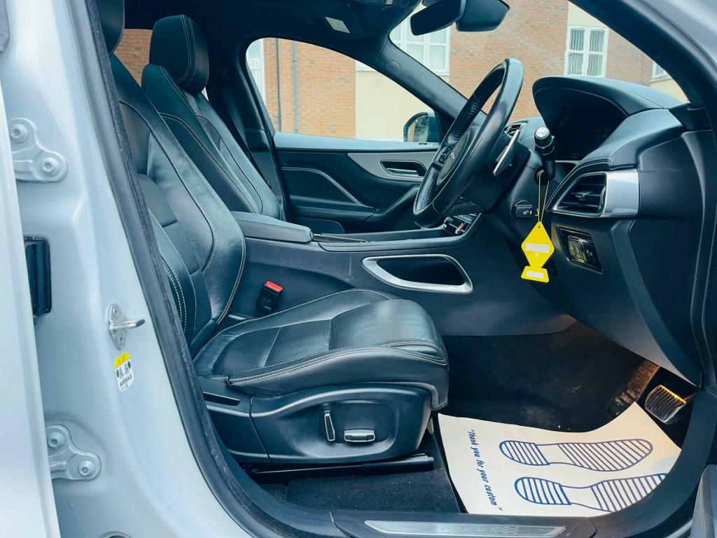 WELCOME TO KINGSTANDING CAR SALES HERE WE HAVE A GREAT SPEC JAGUAR F-PACE READY TO GOONLY 2 FORMER KEEPERS FROM NEWWARRANTED ON THE MILES WITH A SERVICE HISTORYJUST BEEN SERVICE BY USMOT FEB 2027GREAT SPEC CAR WITH PANROOFSATNAVREVERSE CAMERALANE ASSITPARKING SENSORSHEATED LEATHER SEATSHEATED STEERING WHEELELECTRIC BOOTLIDAPPLE CAR PLAYFULLY HPI CHECKED AND CLEAR WITH A REPORTDRIVES FAULTLESSANY INSPECTION IS WELCOMENATIONAL PARTS AND LABOUR WARRANTY INCLUDED FOR A PEACE OF MINDWE TAKE ANY CAR IN PART EXCHANGEVIEWING BY APPOINTMENTS ONLYANY INSPECTION IS WELCOMEREG IS PL19ZYU 2019 Jaguar F-PACE D180 Chequered Flag boasts a clear vehicle history, offering peace of mind for its next owner. This stylish SUV features a powerful 2.0L diesel engine paired with a capable Four Wheel Drive system, ensuring confident performance in various conditions. As a Euro 6 compliant vehicle, it meets modern emissions standards. The Chequered Flag trim level adds distinctive touches, while notable features include a Fixed Panoramic Roof for an airy cabin feel, a Heated Steering Wheel for comfort during colder months, and Xenon Headlights with LED Signature for enhanced visibility. Inside, you'll find the convenience of Apple CarPlay and a Touch Pro Navigation Pack complete with a premium 380w Meridian Digital Sound System.The Jaguar F-PACE D180 Chequered Flag offers a compelling blend of practicality and performance. Its impressive 2400 kg towing weight makes it a versatile choice for those needing to tow. The generous boot space provides ample room for luggage or shopping, highlighting its suitability for family life or active pursuits. With an acceleration of 0-60mph in just 8.4 seconds, this F-PACE delivers responsive performance that sets it apart from many other vehicles in its class, making every journey an engaging experience. -way electric front seats, 10in touch pro, 2-zone climate control, 20d awd badge, 20in alloy wheels - 5 split-spoke style 5031 with gloss black finish, 3-flash lane change indicators, 325mm front brakes, 40-20-40 split fold rear seat, abs - anti-locking braking system, am-fm radio, aspc - all surface progress control, airbags - front side, airbags - full length side window curtain, ambient interior lighting, android auto, apple carplay, approach illumination, auto-dimming interior rear view mirror, bluetooth connectivity, bluetooth streaming, body coloured door mirror caps, body-coloured door claddings with gloss black finishers, brake pad wear indicator, bright metal pedals, cd-dvd player, centre console - side stowage, centre console - storage surround finishers - satin chrome, centre console with armrest, connect pro, cruise control with speed limiter, digital audio broadcast - dab - radio, door trim - luxtec, driver condition monitor, dynamic stability control - dsc, dynamic volume control, eba - emergency brake assist, eco driving style assistant, epas - electric power assisted steering, epb - electronic parking brake, ebony suedecloth headlining, electric windows - front and rear with one-touch open-close and anti-trap, electrically adjustable heated door mirrors, emergency braking, f-pace badge, fixed panoramic roof, front airbags with passenger seat occupant detector, front fog lights, front headrests, front windscreen with non-acoustic layer, front and rear parking aid, gloss black grille with gloss black surround, gloss black roof rails, gloss black side vents with chequered flag badge, gloss black side window surround, glovebox finisher with jaguar script, green tinted glass, headlight power wash, heated front seats, heated front windscreen, heated rear window, heated steering wheel, hill launch assist, hook in loadspace, isofix rear, incontrol apps, interactive driver display, interior front door handles with separate locking switches, jaguar script and leaper, jaguar tyre repair system, jaguardrive control, led tail lights, lane keep assist, lockable glovebox, luggage tie downs in loadspace, luxtec wrapped instrument panel topper with wrapped binnacle, manually adjustable steering column, meridian sound system - 380w, meshed aluminium trim finisher, metal loadspace scuff plate, metal treadplates with chequered flag branding, navigation pro, no loadspace storage rails, open differential with torque vectoring by braking, outside temperature gauge, overhead lighting console, passive front head restraints, power operated child locks, power sockets, powered tailgate - boot lid, premium carpet mats, pro services and wi-fi hotspot, protect for warranty period, r-sport rear bumper, rain sensing windscreen wipers, rear air vents, rear armrest with twin cupholders, rear camera, rear centre headrest, rear fog lights, rear metal treadplates, remote premium, rotary shifter, s front bumper, satin chrome gearshift paddles, satin chrome touchscreen surround, seat belt reminder, seats - sports, single sided twin tailpipes with 75mm finishers, soft grain leather sport steering wheel, speed proportional steering, start up sequence with movement - dials and lighting, steering wheel - multi-function, touch pro navigation pack with meridian digital sound system - 380w, traffic sign recognition with adaptive speed limiter, trailer stability assist, trip computer, twin front cupholders with cover, tyre pressure monitoring system, unpainted brake calipers, valet mode, variable intermittent wipers, voice control, xenon headlights with led signature