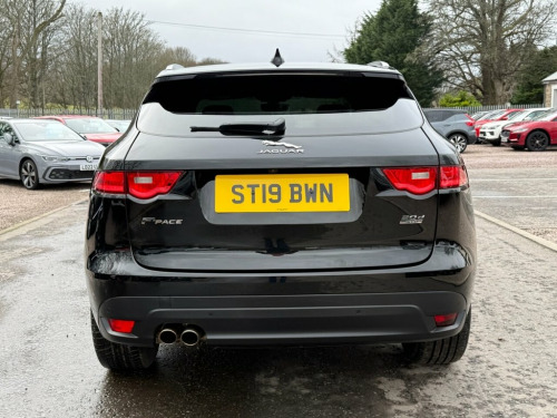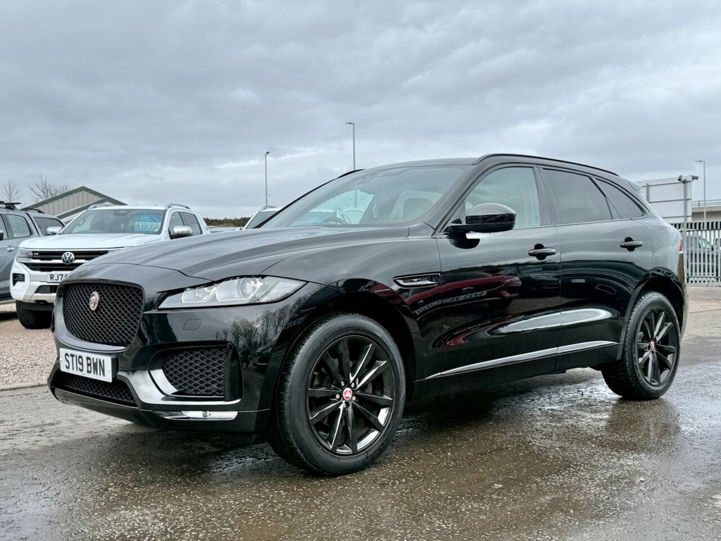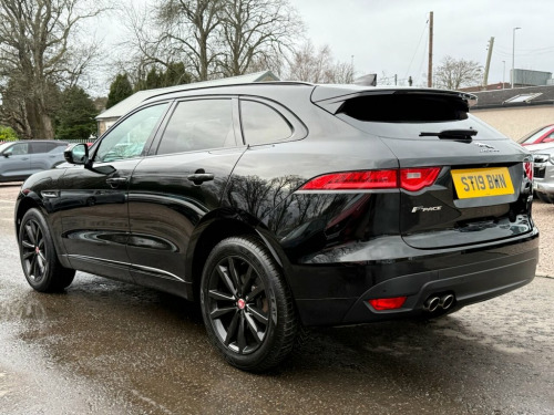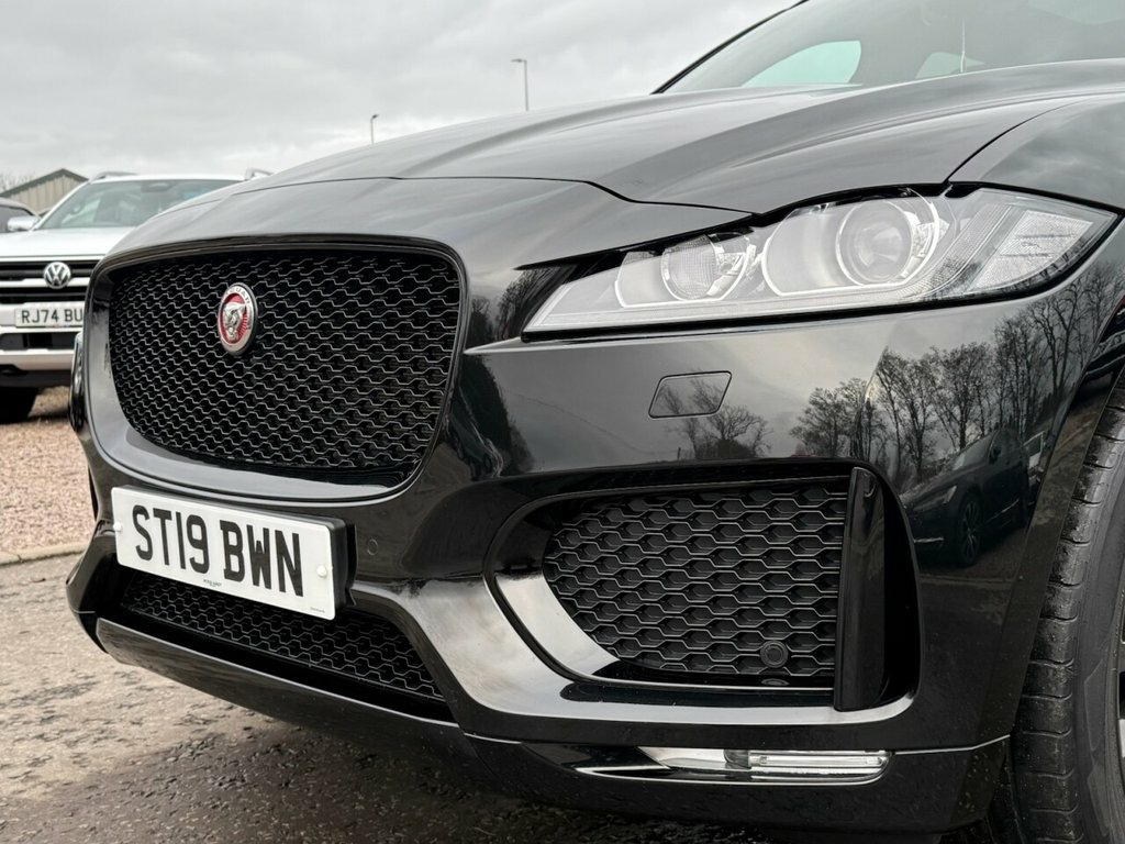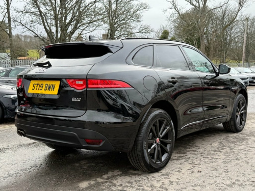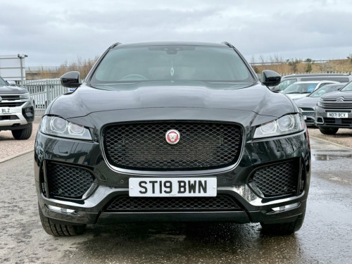 The 2019 Jaguar F-PACE 2.0 D180 Chequered Flag is a stylish and refined SUV that combines sporty performance with everyday practicality. Powered by a 2.0-litre D180 diesel engine producing 180 bhp, paired with an automatic gearbox and all-wheel drive, it delivers smooth acceleration, strong motorway performance and confident grip in all conditions. As a Chequered Flag edition, this F-PACE benefits from distinctive styling details and a well-appointed interior that enhances its premium feel. The cabin offers a comfortable driving position, high-quality materials and generous space for both passengers and luggage. On the road, the F-PACE stands out for its engaging handling and composed ride, offering a driving experience that feels more dynamic than many SUVs in its class while maintaining comfort for longer journeys. A premium, capable and versatile SUV that blends Jaguar performance with luxury and practicality. Full service history , Powered Gesture Tailgate, 20in Alloy Wheels - 5 Spoke Style 5035 w, Ebony Morzine Headlining, Privacy Glass, Sliding Panoramic Roof, Perforated Grained Leather - Ebony-Pimen, Meridian Surround Sound System, 10-Way Electric Front Seats, 10in Touch Pro, 2-Zone Climate Control, 20d AWD Badge, 20in Alloy Wheels - 5 Split-Spoke Style , 3-Flash Lane Change Indicators, 325mm Front Brakes, 40-20-40 Split Fold Rear Seat, ABS - Anti-locking Braking System, AM-FM Radio, ASPC - All Surface Progress Control, Airbags - Front Side, Airbags - Full Length Side Window Curtai, Ambient Interior Lighting, Android Auto, Apple CarPlay, Approach Illumination, Auto-Dimming Interior Rear View M