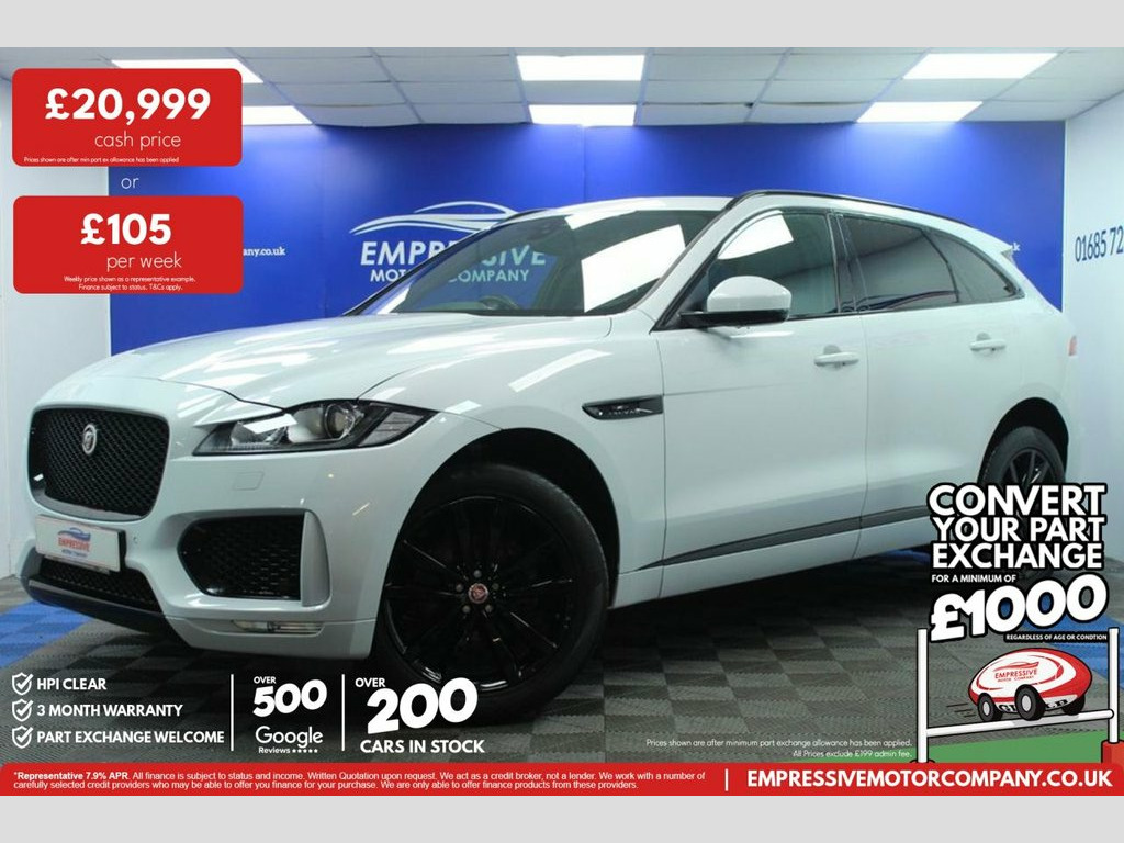 ****FABULOUS F-PACE**** Just in! This Stunning 2020 JAGUAR F-PACE 2.0 D180 Chequered Flag SUV 5dr Diesel Auto AWD Euro 6 (s/s) (180 ps) Finished In White! 66,102 miles - 2.0L diesel - Automatic - 4 wheel drive - 20" gloss black wheels - Automatic LED headlights - Powered tailgate - Reverse camera - Parking sensors - Panoramic sun roof - Full leather electric heated seats - Heated windscreen - Heated steering wheel - Virtual cockpit - Meridian sound system - Touch media screen with sat nav - Bluetooth with apple car play - USB - Automatic 2 zone climate control - Start stop - Traction control - All terrain progress control - sport mode - Electric handbrake - Voice control - Cruise control - Speed limiter - Paddle shift - Auto wipers - Lane assist - Ambient lighting - Electric folding mirrors 10-Way Electric Front Seats, 10in Touch Pro, 2-Zone Climate Control, 20d AWD Badge, 20in Alloy Wheels - 5 Split-Spoke Style , 3-Flash Lane Change Indicators, 325mm Front Brakes, 40-20-40 Split Fold Rear Seat, ABS - Anti-locking Braking System, Airbags - Front Side, Airbags - Full Length Side Window Curtai, AM-FM Radio, Ambient Interior Lighting, Android Auto, Apple CarPlay, Approach Illumination, ASPC - All Surface Progress Control, Auto-Dimming Interior Rear View Mirror, Bluetooth Connectivity, Bluetooth Streaming, Body Coloured Door Mirror Caps, Body-Coloured Door Claddings with Gloss , Brake Pad Wear Indicator, Bright Metal Pedals, CD-DVD Player, Centre Console - Side Stowage, Centre Cons