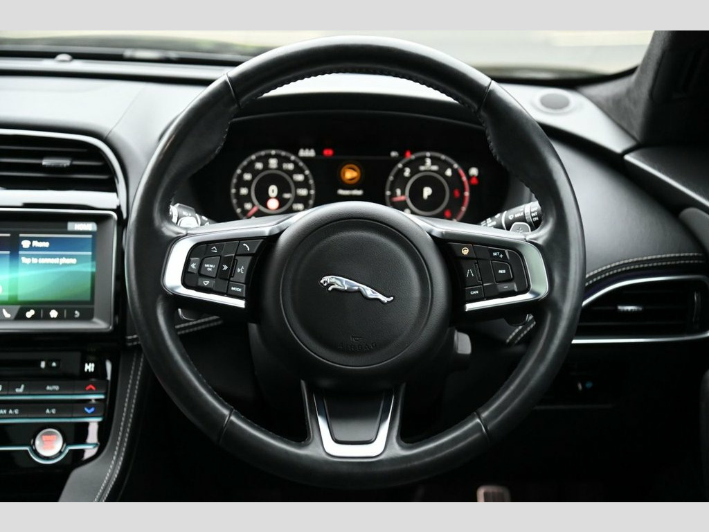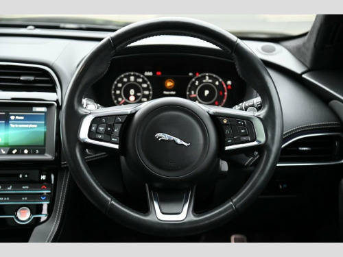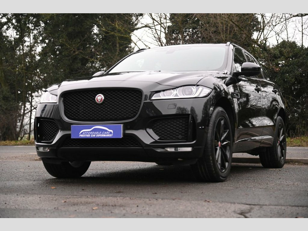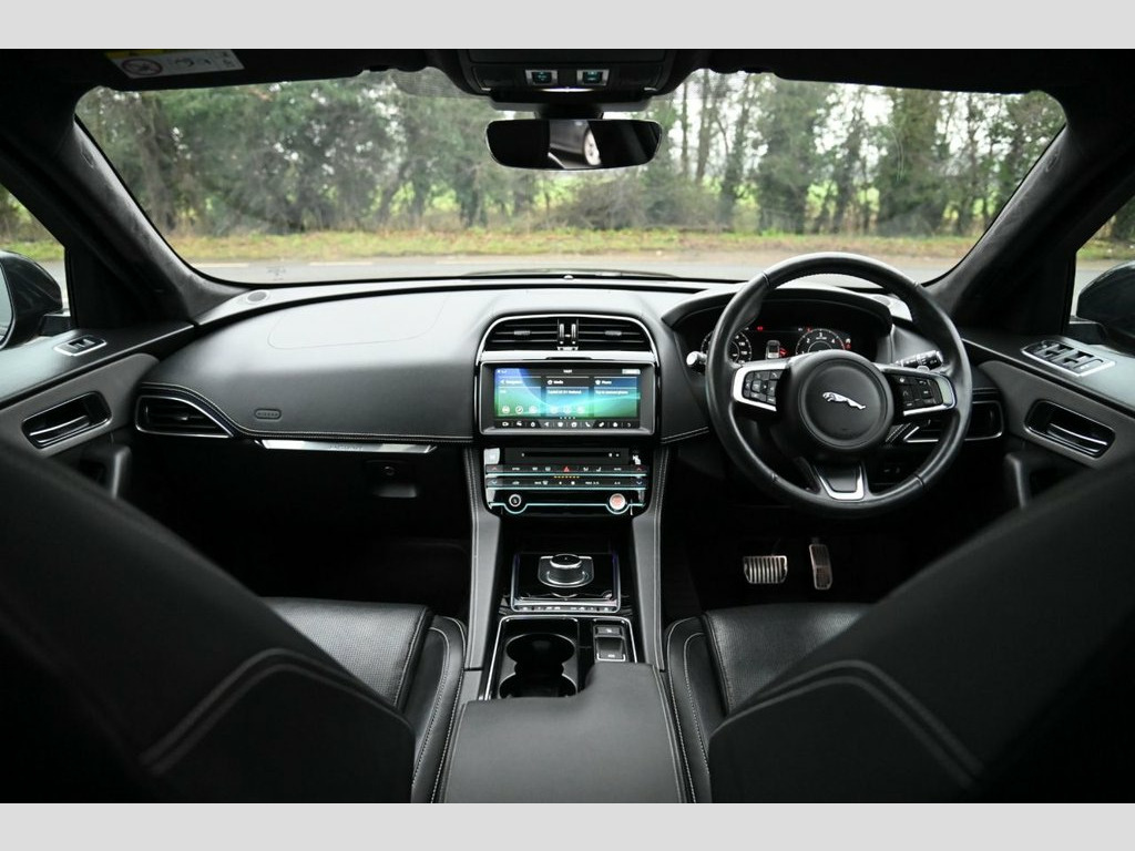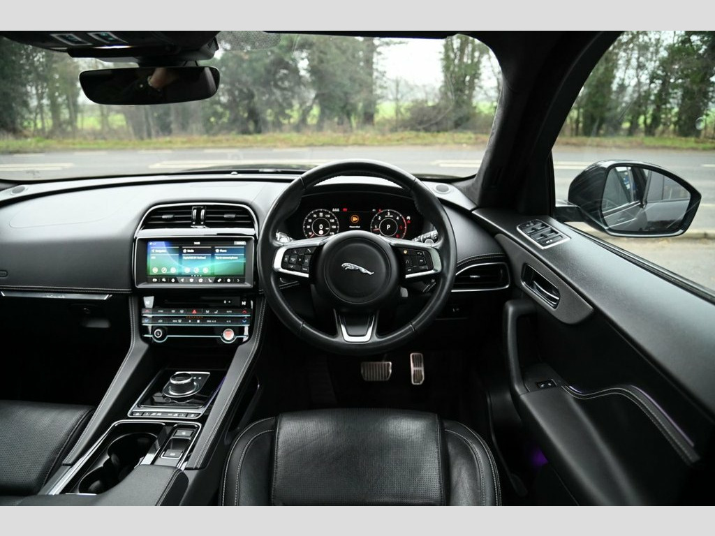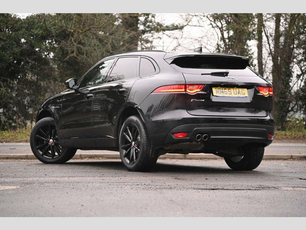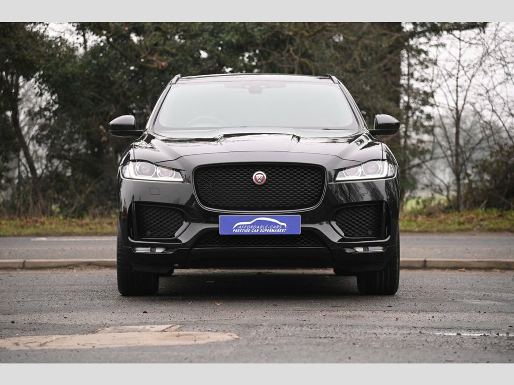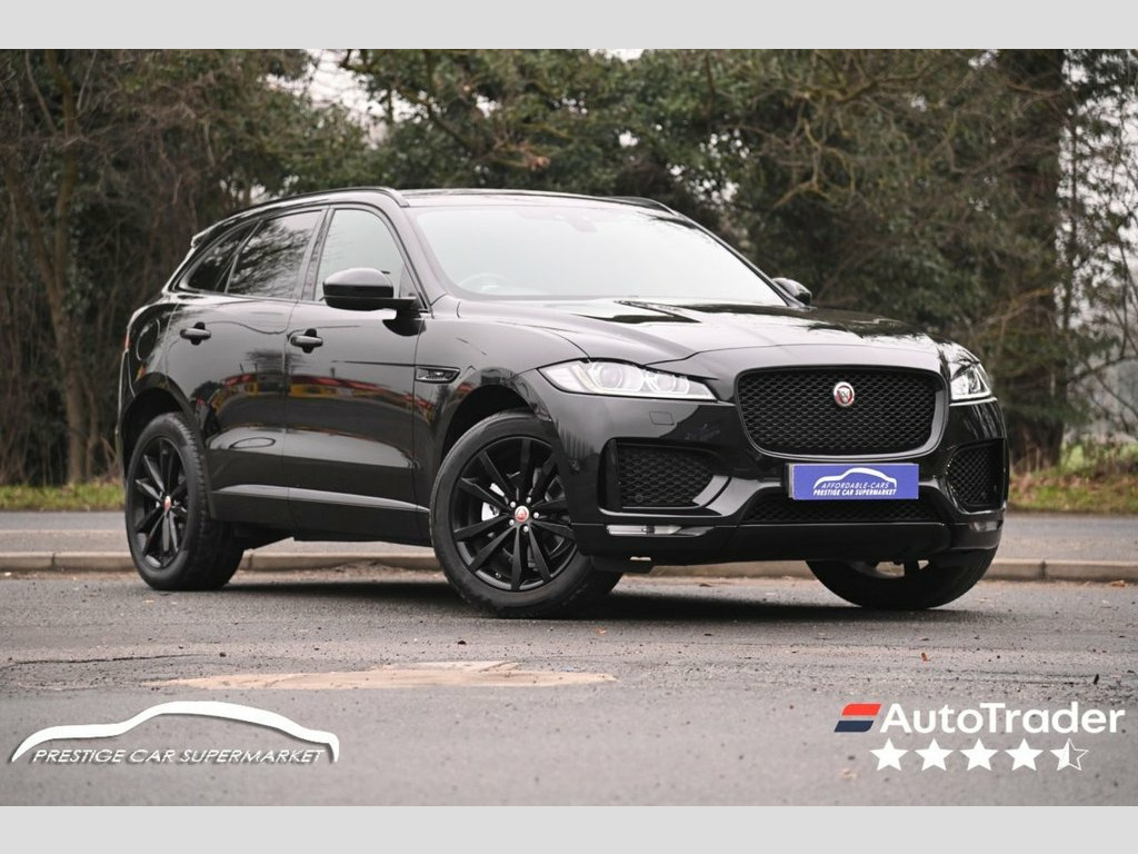 Prestige Car Supermarket in York presents this 2019 Jaguar F-PACE 2.0 D180 Chequered Flag AWD, finished in Santorini Black with ebony perforated grained leather upholstery. Powered by a refined 180 ps diesel engine paired with a smooth automatic gearbox and all-wheel drive, this F-PACE delivers confident performance and excellent comfort. The Chequered Flag specification is showcased by 20in gloss black split-spoke alloy wheels, gloss black exterior detailing, Chequered Flag badging, ebony suedecloth headlining, ambient interior lighting and bright metal pedals. Inside, highlights include 10-way electric front seats with heating, heated steering wheel, dual-zone climate control, interactive driver display and the 10in Touch Pro infotainment system with Navigation Pro, DAB radio, Bluetooth, Apple CarPlay, Android Auto and the Meridian 380W sound system. Practicality and ease of use are enhanced by a powered tailgate, 40-20-40 split folding rear seats, rear camera and front and rear parking aid. Safety and driver assistance features include lane keep assist, traffic sign recognition with adaptive speed limiter, emergency braking, driver condition monitor, cruise control and trailer stability assist. This example is further enhanced with a sliding panoramic roof and privacy glass, completing a highly specified and stylish premium SUV. Perforated Grained Leather - Ebony, Sliding Panoramic Roof, Privacy Glass, Santorini Black, 10-Way Electric Front Seats, 10in Touch Pro, 2-Zone Climate Control, 20d AWD Badge, 20in Alloy Wheels - 5 Split-Spoke Style , 3-Flash Lane Change Indicators, 325mm Front Brakes, 40-20-40 Split Fold Rear Seat, ABS - Anti-locking Braking System, AM-FM Radio, ASPC - All Surface Progress Control, Airbags - Front Side, Airbags - Full Length Side Window Curtai, Ambient Interior Lighting, Android Auto, Apple CarPlay, Approach Illumination, Auto-Dimming Interior Rear View Mirror, Bluetooth Connectivity, Bluetooth Streaming, Body Coloured Door Mirror Caps, Body-Coloured Door Claddings with Gloss , Brake Pad We