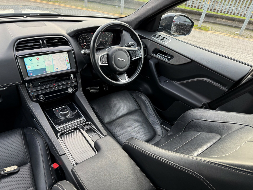 2 KEYS, ULEZ FREE, NEW TIMING CHAIN FITTED, NAVIGATION, BLUETOOTH, PANORAMIC ROOF, LEATHER SEATS, FRESH SERVICE TOTAL 3 SERVICES, MOT FRESH -way electric front seats, 2-zone climate control, 3-flash lane change indicators, 40-20-40 split fold rear seat, ambient interior lighting, auto-dimming interior rear view mirror, bright metal pedals, centre console - side stowage, centre console - storage surround finishers - satin chrome, centre console with armrest, door trim - luxtec, ebony suedecloth headlining, front headrests, heated front seats, heated steering wheel, hook in loadspace, interactive driver display, interior front door handles with separate locking switches, lockable glovebox, luggage tie downs in loadspace, luxtec wrapped instrument panel topper with wrapped binnacle, manually adjustable steering column, meshed aluminium trim finisher, metal loadspace scuff plate, metal treadplates with chequered flag branding, no loadspace storage rails, overhead lighting console, passive front head restraints, powered tailgate - boot lid, premium carpet mats, protect for warranty period, rain sensing windscreen wipers, rear air vents, rear armrest with twin cupholders, rear centre headrest, rear metal treadplates, satin chrome gearshift paddles, satin chrome touchscreen surround, seats - sports, soft grain leather sport steering wheel, steering wheel - multi-function, twin front cupholders with cover, valet mode, variable intermittent wipers, 10in touch pro, am-fm radio, android auto, apple carplay, bluetooth connectivity, bluetooth streaming, cd-dvd player, connect pro, digital audio broadcast - dab - radio, dynamic volume control, incontrol apps, meridian sound system - 380w, navigation pro, power sockets, pro services and wi-fi hotspot, remote premium, touch pro navigation pack with meridian digital sound system - 380w, 20d awd badge, 20in alloy wheels - 5 split-spoke style 5031 with gloss black finish, body coloured door mirror caps, body-coloured door claddings with gloss black finishers, electric windows - front and rear with one-touch open-close and anti-trap, electrically adjustable heated door mirrors, f-pace badge, fixed panoramic roof, front windscreen with non-acoustic layer, gloss black grille with gloss black surround, gloss black roof rails, gloss black side vents with chequered flag badge, gloss black side window surround, glovebox finisher with jaguar script, green tinted glass, heated front windscreen, heated rear window, jaguar script and leaper, jaguar tyre repair system, r-sport rear bumper, rear fog lights, s front bumper, single sided twin tailpipes with 75mm finishers, unpainted brake calipers, 325mm front brakes, abs - anti-locking braking system, aspc - all surface progress control, airbags - front side, airbags - full length side window curtain, dynamic stability control - dsc, eba - emergency brake assist, epb - electronic parking brake, emergency braking, front airbags with passenger seat occupant detector, hill launch assist, isofix rear, lane keep assist, power operated child locks, seat belt reminder, trailer stability assist, approach illumination, front fog lights, headlight power wash, led tail lights, xenon headlights with led signature, brake pad wear indicator, cruise control with speed limiter, driver condition monitor, eco driving style assistant, epas - electric power assisted steering, front and rear parking aid, jaguardrive control, open differential with torque vectoring by braking, outside temperature gauge, rear camera, rotary shifter, speed proportional steering, start up sequence with movement - dials and lighting, traffic sign recognition with adaptive speed limiter, trip computer, tyre pressure monitoring system, voice control
