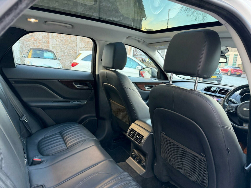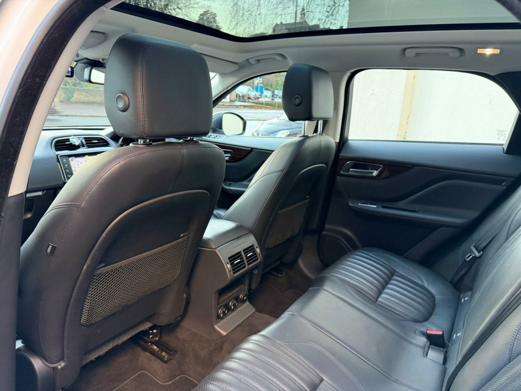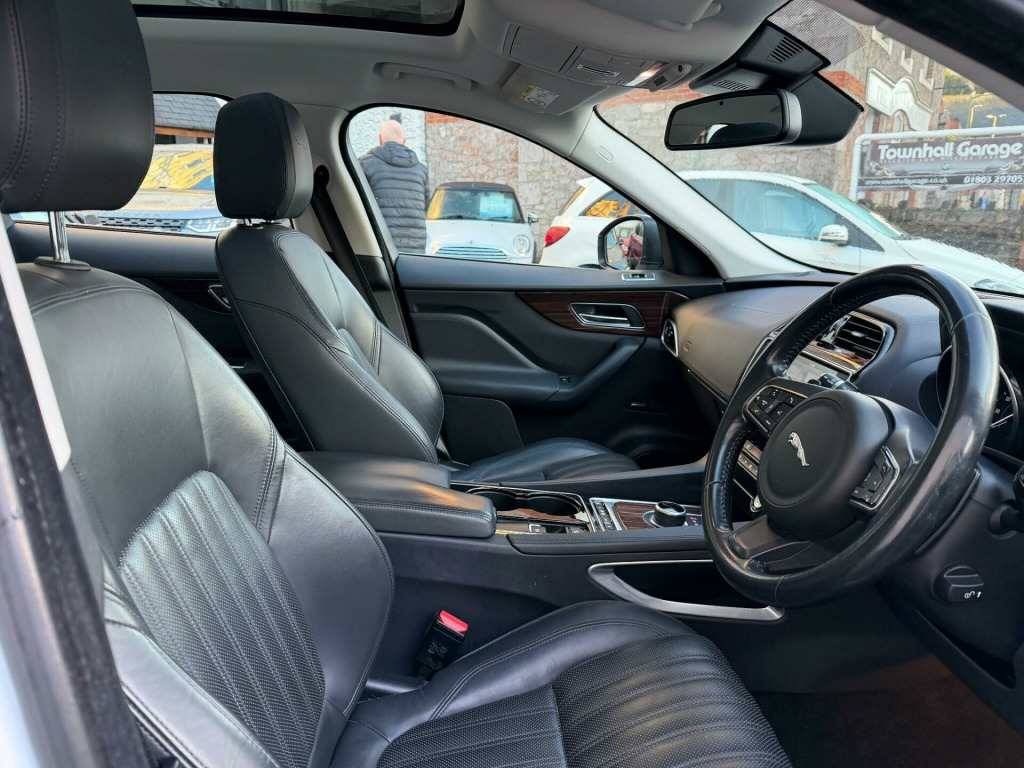 This 2017 Jaguar F PACE D180 Portfolio presents an exceptional opportunity with remarkably low mileage for its age, having covered just 60,000 miles. This Four Wheel Drive model is powered by an efficient 2.0L Diesel engine, meeting Euro 6 emission standards. The Portfolio trim level ensures a top spec premium experience, Full Black Leather Interior, Heated Seats, Stunning Glass Panoramic Roof, enhanced by features such as the Jaguar Smart Key System with Keyless Entry, allowing effortless access. Inside, you will find 2 Zone Climate Control for personalised comfort, and the Meridian Sound System delivering 380W of immersive audio. Practicality is also a key consideration, with a Rear View Camera and Rear Parking Aid making manoeuvring simple, and a generous boot space ready for all your needs.The Jaguar F PACE D180 Portfolio offers a compelling blend of performance and economy, with a notable fuel economy of 53 mpg, indicating its efficiency compared to similar vehicles. Its acceleration from 0 to 60 mph in just 8.2 seconds demonstrates its responsive power. Furthermore, this vehicle is equipped to handle substantial loads, boasting a towing weight of 2400 kg, making it a versatile choice for those who require towing capability.Great Service History. 2 KeysExtended Warranties Can Be Purchased. v power socket - front, 12v power socket - rear - luggage compartment, 12v power socket - row two, 19in alloy wheels - razor twin 7-spoke - silver finish, 2-zone climate control, 3 month trial data plan, 3-flash lane change indicators, 380 watts, 40-20-40 split fold rear seat, abs - anti-locking braking system, aeb - autonomous emergency braking, am-fm radio, aspc - all surface progress control, airbags - driver, airbags - front side, airbags - full length side curtain, airbags - passenger, analogue dials with 5in full colour tft display, approach illumination - automatic via remote, auto-dimming interior rear view mirror, automatic headlight on, aux-in - 3.5mm, base front bumper, base rear bumper, bluetooth audio streaming, bluetooth telephone connectivity, bootlid - powertrain badging - 20d awd, bootlid jaguar leaper and wordmarque, bootlid nameplate badge, brake pad wear indicator, capacitive touchscreen, carpet mats - premium - jet, centre console - side stowage, centre console - storage surround finishers - satin chrome, cruise control with adaptive speed limiter, dab radio + and dmb, daytime running lights - led, door armrest - windsor, door mirrors - body coloured, door mirrors - power folding with auto-dimming-signature approach lamps and blacked side repeaters, door trim - windsor, dynamic route guidance, dynamic stability control - dsc, dynamic volume control, eba - emergency brake assist, eco data, epb - electric parking brake, electric windows - front and rear with one-touch open-close and anti-trap, fold flat 6 degrees - row 2 seats, follow me home lighting, front armrest with storage compartment, front fog lights, front headrests - jaguar leaper embossing, front parking aid, gloss figured ebony veneer, glove compartment lockable, glovebox finisher with jaguar wordmark, grained black door claddings, hazard lights under heavy braking, head restraint - rear centre, headlight power wash, headlights - self leveling, headlights - xenon, headlining - morzine - light oyster, headrest - manual adjustable, heat insulating glass - green all-round, heated front seats, heated front windscreen, heated washer jets, hill launch assist, isofix rear, incontrol - remote esstentials, incontrol apps, incontrol protect, incontrol remote premium, incontrol touch navigation - sd, incontrol wifi, instrument panel topper - cuir grain wrapped, instrument panel upper fascia - jet, interior front door handles with separate locking switches, interior mood lighting, jaguar sequential shift, jaguar smart key system with keyless entry, jaguar smart key system with keyless start, jaguar tyre repair system, jaguardrive control with dynamic - normal - eco and winter, jaguarsense - overhead light console, jaguarvoice, led tail lights, lane departure warning, loadbay - premium luggage tie downs, meridian sound system - 380w, metal treadplates with jaguar script, optimised assistance call, outside temperature gauge, panoramic roof, passive front head restraints - whiplash protection, perimeter alarm, power operated child locks, power steering - speed sensitive, powered tailgate, radiator grille - gloss black insert with bright chrome surround, rain sensing windscreen wipers, rear armrest with cupholder, rear cup holders in armrest, rear parking aid, rear view camera, reversible boot floor - carpet-rubber, roof rails - satin chrome, row 2 air vents, sos emergency call with automatic collision detection, satin chrome frame - touchscreen, seat - cushion height - electric, seat - cushion tilt - electric, seat - squab recline - electric, seat belt reminder, seat occupant detector - passenger, seats - front - back map pockets, seats - front 10x10 way - electric adjustment, seats - front height adjustable - electric, seats - luxury, shopping bag hook in trunk, side fender vents - bright chrome, side window finisher - bright chrome, single sided twin tailpipes with 75mm finishers, speakers x10, start up sequence, steering column - reach and rake, steering wheel - black paddles with illumination, steering wheel - multi-function, steering wheel - softgrain leather, subwoofer, sunglasses holder in overhead console, text to speech, torque vectoring by braking - tvbb, traction control, traffic sign recognition with intelligent speed limiter, trailer stability control, trip computer, twin front cupholders, tyre pressure monitoring system, usb socket - row two - x2, valet mode, valet mode - lockable trunk - stowage - glove box, variable intermittent wipers, vehicle immobiliser, windscreen - heated with timer