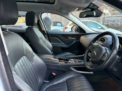 This 2017 Jaguar F PACE D180 Portfolio presents an exceptional opportunity with remarkably low mileage for its age, having covered just 60,000 miles. This Four Wheel Drive model is powered by an efficient 2.0L Diesel engine, meeting Euro 6 emission standards. The Portfolio trim level ensures a top spec premium experience, Full Black Leather Interior, Heated Seats, Stunning Glass Panoramic Roof, enhanced by features such as the Jaguar Smart Key System with Keyless Entry, allowing effortless access. Inside, you will find 2 Zone Climate Control for personalised comfort, and the Meridian Sound System delivering 380W of immersive audio. Practicality is also a key consideration, with a Rear View Camera and Rear Parking Aid making manoeuvring simple, and a generous boot space ready for all your needs.The Jaguar F PACE D180 Portfolio offers a compelling blend of performance and economy, with a notable fuel economy of 53 mpg, indicating its efficiency compared to similar vehicles. Its acceleration from 0 to 60 mph in just 8.2 seconds demonstrates its responsive power. Furthermore, this vehicle is equipped to handle substantial loads, boasting a towing weight of 2400 kg, making it a versatile choice for those who require towing capability.Service History. 2 Keys v power socket - front, 12v power socket - rear - luggage compartment, 12v power socket - row two, 19in alloy wheels - razor twin 7-spoke - silver finish, 2-zone climate control, 3 month trial data plan, 3-flash lane change indicators, 380 watts, 40-20-40 split fold rear seat, abs - anti-locking braking system, aeb - autonomous emergency braking, am-fm radio, aspc - all surface progress control, airbags - driver, airbags - front side, airbags - full length side curtain, airbags - passenger, analogue dials with 5in full colour tft display, approach illumination - automatic via remote, auto-dimming interior rear view mirror, automatic headlight on, aux-in - 3.5mm, base front bumper, base rear bumper, bluetooth audio streaming, bluetooth telephone connectivity, bootlid - powertrain badging - 20d awd, bootlid jaguar leaper and wordmarque, bootlid nameplate badge, brake pad wear indicator, capacitive touchscreen, carpet mats - premium - jet, centre console - side stowage, centre console - storage surround finishers - satin chrome, cruise control with adaptive speed limiter, dab radio + and dmb, daytime running lights - led, door armrest - windsor, door mirrors - body coloured, door mirrors - power folding with auto-dimming-signature approach lamps and blacked side repeaters, door trim - windsor, dynamic route guidance, dynamic stability control - dsc, dynamic volume control, eba - emergency brake assist, eco data, epb - electric parking brake, electric windows - front and rear with one-touch open-close and anti-trap, fold flat 6 degrees - row 2 seats, follow me home lighting, front armrest with storage compartment, front fog lights, front headrests - jaguar leaper embossing, front parking aid, gloss figured ebony veneer, glove compartment lockable, glovebox finisher with jaguar wordmark, grained black door claddings, hazard lights under heavy braking, head restraint - rear centre, headlight power wash, headlights - self leveling, headlights - xenon, headlining - morzine - light oyster, headrest - manual adjustable, heat insulating glass - green all-round, heated front seats, heated front windscreen, heated washer jets, hill launch assist, isofix rear, incontrol - remote esstentials, incontrol apps, incontrol protect, incontrol remote premium, incontrol touch navigation - sd, incontrol wifi, instrument panel topper - cuir grain wrapped, instrument panel upper fascia - jet, interior front door handles with separate locking switches, interior mood lighting, jaguar sequential shift, jaguar smart key system with keyless entry, jaguar smart key system with keyless start, jaguar tyre repair system, jaguardrive control with dynamic - normal - eco and winter, jaguarsense - overhead light console, jaguarvoice, led tail lights, lane departure warning, loadbay - premium luggage tie downs, meridian sound system - 380w, metal treadplates with jaguar script, optimised assistance call, outside temperature gauge, panoramic roof, passive front head restraints - whiplash protection, perimeter alarm, power operated child locks, power steering - speed sensitive, powered tailgate, radiator grille - gloss black insert with bright chrome surround, rain sensing windscreen wipers, rear armrest with cupholder, rear cup holders in armrest, rear parking aid, rear view camera, reversible boot floor - carpet-rubber, roof rails - satin chrome, row 2 air vents, sos emergency call with automatic collision detection, satin chrome frame - touchscreen, seat - cushion height - electric, seat - cushion tilt - electric, seat - squab recline - electric, seat belt reminder, seat occupant detector - passenger, seats - front - back map pockets, seats - front 10x10 way - electric adjustment, seats - front height adjustable - electric, seats - luxury, shopping bag hook in trunk, side fender vents - bright chrome, side window finisher - bright chrome, single sided twin tailpipes with 75mm finishers, speakers x10, start up sequence, steering column - reach and rake, steering wheel - black paddles with illumination, steering wheel - multi-function, steering wheel - softgrain leather, subwoofer, sunglasses holder in overhead console, text to speech, torque vectoring by braking - tvbb, traction control, traffic sign recognition with intelligent speed limiter, trailer stability control, trip computer, twin front cupholders, tyre pressure monitoring system, usb socket - row two - x2, valet mode, valet mode - lockable trunk - stowage - glove box, variable intermittent wipers, vehicle immobiliser, windscreen - heated with timer
