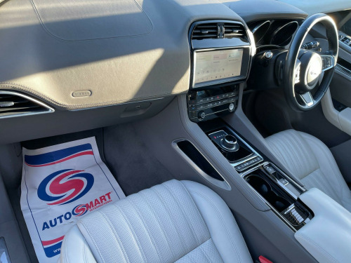 This 2019 Jaguar F-PACE D180 Portfolio offers a refined driving experience with its powerful 2.0L diesel engine and capable four wheel drive system. As a Euro 6 compliant vehicle, it meets stringent emission standards. The Portfolio trim level ensures a premium feel, complemented by desirable features such as 20 inch split spoke alloy wheels and a luxurious Meridian digital sound system. For added comfort, it includes heated front and rear seats and a sophisticated 4 zone climate control system, allowing everyone to find their ideal temperature.The F-PACE D180 Portfolio excels with its impressive practicality, boasting a large boot space perfect for luggage or shopping. Its smooth acceleration, reaching 0-60mph in just 8.4 seconds, demonstrates its responsive performance. The inclusion of a sliding panoramic roof enhances the sense of space and light within the cabin, setting it apart from many other vehicles in its class. Furthermore, its substantial towing weight of 2400 kg makes it a versatile choice for those needing to tow trailers or caravans.12-24 Months AA Warranty Upgrade Available. All Cars, Vans Come with 12 Months Mot Service and Safety checked.. 10-Way Electric Front Seats, 10in Touch Pro, 19in Alloy Wheels - 7 Split-Spoke Style 7012, 2-Zone Climate Control, 20d AWD Badge, 3-Flash Lane Change Indicators, 325mm Front Brakes, 40-20-40 Split Fold Rear Seat, ABS - Anti-locking Braking System, AM-FM Radio, ASPC - All Surface Progress Control, Airbags - Front Side, Airbags - Full Length Side Window Curtain, Ambient Interior Lighting, Analogue Dials with Central TFT Display, Approach Illumination, Auto-Dimming - Power Fold - Heated Door Mirrors with Approach Lights, Auto-Dimming Interior Rear View Mirror, Bluetooth Connectivity, Bluetooth Streaming, Body-Coloured Rear Bumper with Grained Black Valance, Brake Pad Wear Indicator, Bright Metal Pedals, Centre Console - Side Stowage, Centre Console - Storage Surround Finishers - Satin Chrome, Centre Console with Armrest, Chrome Side Vents, Chrome Side Window Surround, Connect Pro, Cruise Control with Speed Limiter, Digital Audio Broadcast - DAB - Radio, Door Trim - Luxtec, Driver Condition Monitor, Dynamic Stability Control - DSC, Dynamic Volume Control, EBA - Emergency Brake Assist, ECO Driving Style Assistant, EPAS - Electric Power Assisted Steering, EPB - Electronic Parking Brake, Electric Windows - Front and Rear with One-Touch Open-Close and Anti-Trap, Emergency Braking, Etched Aluminium Trim Finisher, F-PACE Badge, Fixed Panoramic Roof, Front Airbags with Passenger Seat Occupant Detector, Front Bumper, Front Fog Lights, Front Headrests - Jaguar Leaper Embossing, Front Windscreen with Non-acoustic Layer, Front and Rear Parking Aid, Glovebox Finisher with Jaguar Script, Grained Black Door Claddings, Grained Black Grille with Chrome Surround, Green Tinted Glass, Headlight Power Wash, Headlining - Morzine - Light Oyster, Heated Front Seats, Heated Front Windscreen, Heated Rear Window, Hill Launch Assist, Hook in Loadspace, ISOFIX Rear, Illuminated Metal Treadplates with Brand-Name Script, InControl Apps, Interior Front Door Handles with Separate Locking Switches, Jaguar Script and Leaper, Jaguar Tyre Repair System, JaguarDrive Control, Keyless Entry, LED Tail Lights, Lane Keep Assist, Light Oyster Suedecloth Headlining, Loadbay - Luggage Tie Downs, Lockable Glovebox, Luxtec Wrapped Instrument Panel Topper with Wrapped Binnacle, Manually Adjustable Steering Column, Meridian Sound System - 380W, Metal Loadspace Scuff Plate, Navigation Pro, No Loadspace Storage Rails, Open Differential with Torque Vectoring by Braking, Outside Temperature Gauge, Overhead Lighting Console, Passive Front Head Restraints, Power Operated Child Locks, Power Sockets, Powered Tailgate - Boot Lid, Premium Carpet Mats, Pro Services and Wi-Fi Hotspot, Protect for Warranty Period, Rain Sensing Windscreen Wipers, Rear Air Vents, Rear Armrest with Twin Cupholders, Rear Camera, Rear Centre Headrest, Rear Fog Lights, Rear Metal Treadplates, Remote Premium for Warranty Period, Rotary Shifter, Satin Chrome Touchscreen Surround, Seat Belt Reminder, Seats - Luxury, Silver Roof Rails, Soft Grain Leather Sport Steering Wheel, Speed Proportional Steering, Start Up Sequence with Movement - Dials and Lighting, Steering Wheel - Black Paddles, Steering Wheel - Multi-Function, Torque Vectoring, Traffic Sign Recognition with Adaptive Speed Limiter, Trailer Stability Assist, Trip Computer, Twin Front Cupholders with Cover, Tyre Pressure Monitoring System, Unpainted Brake Calipers, Valet Mode, Variable Intermittent Wipers, Voice Control, Xenon Headlights with LED Signature, Sliding Panoramic Roof, Solar Attenuating Windscreen, 20in Alloy Wheels - 10 Split-Spoke Style 1019, 4-Zone Climate Control, 4-Way Electric Lumbar Adjust, Air Quality Sensor, Heated Front and Rear Seats, Perforated Windsor Leather - Light Oyster-Light Oyster, Touch Pro Navigation Pack with Meridian Digital Sound System - 380w. Full service history
