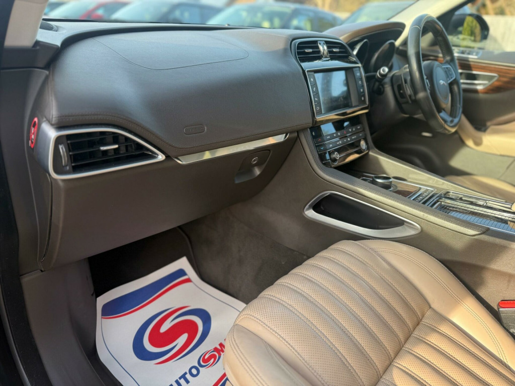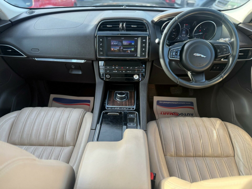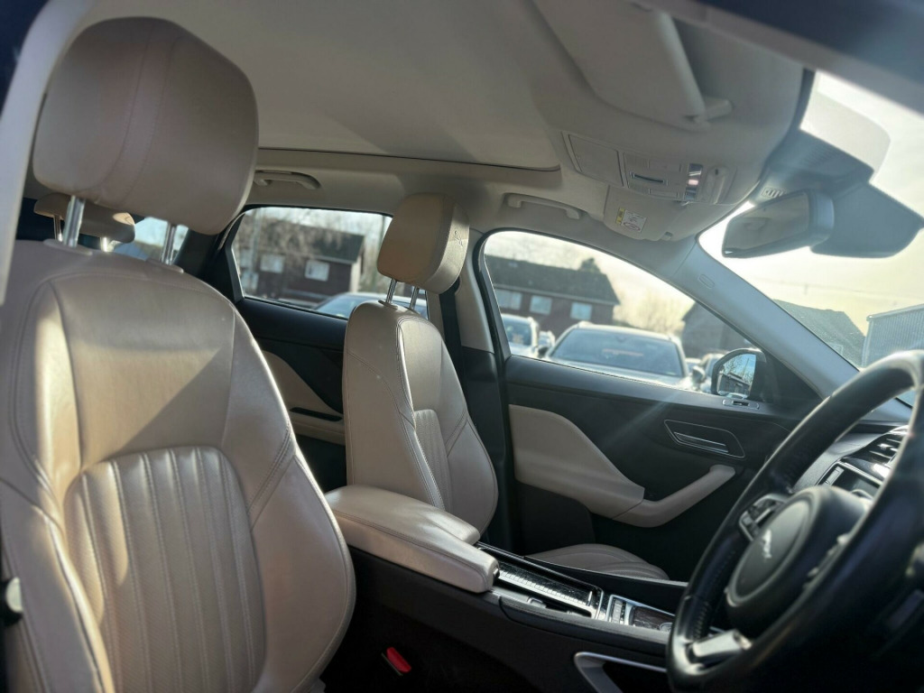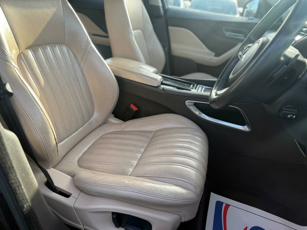 Boasting a clear vehicle history and having had only two owners, this 2017 Jaguar F-PACE D180 Portfolio presents a compelling proposition. This four wheel drive model is equipped with a 2.0 litre diesel engine, meeting Euro 6 emissions standards. The Portfolio trim level ensures a refined experience, enhanced by features such as a rear view camera with parking assistance, Jaguar's smart key system for keyless entry, and a Meridian sound system delivering 380W of audio. Comfort is further assured with 2 zone climate control and heated front seats, making every journey a pleasure.This Jaguar F-PACE offers impressive performance, achieving 0 to 60 miles per hour in just 8.2 seconds, a figure that demonstrates its capability compared to many similar vehicles. Its fuel economy is also a significant advantage, returning an excellent 53 miles per gallon, which is noteworthy for an all wheel drive SUV. Furthermore, the generous boot space provides ample room for luggage or shopping, adding to its practicality. With a towing weight of 2400 kg, this F-PACE is also well suited for those needing to tow. 12V Power Socket - Front12V Power Socket - Rear - Luggage Compartment12V Power Socket - Row Two19in Alloy Wheels - Razor Twin 7-Spoke - Silver Finish2-Zone Climate Control3 Month Trial Data Plan3-Flash Lane Change Indicators380 Watts40-20-40 Split Fold Rear SeatABS - Anti-locking Braking SystemAEB - Autonomous Emergency BrakingAM-FM RadioASPC - All Surface Progress ControlAirbags - DriverAirbags - Front SideAirbags - Full Length Side CurtainAirbags - PassengerAnalogue Dials with 5in Full Colour TFT DisplayApproach Illumination - Automatic via RemoteAuto-Dimming Interior Rear View MirrorAutomatic Headlight OnAux-In - 3.5mmBase Front BumperBase Rear BumperBluetooth Audio StreamingBluetooth Telephone ConnectivityBootlid - Powertrain Badging - 20d AWDBootlid Jaguar Leaper and WordmarqueBootlid Nameplate BadgeBrake Pad Wear IndicatorCapacitive TouchscreenCarpet Mats - Premium - JetCentre Console - Side StowageCentre Console - Storage Surround v power socket - front, 12v power socket - rear - luggage compartment, 12v power socket - row two, 19in alloy wheels - razor twin 7-spoke - silver finish, 2-zone climate control, 3 month trial data plan, 3-flash lane change indicators, 380 watts, 40-20-40 split fold rear seat, abs - anti-locking braking system, aeb - autonomous emergency braking, am-fm radio, aspc - all surface progress control, airbags - driver, airbags - front side, airbags - full length side curtain, airbags - passenger, analogue dials with 5in full colour tft display, approach illumination - automatic via remote, auto-dimming interior rear view mirror, automatic headlight on, aux-in - 3.5mm, base front bumper, base rear bumper, bluetooth audio streaming, bluetooth telephone connectivity, bootlid - powertrain badging - 20d awd, bootlid jaguar leaper and wordmarque, bootlid nameplate badge, brake pad wear indicator, capacitive touchscreen, carpet mats - premium - jet, centre console - side stowage, centre console - storage surround finishers - satin chrome, cruise control with adaptive speed limiter, dab radio + and dmb, daytime running lights - led, door armrest - windsor, door mirrors - body coloured, door mirrors - power folding with auto-dimming-signature approach lamps and blacked side repeaters, door trim - windsor, dynamic route guidance, dynamic stability control - dsc, dynamic volume control, eba - emergency brake assist, eco data, epb - electric parking brake, electric windows - front and rear with one-touch open-close and anti-trap, fold flat 6 degrees - row 2 seats, follow me home lighting, front armrest with storage compartment, front fog lights, front headrests - jaguar leaper embossing, front parking aid, gloss figured ebony veneer, glove compartment lockable, glovebox finisher with jaguar wordmark, grained black door claddings, hazard lights under heavy braking, head restraint - rear centre, headlight power wash, headlights - self leveling, headlights - xenon, headlining - morzine - light oyster, headrest - manual adjustable, heat insulating glass - green all-round, heated front seats, heated front windscreen, heated washer jets, hill launch assist, isofix rear, incontrol - remote esstentials, incontrol apps, incontrol protect, incontrol remote premium, incontrol touch navigation - sd, incontrol wifi, instrument panel topper - cuir grain wrapped, instrument panel upper fascia - jet, interior front door handles with separate locking switches, interior mood lighting, jaguar sequential shift, jaguar smart key system with keyless entry, jaguar smart key system with keyless start, jaguar tyre repair system, jaguardrive control with dynamic - normal - eco and winter, jaguarsense - overhead light console, jaguarvoice, led tail lights, lane departure warning, loadbay - premium luggage tie downs, meridian sound system - 380w, metal treadplates with jaguar script, optimised assistance call, outside temperature gauge, panoramic roof, passive front head restraints - whiplash protection, perimeter alarm, power operated child locks, power steering - speed sensitive, powered tailgate, radiator grille - gloss black insert with bright chrome surround, rain sensing windscreen wipers, rear armrest with cupholder, rear cup holders in armrest, rear parking aid, rear view camera, reversible boot floor - carpet-rubber, roof rails - satin chrome, row 2 air vents, sos emergency call with automatic collision detection, satin chrome frame - touchscreen, seat - cushion height - electric, seat - cushion tilt - electric, seat - squab recline - electric, seat belt reminder, seat occupant detector - passenger, seats - front - back map pockets, seats - front 10x10 way - electric adjustment, seats - front height adjustable - electric, seats - luxury, shopping bag hook in trunk, side fender vents - bright chrome, side window finisher - bright chrome, single sided twin tailpipes with 75mm finishers, speakers x10, star