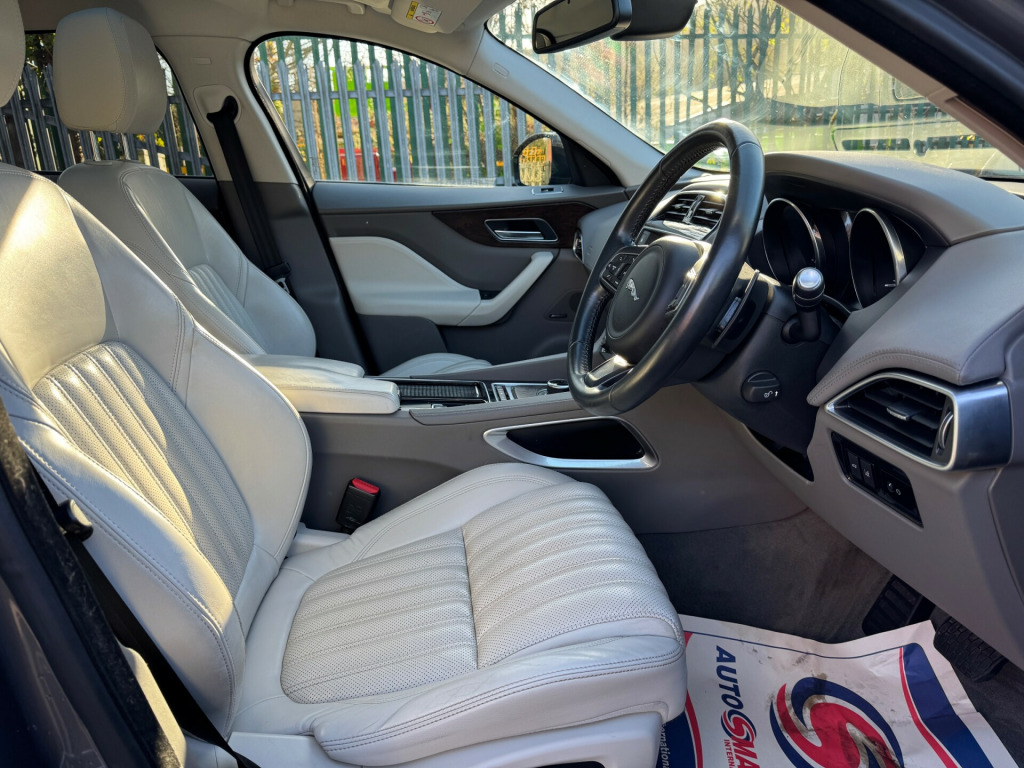 This 2016 Jaguar F-Pace 2.0 D180 Portfolio SUV has covered 71136 miles and is powered by a Diesel engine with 180 ps. The 5-door, 5-seat SUV is ULEZ compliant and comes with an automatic AWD transmission. It includes features such as 12V power sockets in the front, rear, and row two, as well as a 3-month trial data plan and a 380-watt sound system. With its spacious interior and advanced technology, this Jaguar F-Pace offers a luxurious driving experience while being practical for everyday use. Ideal for those in need of a reliable and stylish vehicle that delivers both comfort and performance.UK delivery available.Part exchange welcome.AA extended warranty partner.AA approved dealership.Trading standards approved dealership.Autotrader highly rated dealership. v power socket - front, 12v power socket - rear - luggage compartment, 12v power socket - row two, 3 month trial data plan, 380 watts, am-fm radio, analogue dials with 5in full colour tft display, aux-in - 3.5mm, bluetooth audio streaming, bluetooth telephone connectivity, capacitive touchscreen, dab radio + and dmb, dynamic route guidance, dynamic volume control, incontrol - remote esstentials, incontrol apps, incontrol protect, incontrol remote premium, incontrol touch navigation - sd, incontrol wifi, meridian sound system - 380w, speakers x10, start up sequence, subwoofer, text to speech, usb socket - row two - x2, 19in alloy wheels - razor twin 7-spoke - silver finish, base front bumper, base rear bumper, bootlid - powertrain badging - 20d awd, bootlid jaguar leaper and wordmarque, bootlid nameplate badge, door mirrors - body coloured, door mirrors - power folding with auto-dimming-signature approach lamps and blacked side repeaters, electric windows - front and rear with one-touch open-close and anti-trap, grained black door claddings, heat insulating glass - green all-round, heated front windscreen, heated washer jets, jaguar tyre repair system, panoramic roof, radiator grille - gloss black insert with bright chrome surround, roof rails - satin chrome, side fender vents - bright chrome, side window finisher - bright chrome, single sided twin tailpipes with 75mm finishers, windscreen - heated with timer, 2-zone climate control, 3-flash lane change indicators, 40-20-40 split fold rear seat, auto-dimming interior rear view mirror, carpet mats - premium - jet, centre console - side stowage, centre console - storage surround finishers - satin chrome, door armrest - windsor, door trim - windsor, fold flat 6 degrees - row 2 seats, front armrest with storage compartment, front headrests - jaguar leaper embossing, gloss figured ebony veneer, glove compartment lockable, glovebox finisher with jaguar wordmark, head restraint - rear centre, headlining - morzine - light oyster, headrest - manual adjustable, heated front seats, instrument panel topper - cuir grain wrapped, instrument panel upper fascia - jet, interior front door handles with separate locking switches, interior mood lighting, jaguar smart key system with keyless start, jaguarsense - overhead light console, loadbay - premium luggage tie downs, metal treadplates with jaguar script, passive front head restraints - whiplash protection, powered tailgate, rain sensing windscreen wipers, rear armrest with cupholder, rear cup holders in armrest, reversible boot floor - carpet-rubber, row 2 air vents, satin chrome frame - touchscreen, seat - cushion height - electric, seat - cushion tilt - electric, seat - squab recline - electric, seat occupant detector - passenger, seats - front - back map pockets, seats - front 10x10 way - electric adjustment, seats - front height adjustable - electric, seats - luxury, shopping bag hook in trunk, steering column - reach and rake, steering wheel - black paddles with illumination, steering wheel - multi-function, steering wheel - softgrain leather, sunglasses holder in overhead console, twin front cupholders, valet mode, valet mode - lockable trunk - stowage - glove box, variable intermittent wipers, abs - anti-locking braking system, aeb - autonomous emergency braking, aspc - all surface progress control, airbags - driver, airbags - front side, airbags - full length side curtain, airbags - passenger, dynamic stability control - dsc, eba - emergency brake assist, epb - electric parking brake, hazard lights under heavy braking, hill launch assist, isofix rear, jaguar smart key system with keyless entry, optimised assistance call, perimeter alarm, power operated child locks, sos emergency call with automatic collision detection, seat belt reminder, traction control, trailer stability control, vehicle immobiliser, approach illumination - automatic via remote, automatic headlight on, daytime running lights - led, follow me home lighting, front fog lights, headlight power wash, headlights - self leveling, headlights - xenon, led tail lights, brake pad wear indicator, cruise control with adaptive speed limiter, eco data, front parking aid, jaguar sequential shift, jaguardrive control with dynamic - normal - eco and winter, jaguarvoice, lane departure warning, outside temperature gauge, power steering - speed sensitive, rear parking aid, rear view camera, torque vectoring by braking - tvbb, traffic sign recognition with intelligent speed limiter, trip computer, tyre pressure monitoring system