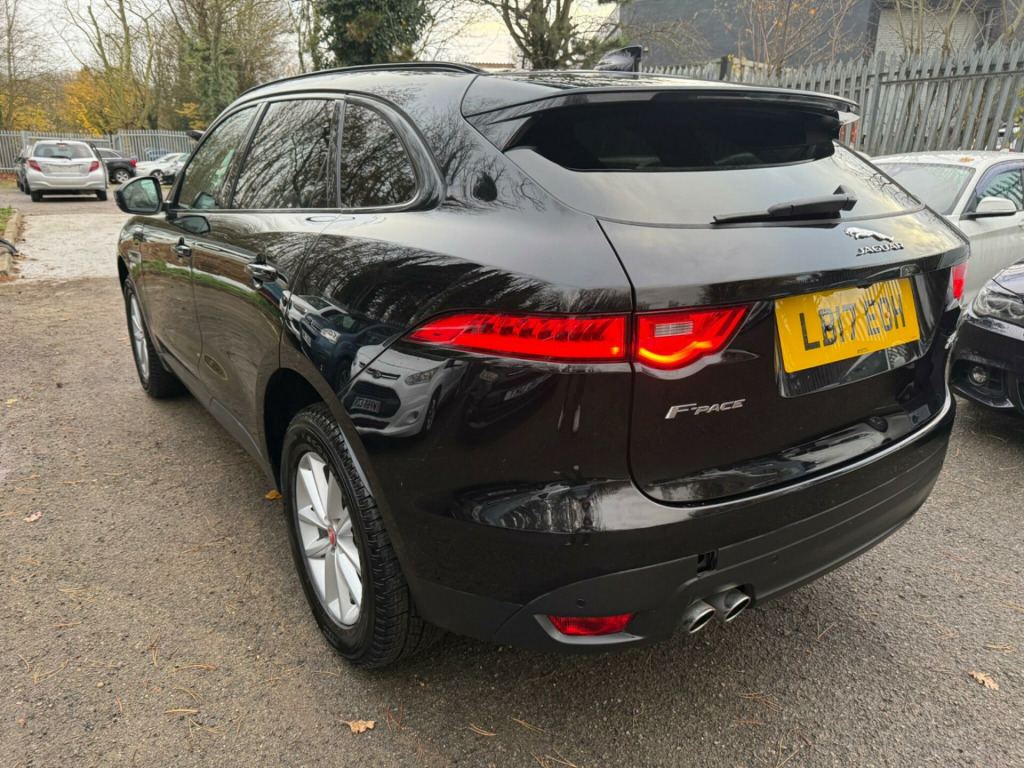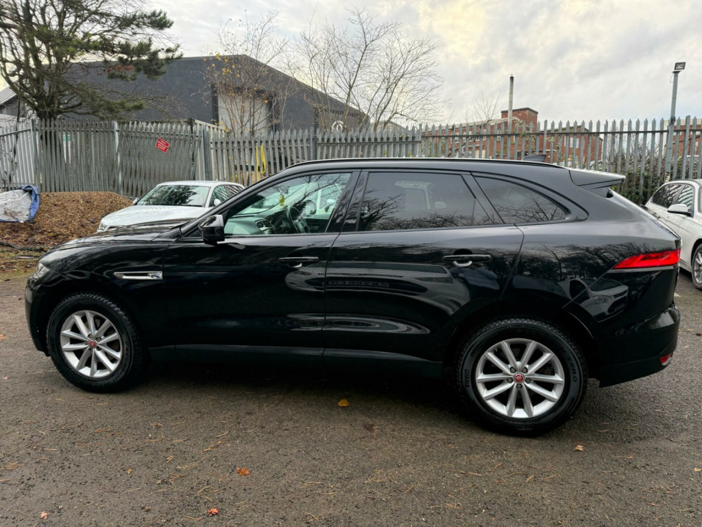 BLACK, SERVICE HISTORY, FINANCE AVAILABLE, NAVIGATION SYSTEM , PARKING CAMERA, LEATHER AND HEATED SEATS, SPARE KEY, PRIVACY GLASS, START/STOP, CRUISE CONTROL,ULEZ COMPLIANT SUPERB DRIVE, VERY ECONOMICAL, ALLOY WHEELS, CLIMATE CONTROL, VERY WELL LOOKED AFTER, VERY CLEAN IN AND OUTThis 2017 Jaguar F-PACE D180 Prestige boasts a clear vehicle history check and an MOT valid until October 2026, offering peace of mind for its next owner. This stylish SUV features a powerful yet efficient 2.0L Euro 6 diesel engine paired with a Four Wheel Drive system, ensuring confident handling in all conditions. The Prestige trim level includes desirable features such as 2 Zone Climate Control, automatic headlights, heated front seats for those colder mornings, front parking aid to assist with manoeuvring, and Bluetooth telephone connectivity for seamless communication on the go.Experience impressive performance with an acceleration of 0-60mph in just 8.2 seconds, demonstrating its capability. This F-PACE also offers excellent fuel economy, achieving a highlight of 53 mpg, making it a more economical choice compared to similar vehicles. Furthermore, you will appreciate the generous boot space, perfect for accommodating luggage or shopping. With a substantial towing weight of 2400 kg, this Jaguar F-PACE is a versatile and practical option for a wide range of needs.. 12V Power Socket - Front, 12V Power Socket - Rear - Luggage Compartment, 12V Power Socket - Row Two, 18in Alloy Wheels - Vortex 10-Spoke - Silver Finish, 2-Zone Climate Control, 3 Month Trial Data Plan, 3-Flash Lane Change Indicators, 40-20-40 Split Fold Rear Seat, 80 Watt, ABS - Anti-locking Braking System, AEB - Autonomous Emergency Braking, AM-FM Radio, ASPC - All Surface Progress Control, Airbags - Driver, Airbags - Front Side, Airbags - Full Length Side Curtain, Airbags - Passenger, Analogue Dials with 5in Full Colour TFT Display, Approach Illumination - Automatic via Remote, Auto-Dimming Interior Rear View Mirror, Automatic Headlight On, Aux-In - 3.5mm, Base Front Bumper, Base Rear Bumper, Bluetooth Audio Streaming, Bluetooth Telephone Connectivity, Bootlid - Powertrain Badging - 20d AWD, Bootlid Jaguar Leaper and Wordmarque, Bootlid Nameplate Badge, Brake Pad Wear Indicator, Capacitive Touchscreen, Carpet Mats - Jet, Centre Console - Side Stowage, Centre Console - Storage Surround Finishers - Colour Coded, Cruise Control with Adaptive Speed Limiter, DAB Radio + and DMB, DRL - Daytime Running Lights, Door Mirrors - Body Coloured, Door Mirrors - Electric Adjustment-Heated with Blacked Side Repeaters, Door Trim - Luxtec, Dynamic Route Guidance, Dynamic Stability Control - DSC, Dynamic Volume Control, EBA - Emergency Brake Assist, ECO Data, EPB - Electric Parking Brake, Electric Windows - Front and Rear with One-Touch Open-Close and Anti-Trap, Fold Flat 6 Degrees - Row 2 Seats, Follow Me Home Lighting, Front Armrest with Storage Compartment, Front Fog Lights, Front Parking Aid, Gloss Black Veneer, Glove Compartment Lockable, Glovebox Finisher with Jaguar Wordmark, Grained Black Door Claddings, Hazard Lights Under Heavy Braking, Head Restraint - Rear Centre, Headlights - Projector Halogen, Headlining - Morzine - Light Oyster, Headrest - Manual Adjustable, Heat Insulating Glass - Green All-round, Heated Front Seats, Hill Launch Assist, ISOFIX Rear, InControl - Remote Esstentials, InControl Apps, InControl Protect, InControl Remote Premium, InControl Touch Navigation - SD, InControl WiFi, Instrument Panel Topper - Grained, Instrument Panel Upper Fascia - Jet, Interior Front Door Handles with Separate Locking Switches, Interior Mood Lighting, Jaguar Sequential Shift, Jaguar Smart Key System with Keyless Start, Jaguar Sound System - 180W, Jaguar Tyre Repair System, JaguarDrive Control with Dynamic - Normal - ECO and Winter, JaguarSense - Overhead Light Console, JaguarVoice, LED Tail Lights, Lane Departure Warning, Loadbay - Premium Luggage Tie Downs, Metal Treadplates with Jaguar Script, Optimised Assistance Call, Outside Temperature Gauge, Passive Front Head Restraints - Whiplash Protection, Perimeter Alarm, Power Operated Child Locks, Power Steering - Speed Sensitive, Powered Tailgate, Radiator Grille - Grained Black with Bright Chrome Surround, Rain Sensing Windscreen Wipers, Rear Armrest with Cupholder, Rear Cup Holders in Armrest, Rear Parking Aid, Remote Control Central Locking, Reversible Boot Floor - Carpet-Rubber, Roof Rails - Satin Chrome, Row 2 Air Vents, SOS Emergency Call with Automatic Collision Detection, Satin Chrome Frame - Touchscreen, Seat - Cushion Height - Manual, Seat - Squab Recline - Manual, Seat Belt Reminder, Seat Occupant Detector - Passenger, Seats - Front - Back Map Pockets, Seats - Front 8x8 Way Manual Adjustment, Seats - Front Height Adjustable - Manual, Shopping Bag Hook in Trunk, Side Fender Vents - Bright Chrome, Side Window Finisher - Bright Chrome, Single Sided Twin Tailpipes with 75mm Finishers, Speakers x6, Start Up Sequence, Steering Column - Reach and Rake, Steering Wheel - Black Paddles with Illumination, Steering Wheel - Multi-Function, Steering Wheel - Softgrain Leather, Sunglasses Holder in Overhead Console, Text To Speech, Torque Vectoring by Braking - TVBB, Traction Control, Traffic Sign Recognition with Intelligent Speed Limiter, Trailer Stability Control, Trip Computer, Twin Front.