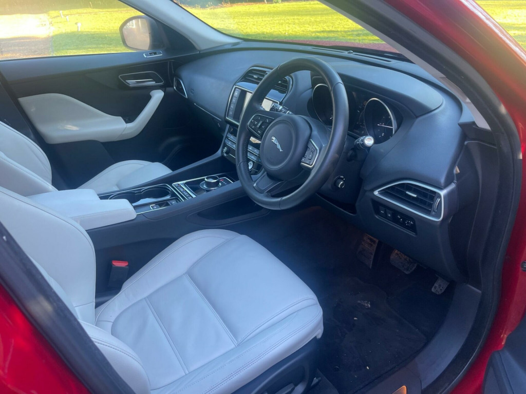 An outstanding example Main Dealer Service History. ONE OWNER. Metallic Italian Racing Red with Oyster cream Leather heated seats with electric adjustment and memory settings, Climate control, Folding Mirrors Rear Camera, Sliding Pan Roof, SAT NAV, Bluetooth, DAB, Cruise control etc. This 2016 Jaguar F-PACE D180 Prestige offers exceptional provenance, having been owned by just one individual and boasting a low mileage of 75,000 miles for its age. This Four Wheel Drive model is equipped with a 2.0L Diesel Euro 6 engine, providing a strong balance of performance and efficiency. Notable features include a sliding panoramic roof with an opening sunroof, electric heated and power folding door mirrors with memory function, and Xenon headlights for enhanced visibility. Inside, the Prestige trim offers electrically adjustable front seats with memory settings, ensuring comfort for every journey.The Jaguar F-PACE D180 Prestige stands out with its impressive fuel economy, achieving a remarkable 53 miles per gallon, which is better than many comparable vehicles. Its acceleration is also noteworthy, reaching 0-60mph in just 8.2 seconds, demonstrating its capable performance. Furthermore, the generous boot space provides ample room for luggage or shopping, making it a practical choice for families and individuals alike. With a towing weight of 2400 kg, this F-PACE is also well suited for towing needs.Email. rds121hotmail.co.uk ar view camera, heated front windscreen, panoramic roof, privacy glass, sliding panoramic roof, door mirrors - electric adjustment heated power-folding - auto-dimming with memory function, headlights - xenon, 18in alloy wheels - aero 10-spoke - silver finish, lane keep assist and driver condition monitor, steering wheel - electrically adjustable reach and rake, seats - front 10x10 way - electric adjustment - memory, 12v power socket - front, 12v power socket - rear - luggage compartment, 12v power socket - row two, 18in alloy wheels - vortex 10-spoke - silver finish, 2-zone climate control, 3 month trial data plan, 3-flash lane change indicators, 40-20-40 split fold rear seat, 80 watt, abs - anti-locking braking system, aeb - autonomous emergency braking, am-fm radio, aspc - all surface progress control, airbags - driver, airbags - front side, airbags - full length side curtain, airbags - passenger, analogue dials with 5in full colour tft display, approach illumination - automatic via remote, auto-dimming interior rear view mirror, automatic headlight on, aux-in - 3.5mm, base front bumper, base rear bumper, bluetooth audio streaming, bluetooth telephone connectivity, bootlid - powertrain badging - 20d awd, bootlid jaguar leaper and wordmarque, bootlid nameplate badge, brake pad wear indicator, capacitive touchscreen, carpet mats - jet, centre console - side stowage, centre console - storage surround finishers - colour coded, cruise control with adaptive speed limiter, dab radio + and dmb, drl - daytime running lights, door mirrors - body coloured, door mirrors - electric adjustment-heated with blacked side repeaters, door trim - luxtec, dynamic route guidance, dynamic stability control - dsc, dynamic volume control, eba - emergency brake assist, eco data, epb - electric parking brake, electric windows - front and rear with one-touch open-close and anti-trap, fold flat 6 degrees - row 2 seats, follow me home lighting, front armrest with storage compartment, front fog lights, front parking aid, gloss black veneer, glove compartment lockable, glovebox finisher with jaguar wordmark, grained black door claddings, hazard lights under heavy braking, head restraint - rear centre, headlights - projector halogen, headlining - morzine - light oyster, headrest - manual adjustable, heat insulating glass - green all-round, heated front seats, hill launch assist, isofix rear, incontrol - remote esstentials, incontrol apps, incontrol protect, incontrol remote premium, incontrol touch navigation - sd, incontrol wifi, instrument panel topper - grained, instrument panel upper fascia - jet, interior front door handles with separate locking switches, interior mood lighting, jaguar sequential shift, jaguar smart key system with keyless start, jaguar sound system - 180w, jaguar tyre repair system, jaguardrive control with dynamic - normal - eco and winter, jaguarsense - overhead light console, jaguarvoice, led tail lights, lane departure warning, loadbay - premium luggage tie downs, metal treadplates with jaguar script, optimised assistance call, outside temperature gauge, passive front head restraints - whiplash protection, perimeter alarm, power operated child locks, power steering - speed sensitive, powered tailgate, radiator grille - grained black with bright chrome surround, rain sensing windscreen wipers, rear armrest with cupholder, rear cup holders in armrest, rear parking aid, remote control central locking, reversible boot floor - carpet-rubber, roof rails - satin chrome, row 2 air vents, sos emergency call with automatic collision detection, satin chrome frame - touchscreen, seat - cushion height - manual, seat - squab recline - manual, seat belt reminder, seat occupant detector - passenger, seats - front - back map pockets, seats - front 8x8 way manual adjustment, seats - front height adjustable - manual, shopping bag hook in trunk, side fender vents - bright chrome, side window finisher - bright chrome, single sided twin tailpipes with 75mm finishers, speakers x6, start up sequence, steering column - reach and rake, steering wheel - black paddles with illumination, steering wheel - multi-function, steering wheel - softgrain leather, sunglasses holder in overhead console, text to speech, torque vectoring by braking - tvbb, traction control, traffic sign recognition with intelligent speed limiter, trailer stability control, trip computer, twin front cupholders, tyre pressure monitoring system, usb socket - row two - x2, valet mode, valet mode - lockable trunk - stowage - glove box, variable