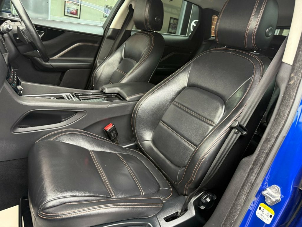 ….This is an excellent good looking example of a the luxurious JAGUAR F-PACE 2.0 D180 Prestige SUV 5dr Diesel Auto AWD Euro 6 (s/s) (180 ps) in a stunning shade of blue with sporty alloy wheels and great tyres all around. The vehicles modern cockpit is complemented by a first class specification including full leather seating and has a wealth of extras and safety features including Bluetooth, sat nav, DAB radio, lane departure, colour touchscreen display, dual climate control, cruise control, heated seats, heated steering wheel, parking sensors front and rear, voice recognition, auto lights/wipers on, heated front screen, multiple airbags .multi function steering wheel, electric windows and door mirrors remote central locking the list is endless!!! This HPI clear Jaguar with 2 keys, will receive a fresh 12 month MOT pre collection, has a wealth of history and truly looks and drives superbly!!! ANY TEST OR TRIAL WELCOME...…OPEN 7 DAYS A WEEK.....TOP WARRANTY PACKAGES AVAILABLE....£0 ADMIN FEE CHARGED ON ALL IN HOUSE FINANCE AGREEMENTS!!! 18in Alloy Wheels - 10 Spoke Style 1018 , 2-Zone Climate Control, 20d AWD Badge, 3-Flash Lane Change Indicators, 325mm Front Brakes, 40-20-40 Split Fold Rear Seat, 5in Display with Instrument Panel, 8-Way Manual Front Seats, ABS - Anti-locking Braking System, AEB - Autonomous Emergency Braking, ASPC - All Surface Progress Control, Airbags - Front Side, Airbags - Full Length Side Window Curtai, Ambient Interior Lighting, Approach Illumination, Auto-Dimming Interior Rear View Mirror, Bluetooth Audio Streaming, Bluetooth Telephone Connectivity, Body-Coloured Rear Bumper with Grained B, Brake Pad Wear Indicator, Carpet Mats, Centre Console - Side Stowage, Centre Console - Storage Surround Finish