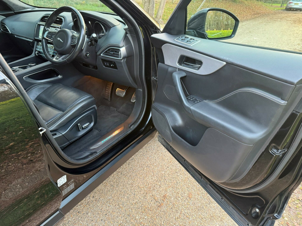 2019''68''REG PRIVATE REG INCLUDED, FINISHED IN SANTORINI BLACK METALLIC, 2 PREVIOUS OWNERS, 6 SERVICES, 1 YEARS MOT, 2 SETS OF KEYS, HIGH SPEC WITH LOTS OF ADDED OPTIONS FRONT FACTORY,PAN ROOF WITH BLIND, WINTER PACK-HEATED FRONT/REAR SEATS + STEERING WHEEL, ELECTRIC MEMORY SEATS, HEATED WINDSCREEN, UPGRADED 10.2''INTERIOR INFORMATION SCREEN, REVERSING CAMERA, LANE ASSIST, SUEDE ROOF LINING, POWER BOOT, ELECTRIC RETRACTABLE TOW BAR, ILLUMINATED KICK PLATES, DYNAMIC DRIVING MODES, AA APPROVED DEALER, 12 MONTHS AA BREAKDOWN COVER, 3 MONTHS WARRANTY AS STANDARD WITH OPTIONS TO EXTEND TO FULL COVER FOR 12/24/36 MONTHS, FCA REGULATED, ALL IN HOUSE FINANCE OPTIONS AVAILABLE THROUGH OUR LARGE PANEL OF LENDERS, ANY PX CONSIDERED, VIEWING BY APPOINTMENT ONLY, This 2019 Jaguar F PACE D180 R-Sport boasts a clear vehicle history, offering you peace of mind. This stylish SUV features a powerful 2.0L diesel engine paired with a Four Wheel Drive system, ensuring confident handling in various conditions. As a Euro 6 compliant vehicle, it meets modern emission standards. The R-Sport trim level enhances its already impressive presence, and with a towing weight of 2400 kg, it is ready for your adventures.Experience exceptional comfort and convenience with this F PACE. The R-Sport model includes a striking Fixed Panoramic Roof, perfect for enjoying the sky above. For practicality, it is equipped with an Electrically Deployable Tow Bar, making towing straightforward. Inside, you will find Heated Front and Rear Seats for all occupants, a Heated Steering Wheel for those chilly mornings, and a Memory Pack for the 10-way adjustable seats, allowing you to easily recall your preferred driving position. The generous boot space provides ample room for luggage or shopping. This Jaguar F PACE accelerates from 0-60mph in a brisk 8.4 seconds, demonstrating its capable performance. in touch pro dual view, 2x 12v power sockets in second row, park assist, rear view camera, 19in alloy wheels - 7 split-spoke style 7012, electrically deployable tow bar, fixed panoramic roof, gloss black grille with satin chrome surround, heated front windscreen, privacy glass, 10-way electric front seats, cold climate pack, heated front and rear seats, heated steering wheel, illuminated metal loadspace scuff plate, memory pack for 10-way seats, meshed aluminium trim finisher, driver assist pack, advanced parking assist pack, 19in alloy wheels - 5 split-spoke style 5038 - grey diamond turned, 2-zone climate control, 20d awd badge, 3-flash lane change indicators, 325mm front brakes, 40-20-40 split fold rear seat, 5in display with instrument panel, 8-way manual front seats, abs - anti-locking braking system, aeb - autonomous emergency braking, aspc - all surface progress control, airbags - front side, airbags - full length side window curtain, ambient interior lighting, approach illumination, auto-dimming interior rear view mirror, bluetooth audio streaming, bluetooth telephone connectivity, brake pad wear indicator, bright metal pedals, carpet mats, centre console - side stowage, centre console - storage surround finishers - satin chrome, centre console with armrest, cruise control with speed limiter, digital audio broadcast - dab - radio, door mirrors - body coloured, door trim - luxtec, dynamic stability control and traction control, dynamic volume control, eba - emergency brake assist, eco driving style assistant, epas - electric power assisted steering, epb - electronic parking brake - drive away release, ebony morzine headlining, electric windows - front and rear with one-touch open-close and anti-trap, electrically adjustable heated door mirrors, etched aluminium trim finisher, front airbags with passenger seat occupant detector, front fog lights, front headrests, front parking aid, gloss black roof rails, gloss black side window surround, grained black radiator grille with satin chrome surround, green tinted glass, hazard lights under heavy braking, heated front seats, heated rear window, hill launch assist, hook in loadspace, isofix rear, incontrol apps, interior front door handles with separate locking switches, jaguar script and leaper, jaguar sound system, jaguar tyre repair system, jaguardrive control, led tail lights, lane departure warning, loadbay - luggage tie downs, lockable glovebox with jaguar script finisher, luxtec wrapped instrument panel topper, manually adjustable steering column, metal treadplates with r-sport branding, navigation system, outside temperature gauge, overhead lighting console, passive front head restraints, perimeter alarm, power boot lid, power operated child locks, power sockets, power tailgate, protect for warranty period, push button start, r-sport body kit, rain sensing windscreen wipers, rear air vents, rear armrest with twin cupholders, rear f-pace badge, rear fog lights, rear parking aid, remote control central locking, remote premium for warranty period, reversible boot floor - carpet-rubber, satin chrome side vents with r-sport badge, satin chrome touchscreen surround, seat belt reminder, seats - sports, second row centre headrest, single sided twin tailpipes with 75mm finishers, single view 8in touchscreen for touch, speed proportional steering, start up sequence with movement - dials and lighting, steering wheel - multi-function, steering wheel - r sport branded soft grain leather, steering wheel - satin chrome paddles, torque vectoring, traffic sign recognition with intelligent speed limiter, trailer stability assist, trip computer, twin front cupholders with cover, tyre pressure monitoring system, valet mode, variable intermittent wipers, vehicle immobiliser, wi-fi hotspot, xenon headlights with led signature