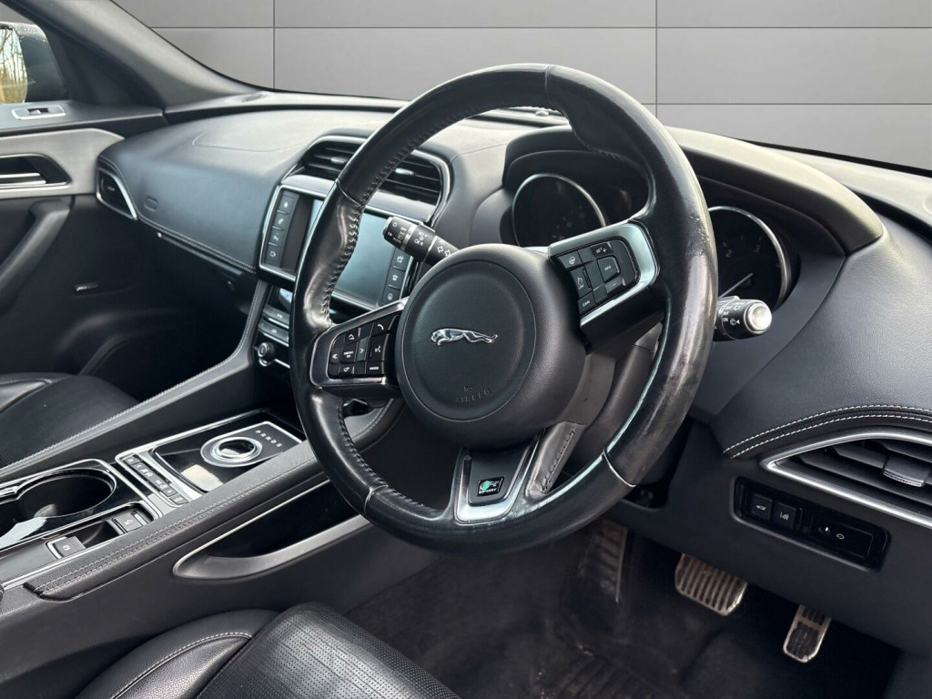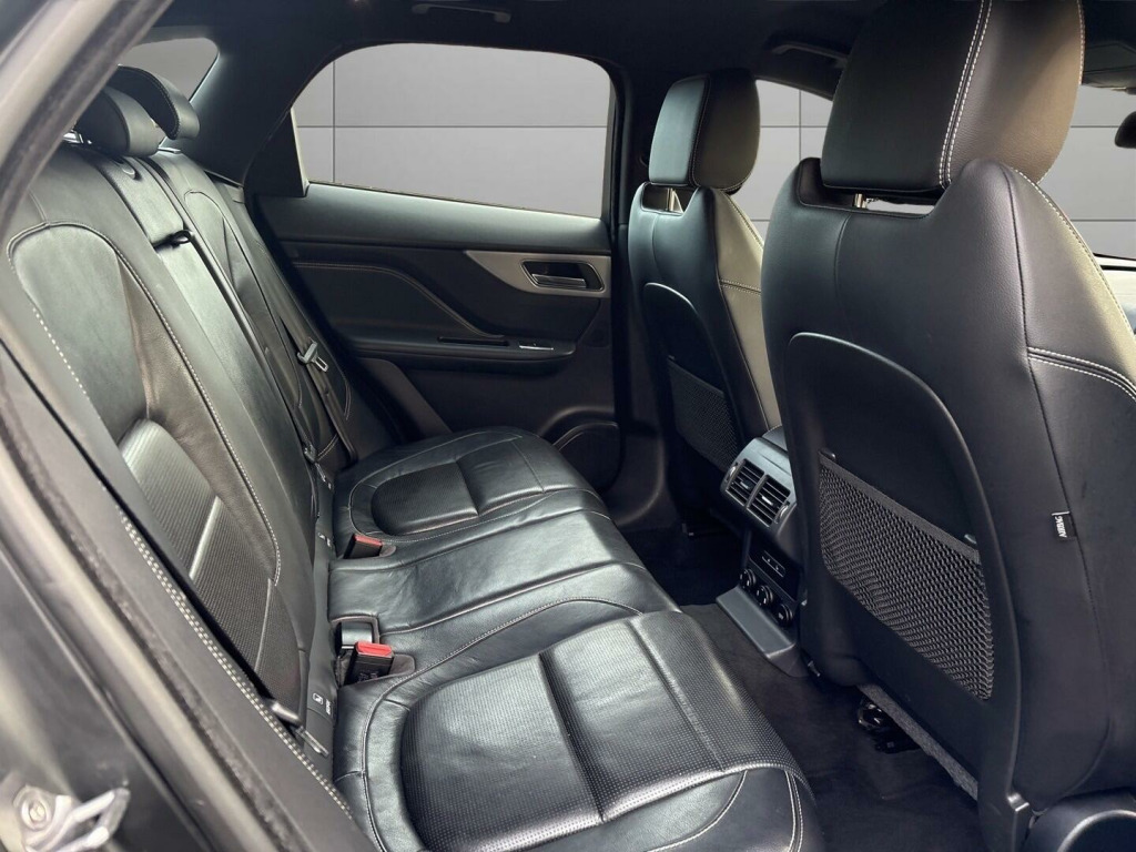 This 2017 Jaguar F-PACE D180 R-Sport offers a compelling blend of performance and practicality. As a Euro 6 compliant model, this Four Wheel Drive SUV is equipped with a 2.0L diesel engine, delivering an impressive 53 miles per gallon. The R-Sport trim enhances its appeal with features such as front and rear parking aids, automatic headlights, and Bluetooth telephone connectivity for seamless communication on the go. Inside, you'll find a 2-zone climate control system to ensure comfort for all occupants, and a generous boot space perfect for luggage or shopping.The Jaguar F-PACE D180 R-Sport stands out with its dynamic capabilities, accelerating from 0-60mph in just 8.2 seconds, demonstrating its responsive power. This performance, combined with its substantial 2400 kg towing weight, makes it a versatile choice for various needs. These highlights indicate how this Jaguar F-PACE offers a superior driving experience and enhanced utility compared to other vehicles in its class.. 12V Power Socket - Front, 12V Power Socket - Rear - Luggage Compartment, 12V Power Socket - Row Two, 19in Alloy Wheels -Bionic Twin 5-Spoke - Grey Diamond Turned Finish, 2-Zone Climate Control, 3 Month Trial Data Plan, 3-Flash Lane Change Indicators, 40-20-40 Split Fold Rear Seat, 80 Watt, ABS - Anti-locking Braking System, AEB - Autonomous Emergency Braking, AM-FM Radio, ASPC - All Surface Progress Control, Airbags - Driver, Airbags - Front Side, Airbags - Full Length Side Curtain, Airbags - Passenger, Analogue Dials with 5in Full Colour TFT Display, Approach Illumination - Automatic via Remote, Auto-Dimming Interior Rear View Mirror, Automatic Headlight On, Aux-In - 3.5mm, Bluetooth Audio Streaming, Bluetooth Telephone Connectivity, Bootlid - Powertrain Badging - 20d AWD, Bootlid Jaguar Leaper and Wordmarque, Bootlid Nameplate Badge, Brake Pad Wear Indicator, Bright Metallic Sports Pedals, Bumper Blade - Satin Chrome, Bumper Outer Grille Bezel and Mesh - Grained Black, Capacitive Touchscreen, Carpet Mats - Jet, Centre Console - Side Stowage, Centre Console - Storage Surround Finishers - Satin Chrome, Centre Lower Valence - Grained Black, Cruise Control with Adaptive Speed Limiter, DAB Radio + and DMB, Daytime Running Lights - LED, Door Claddings - Body Coloured with Grained Black Finisher - R-Sport, Door Mirrors - Body Coloured, Door Mirrors - Electric Adjustment-Heated with Blacked Side Repeaters, Door Trim - Luxtec, Dynamic Route Guidance, Dynamic Stability Control - DSC, Dynamic Volume Control, EBA - Emergency Brake Assist, ECO Data, EPB - Electric Parking Brake, Electric Windows - Front and Rear with One-Touch Open-Close and Anti-Trap, Etched Aluminium Veneer, Fold Flat 6 Degrees - Row 2 Seats, Follow Me Home Lighting, Front Armrest with Storage Compartment, Front Fog Lights, Front Parking Aid, Glove Compartment Lockable, Glovebox Finisher with Jaguar Wordmark, Hazard Lights Under Heavy Braking, Head Restraint - Rear Centre, Headlight Power Wash, Headlights - Self Leveling, Headlights - Xenon, Headlining - Morzine - Jet, Headrest - Manual Adjustable, Heat Insulating Glass - Green All-round, Heated Front Seats, Hill Launch Assist, ISOFIX Rear, InControl - Remote Esstentials, InControl Apps, InControl Protect, InControl Remote Premium, InControl Touch Navigation - SD, InControl WiFi, Instrument Panel Topper - Cuir Grain Wrapped, Instrument Panel Upper Fascia - Jet, Interior Front Door Handles with Separate Locking Switches, Interior Mood Lighting, Jaguar Sequential Shift, Jaguar Smart Key System with Keyless Start, Jaguar Sound System - 180W, Jaguar Tyre Repair System, JaguarDrive Control with Dynamic - Normal - ECO and Winter, JaguarSense - Overhead Light Console, JaguarVoice, LED Tail Lights, Lane Departure Warning, Loadbay - Premium Luggage Tie Downs, Metal Treadplates with R-Sport Branding, Optimised Assistance Call, Outside Temperature Gauge, Passive Front Head Restraints - Whiplash Protection, Perimeter Alarm, Power Operated Child Locks, Power Steering - Speed Sensitive, Powered Tailgate, R-Sport Front Bumper, Radiator Grille - Grained Black Insert with Satin Chrome Surround, Rain Sensing Windscreen Wipers, Rear Armrest with Cupholder, Rear Bumpers with Corners - Body Coloured - R-Sport, Rear Cup Holders in Armrest, Rear Parking Aid, Remote Control Central Locking, Reversible Boot Floor - Carpet-Rubber, Roof Rails - Gloss Black, Row 2 Air Vents, SOS Emergency Call with Automatic Collision Detection, Satin Chrome Frame - Touchscreen, Seat - Cushion Height - Manual, Seat - Squab Recline - Manual, Seat Belt Reminder, Seat Occupant Detector - Passenger, Seats - Front - Back Map Pockets, Seats - Front 8x8 Way Manual Adjustment, Seats - Front Height Adjustable - Manual, Seats - Sports, Shopping Bag Hook in Trunk, Side Fender Vents - Satin Chrome - R-Sport Badge, Side Window Finisher - Gloss Black, Single Sided Twin Tailpipes with 75mm Finishers, Speakers x6, Start Up Sequence, Steering Column - Reach and Rake, Steering Whe.