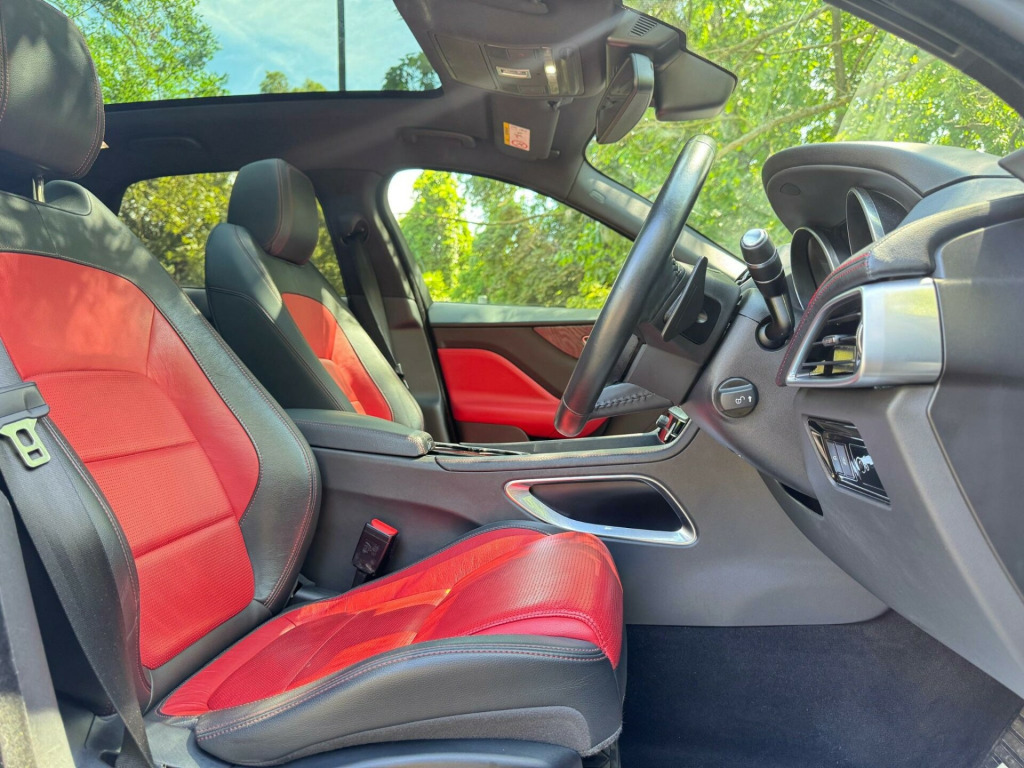 Please call for finance, 6 month warranty included, MOT July 2026, Panoramic roof, Black and red contrast interior, Front and rear parking sensors, Satellite navigation, Bluetooth connectivity with audio playback, Rain sensing wipers, Automatic headlight activation, Sports seats with Bolster Support, USB Connectivity, Dual climate control, Voice control, Cruise control, Bluetooth connectivity, Sun protection glass, Electric mirrors, Electric windows, Remote central locking, ULEZ Compliant, ULEZ Exempt, Euro 6, We are an AA Approved Dealer, This car has been checked by trained technicians and passed a multi-point inspection. All our cars come with a 12 Months free AA Membership as well as a free History Check. Finance options available with no administration fee and low interest rates, subject to status. Please ring for details. Part Exchange Welcome. Extended Warranties Available. HPI Clear, All major cards accepted, Nationwide delivery available, 5 Day drive-away insurance available; T's & C's apply v power socket - front, 12v power socket - rear - luggage compartment, 12v power socket - row two, 19in alloy wheels -bionic twin 5-spoke - grey diamond turned finish, 2-zone climate control, 3 month trial data plan, 3-flash lane change indicators, 40-20-40 split fold rear seat, 80 watt, abs - anti-locking braking system, aeb - autonomous emergency braking, am-fm radio, aspc - all surface progress control, airbags - driver, airbags - front side, airbags - full length side curtain, airbags - passenger, analogue dials with 5in full colour tft display, approach illumination - automatic via remote, auto-dimming interior rear view mirror, automatic headlight on, aux-in - 3.5mm, bluetooth audio streaming, bluetooth telephone connectivity, bootlid - powertrain badging - 20d awd, bootlid jaguar leaper and wordmarque, bootlid nameplate badge, brake pad wear indicator, bright metallic sports pedals, bumper blade - satin chrome, bumper outer grille bezel and mesh - grained black, capacitive touchscreen, carpet mats - jet, centre console - side stowage, centre console - storage surround finishers - satin chrome, centre lower valence - grained black, cruise control with adaptive speed limiter, dab radio + and dmb, daytime running lights - led, door claddings - body coloured with grained black finisher - r-sport, door mirrors - body coloured, door mirrors - electric adjustment-heated with blacked side repeaters, door trim - luxtec, dynamic route guidance, dynamic stability control - dsc, dynamic volume control, eba - emergency brake assist, eco data, epb - electric parking brake, electric windows - front and rear with one-touch open-close and anti-trap, etched aluminium veneer, fold flat 6 degrees - row 2 seats, follow me home lighting, front armrest with storage compartment, front fog lights, front parking aid, glove compartment lockable, glovebox finisher with jaguar wordmark, hazard lights under heavy braking, head restraint - rear centre, headlight power wash, headlights - self leveling, headlights - xenon, headlining - morzine - jet, headrest - manual adjustable, heat insulating glass - green all-round, heated front seats, hill launch assist, isofix rear, incontrol - remote esstentials, incontrol apps, incontrol protect, incontrol remote premium, incontrol touch navigation - sd, incontrol wifi, instrument panel topper - cuir grain wrapped, instrument panel upper fascia - jet, interior front door handles with separate locking switches, interior mood lighting, jaguar sequential shift, jaguar smart key system with keyless start, jaguar sound system - 180w, jaguar tyre repair system, jaguardrive control with dynamic - normal - eco and winter, jaguarsense - overhead light console, jaguarvoice, led tail lights, lane departure warning, loadbay - premium luggage tie downs, metal treadplates with r-sport branding, optimised assistance call, outside temperature gauge, passive front head restraints - whiplash protection, perimeter alarm, power operated child locks, power steering - speed sensitive, powered tailgate, r-sport front bumper, radiator grille - grained black insert with satin chrome surround, rain sensing windscreen wipers, rear armrest with cupholder, rear bumpers with corners - body coloured - r-sport, rear cup holders in armrest, rear parking aid, remote control central locking, reversible boot floor - carpet-rubber, roof rails - gloss black, row 2 air vents, sos emergency call with automatic collision detection, satin chrome frame - touchscreen, seat - cushion height - manual, seat - squab recline - manual, seat belt reminder, seat occupant detector - passenger, seats - front - back map pockets, seats - front 8x8 way manual adjustment, seats - front height adjustable - manual, seats - sports, shopping bag hook in trunk, side fender vents - satin chrome - r-sport badge, side window finisher - gloss black, single sided twin tailpipes with 75mm finishers, speakers x6, start up sequence, steering column - reach and rake, steering wheel - black paddles with illumination, steering wheel - multi-function, steering wheel - r sport branded sport style softgrain leather with satin chrome highlight, sunglasses holder in overhead console, text to speech, torque vectoring by braking - tvbb, traction control, traffic sign recognition with intelligent speed limiter, trailer stability control, trip computer, twin front cupholders, tyre pressure monitoring system, usb socket - row two - x2, valet mode, valet mode - lockable trunk - stowage - glove box, variable intermittent wipers, vehicle immobiliser, vertical air curtains - body coloured, windscreen - heated with timer, ipod integration
