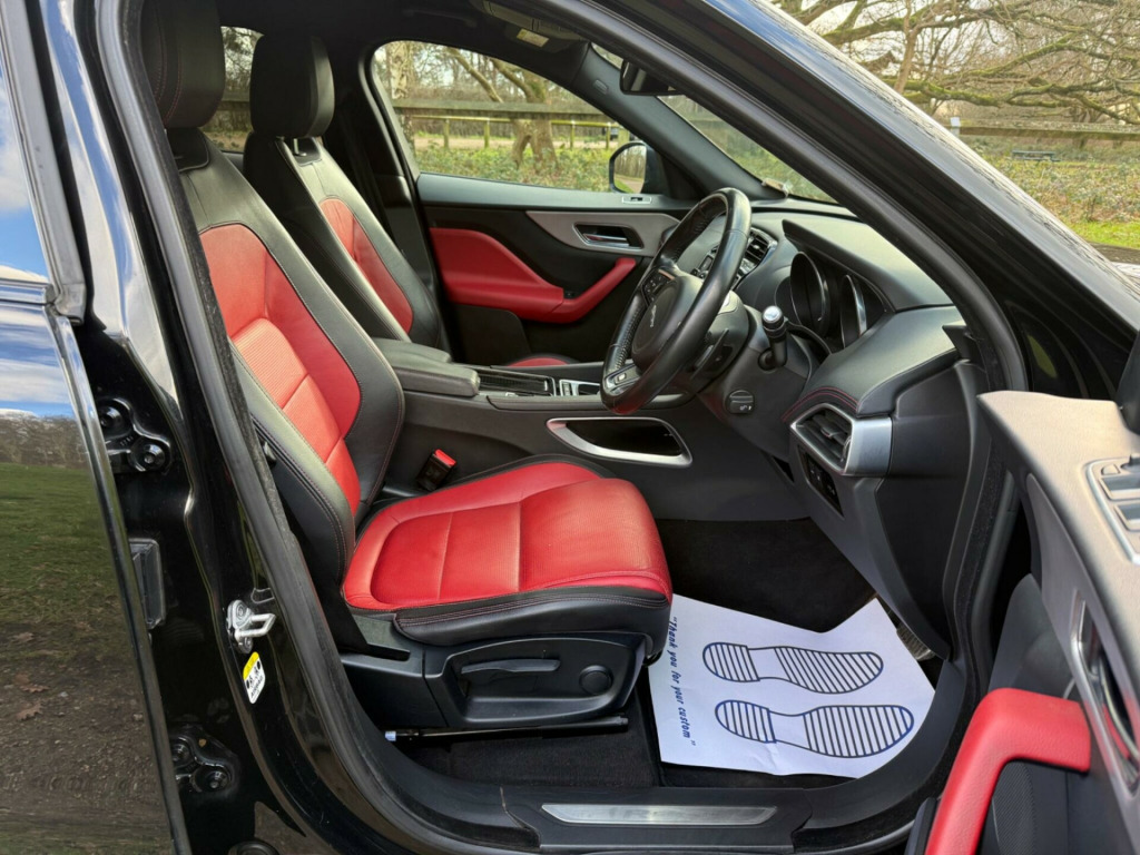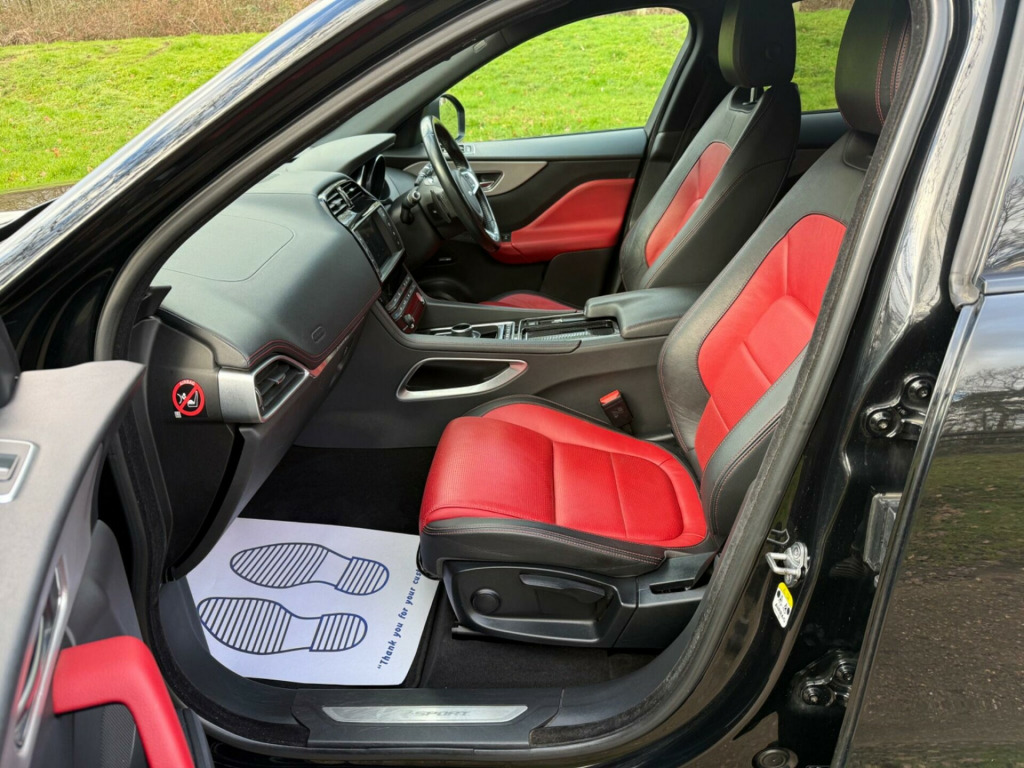 TIMING CHAIN REPLACED IN 2023, UP TO DATE SERVICE HISTORY LAST SERVICE AT 81K, 2 KEYS, 1 YEARS MOT, FINISHED IN OBSIDIAN BLACK, SAT NAV, HEATED BLACK AND RED INTERIOR, BLACK PACK, 20'' ALLOYS, PRIVACY GLASS, XENON HEADLIGHTS, REVERSE CAMERA, POWERBOOT, AMBIENT LIGHTING, ALL THE USUAL R-SPORT SPEC, RUNS AND DRIVES SUPERB, VIEWING BY APPOINTMENT ONLY, ANY PX CONSIDERED, 12 MONTHS BREAKDOWN INCLUDED, 3 MONTHS WARRANTY WITH OPTIONS TO EXTEND FOR 12/24/36 MONTHS, FCA REGULATED, ALL FINANCE OPTIONS ARRANGED IN HOUSE THROUGH OUR LARGE PANEL OF LENDERS.This 2016 Jaguar F-PACE D180 R-Sport boasts a clear vehicle history, offering peace of mind for its next owner. This stylish SUV features a powerful yet efficient 2.0L Euro 6 diesel engine paired with a Four Wheel Drive system, ensuring confident handling in various conditions. The R-Sport trim level enhances its appeal with striking 20 inch grey diamond turned alloy wheels and sophisticated LED headlights. Inside, you'll find a premium Meridian 380W sound system, configurable interior mood lighting for a personalised atmosphere, and a helpful rear view camera with parking assistance.Experience impressive performance with an acceleration of 0 to 60 mph in just 8.2 seconds, a figure that stands out amongst similar vehicles. This F-PACE also offers excellent fuel economy, achieving a remarkable 53 mpg, making it an economical choice for everyday driving and longer journeys. Furthermore, its generous boot space provides ample room for luggage, shopping, or sports equipment, demonstrating its practicality. With a substantial towing weight of 2400 kg, this Jaguar F-PACE is as capable as it is refined. v power socket - front, 12v power socket - rear - luggage compartment, 12v power socket - row two, 19in alloy wheels -bionic twin 5-spoke - grey diamond turned finish, 2-zone climate control, 3 month trial data plan, 3-flash lane change indicators, 40-20-40 split fold rear seat, 80 watt, abs - anti-locking braking system, aeb - autonomous emergency braking, am-fm radio, aspc - all surface progress control, airbags - driver, airbags - front side, airbags - full length side curtain, airbags - passenger, analogue dials with 5in full colour tft display, approach illumination - automatic via remote, auto-dimming interior rear view mirror, automatic headlight on, aux-in - 3.5mm, bluetooth audio streaming, bluetooth telephone connectivity, bootlid - powertrain badging - 20d awd, bootlid jaguar leaper and wordmarque, bootlid nameplate badge, brake pad wear indicator, bright metallic sports pedals, bumper blade - satin chrome, bumper outer grille bezel and mesh - grained black, capacitive touchscreen, carpet mats - jet, centre console - side stowage, centre console - storage surround finishers - satin chrome, centre lower valence - grained black, cruise control with adaptive speed limiter, dab radio + and dmb, daytime running lights - led, door claddings - body coloured with grained black finisher - r-sport, door mirrors - body coloured, door mirrors - electric adjustment-heated with blacked side repeaters, door trim - luxtec, dynamic route guidance, dynamic stability control - dsc, dynamic volume control, eba - emergency brake assist, eco data, epb - electric parking brake, electric windows - front and rear with one-touch open-close and anti-trap, etched aluminium veneer, fold flat 6 degrees - row 2 seats, follow me home lighting, front armrest with storage compartment, front fog lights, front parking aid, glove compartment lockable, glovebox finisher with jaguar wordmark, hazard lights under heavy braking, head restraint - rear centre, headlight power wash, headlights - self leveling, headlights - xenon, headlining - morzine - jet, headrest - manual adjustable, heat insulating glass - green all-round, heated front seats, hill launch assist, isofix rear, incontrol - remote esstentials, incontrol apps, incontrol protect, incontrol remote premium, incontrol touch navigation - sd, incontrol wifi, instrument panel topper - cuir grain wrapped, instrument panel upper fascia - jet, interior front door handles with separate locking switches, interior mood lighting, jaguar sequential shift, jaguar smart key system with keyless start, jaguar sound system - 180w, jaguar tyre repair system, jaguardrive control with dynamic - normal - eco and winter, jaguarsense - overhead light console, jaguarvoice, led tail lights, lane departure warning, loadbay - premium luggage tie downs, metal treadplates with r-sport branding, optimised assistance call, outside temperature gauge, passive front head restraints - whiplash protection, perimeter alarm, power operated child locks, power steering - speed sensitive, powered tailgate, r-sport front bumper, radiator grille - grained black insert with satin chrome surround, rain sensing windscreen wipers, rear armrest with cupholder, rear bumpers with corners - body coloured - r-sport, rear cup holders in armrest, rear parking aid, remote control central locking, reversible boot floor - carpet-rubber, roof rails - gloss black, row 2 air vents, sos emergency call with automatic collision detection, satin chrome frame - touchscreen, seat - cushion height - manual, seat - squab recline - manual, seat belt reminder, seat occupant detector - passenger, seats - front - back map pockets, seats - front 8x8 way manual adjustment, seats - front height adjustable - manual, seats - sports, shopping bag hook in trunk, side fender vents - satin chrome - r-sport badge, side window finisher - gloss black, single sided twin tailpipes with 75mm finishers, speakers x6, start up sequence, steering column - reach and rake, steering wheel - black paddles with illumination, steering wheel - multi-function, steering wheel - r sport branded sport style softgrain leather with satin chrome highlight, sunglasses holder in overhead console, text to speech, torque vectoring by braking - tvbb, traction control, traffic sign recognition with intelligent speed limiter, trailer 