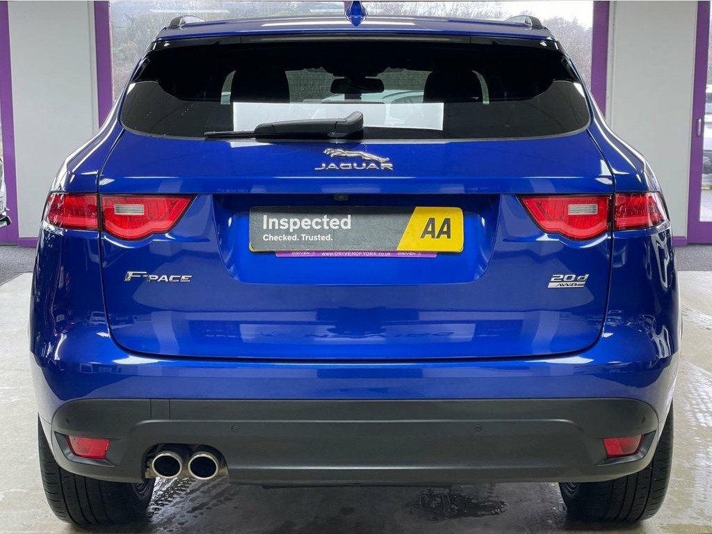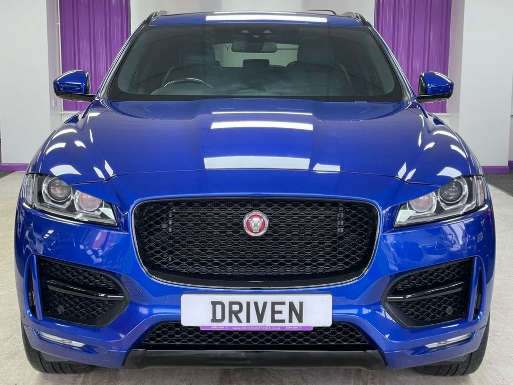 Driven Of York Are Proud To Present This 2018 18 Jaguar F-pace 2.0 R-Sport AWD Presented In Caesium Blue With Complimenting Ebony Leather Interior. This Stunning Example Features 20" Gloss Black Alloy Wheels, R-Sport Black Pack, Touch Screen Infotainment System, SAT NAV, Bluetooth, AUX And USB Connectivity, FULL PANORAMIC GLASS ROOF! Air Conditioning With Dual Zone Climate Control, Electric Heated Front Seats, Heated Front Windscreen, Power Tailgate, Cruise Control With Limiter, Front And Rear Parking Sensors With Reverse Camera, Automatic F1 Style Paddleshift Gearbox, Sports Drive Modes, Speed Limit Awareness, Driver Condition Monitor, FULL SERVICE HISTORY! Reserve This Stunning Vehicle Now For £149 Caesium Blue, Perforated Grained Leather - Ebony-Light, Rear View Camera, Heated Front Windscreen, Privacy Glass, Fixed Panoramic Roof, Black Pack - R-Sport, 20in Alloy Wheels - 10 Split-Spoke Style, 19in Alloy Wheels - 5 Split-Spoke Style , 2-Zone Climate Control, 20d AWD Badge, 3-Flash Lane Change Indicators, 325mm Front Brakes, 40-20-40 Split Fold Rear Seat, 5in Display with Instrument Panel, 8-Way Manual Front Seats, ABS - Anti-locking Braking System, AEB - Autonomous Emergency Braking, ASPC - All Surface Progress Control, Airbags - Front Side, Airbags - Full Length Side Window Curtai, Ambient Interior Lighting, Approach Illumination, Auto-Dimming Interior Rear View Mirror, Bluetooth Aud