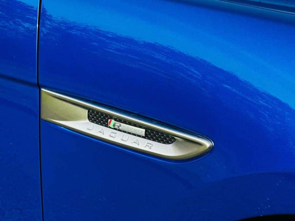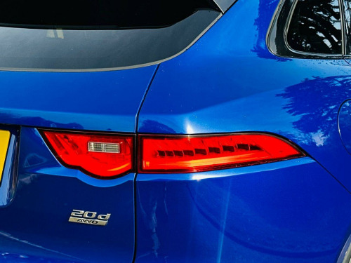 . 10in Touch Pro, 19in Alloy Wheels - 5 Split-Spoke Style 5038 - Grey Diamond Turned, 2-Zone Climate Control, 20d AWD Badge, 3-Flash Lane Change Indicators, 325mm Front Brakes, 40-20-40 Split Fold Rear Seat, 8-Way Manual Front Seats, ABS - Anti-locking Braking System, AM-FM Radio, ASPC - All Surface Progress Control, Airbags - Front Side, Airbags - Full Length Side Window Curtain, Ambient Interior Lighting, Analogue Dials with Central TFT Display, Android Auto, Apple CarPlay, Approach Illumination, Auto-Dimming Interior Rear View Mirror, Bluetooth Connectivity, Bluetooth Streaming, Body Coloured Door Mirror Caps, Body-Coloured R-Sport Door Claddings with Satin Black Finishers, Brake Pad Wear Indicator, Bright Metal Pedals, Centre Console - Side Stowage, Centre Console - Storage Surround Finishers - Satin Chrome, Centre Console with Armrest, Connect Pro, Cruise Control with Speed Limiter, Digital Audio Broadcast - DAB - Radio, Door Trim - Luxtec, Driver Condition Monitor, Dynamic Stability Control - DSC, Dynamic Volume Control, EBA - Emergency Brake Assist, ECO Driving Style Assistant, EPAS - Electric Power Assisted Steering, EPB - Electronic Parking Brake, Ebony Suedecloth Headlining, Electric Windows - Front and Rear with One-Touch Open-Close and Anti-Trap, Electrically Adjustable Heated Door Mirrors, Emergency Braking, Etched Aluminium Trim Finisher, F-PACE Badge, Front Airbags with Passenger Seat Occupant Detector, Front Bumper - R Sport, Front Fog Lights, Front Headrests, Front Windscreen with Non-acoustic Layer, Front and Rear Parking Aid, Gloss Black Roof Rails, Gloss Black Side Window Surround, Glovebox Finisher with Jaguar Script, Grained Black Grille with Satin Chrome Surround, Green Tinted Glass, Headlight Power Wash, Heated Front Seats, Heated Rear Window, Hill Launch Assist, Hook in Loadspace, ISOFIX Rear, Illuminated Metal Treadplates with Brand-Name Script, InControl Apps, Interior Front Door Handles with Separate Locking Switches, Jaguar Script and Leaper, Jaguar Sound System, Jaguar Tyre Repair System, JaguarDrive Control, LED Tail Lights, Lane Keep Assist, Lockable Glovebox, Luggage Tie Downs in Loadspace, Luxtec Wrapped Instrument Panel Topper with Wrapped Binnacle, Manually Adjustable Steering Column, Metal Loadspace Scuff Plate, Navigation Pro, No Loadspace Storage Rails, Open Differential with Torque Vectoring by Braking, Outside Temperature Gauge, Overhead Lighting Console, Passive Front Head Restraints, Power Operated Child Locks, Power Sockets, Powered Tailgate - Boot Lid, Premium Carpet Mats, Pro Services and Wi-Fi Hotspot, Protect for Warranty Period, R-Sport Rear Bumper, Rain Sensing Windscreen Wipers, Rear Air Vents, Rear Armrest with Twin Cupholders, Rear Camera, Rear Centre Headrest, Rear Fog Lights, Rear Metal Treadplates, Remote Premium, Rotary Shifter, Satin Chrome Gearshift Paddles, Satin Chrome Side Vents with R-Sport Badge, Satin Chrome Touchscreen Surround, Seat Belt Reminder, Seats - Sports, Single Sided Twin Tailpipes with 75mm Finishers, Speed Proportional Steering, Start Up Sequence with Movement - Dials and Lighting, Steering Wheel - Multi-Function, Steering Wheel - R Sport Branded Soft Grain Leather, Traffic Sign Recognition with Adaptive Speed Limiter, Trailer Stability Assist, Trip Computer, Twin Front Cupholders with Cover, Tyre Pressure Monitoring System, Unpainted Brake Calipers, Valet Mode, Variable Intermittent Wipers, Voice Control, Xenon Headlights with LED Signature, Caesium Blue, Fixed Panoramic Roof, 19in Alloy Wheels - 7 Split-Spoke Style 7012.