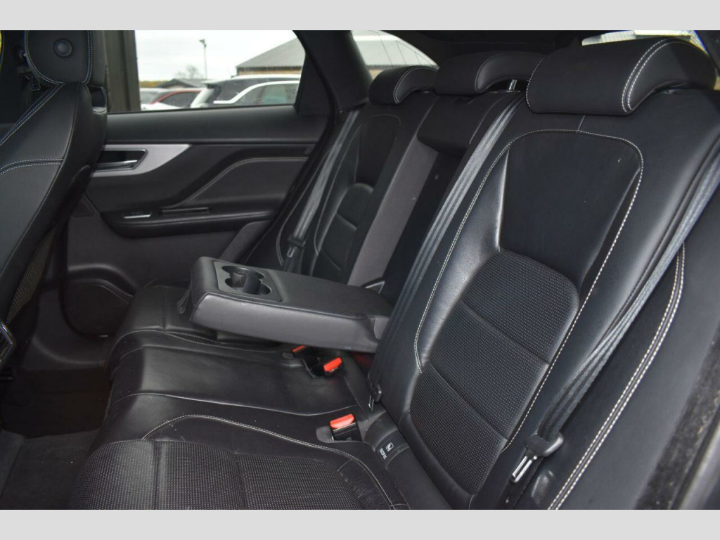 . 19in Alloy Wheels - 5 Split-Spoke Style 5038 - Grey Diamond Turned, 2-Zone Climate Control, 20d AWD Badge, 3-Flash Lane Change Indicators, 325mm Front Brakes, 40-20-40 Split Fold Rear Seat, 5in Display with Instrument Panel, 8-Way Manual Front Seats, ABS - Anti-locking Braking System, AEB - Autonomous Emergency Braking, ASPC - All Surface Progress Control, Airbags - Front Side, Airbags - Full Length Side Window Curtain, Ambient Interior Lighting, Approach Illumination, Auto-Dimming Interior Rear View Mirror, Bluetooth Audio Streaming, Bluetooth Telephone Connectivity, Brake Pad Wear Indicator, Bright Metal Pedals, Carpet Mats, Centre Console - Side Stowage, Centre Console - Storage Surround Finishers - Satin Chrome, Centre Console with Armrest, Cruise Control with Speed Limiter, Digital Audio Broadcast - DAB - Radio, Door Mirrors - Body Coloured, Door Trim - Luxtec, Dynamic Stability Control and Traction Control, Dynamic Volume Control, EBA - Emergency Brake Assist, ECO Driving Style Assistant, EPAS - Electric Power Assisted Steering, EPB - Electronic Parking Brake - Drive Away Release, Ebony Morzine Headlining, Electric Windows - Front and Rear with One-Touch Open-Close and Anti-Trap, Electrically Adjustable Heated Door Mirrors, Etched Aluminium Trim Finisher, Front Airbags with Passenger Seat Occupant Detector, Front Fog Lights, Front Headrests, Front Parking Aid, Gloss Black Roof Rails, Gloss Black Side Window Surround, Grained Black Radiator Grille with Satin Chrome Surround, Green Tinted Glass, Hazard Lights Under Heavy Braking, Heated Front Seats, Heated Rear Window, Hill Launch Assist, Hook in Loadspace, ISOFIX Rear, InControl Apps, Interior Front Door Handles with Separate Locking Switches, Jaguar Script and Leaper, Jaguar Sound System, Jaguar Tyre Repair System, JaguarDrive Control, LED Tail Lights, Lane Departure Warning, Loadbay - Luggage Tie Downs, Lockable Glovebox with Jaguar Script Finisher, Luxtec Wrapped Instrument Panel Topper, Manually Adjustable Steering Column, Metal Treadplates with R-Sport Branding, Navigation System, Outside Temperature Gauge, Overhead Lighting Console, Passive Front Head Restraints, Perimeter Alarm, Power Boot Lid, Power Operated Child Locks, Power Sockets, Power Tailgate, Protect for Warranty Period, Push Button Start, R-Sport Body Kit, Rain Sensing Windscreen Wipers, Rear Air Vents, Rear Armrest with Twin Cupholders, Rear F-Pace Badge, Rear Fog Lights, Rear Parking Aid, Remote Control Central Locking, Remote Premium for Warranty Period, Reversible Boot Floor - Carpet-Rubber, Satin Chrome Side Vents with R-Sport Badge, Satin Chrome Touchscreen Surround, Seat Belt Reminder, Seats - Sports, Second Row Centre Headrest, Single Sided Twin Tailpipes with 75mm Finishers, Single View 8in Touchscreen for Touch, Speed Proportional Steering, Start Up Sequence with Movement - Dials and Lighting, Steering Wheel - Multi-Function, Steering Wheel - R Sport Branded Soft Grain Leather, Steering Wheel - Satin Chrome Paddles, Torque Vectoring, Traffic Sign Recognition with Intelligent Speed Limiter, Trailer Stability Assist, Trip Computer, Twin Front Cupholders with Cover, Tyre Pressure Monitoring System, Valet Mode, Variable Intermittent Wipers, Vehicle Immobiliser, Wi-Fi Hotspot, Xenon Headlights with LED Signature.