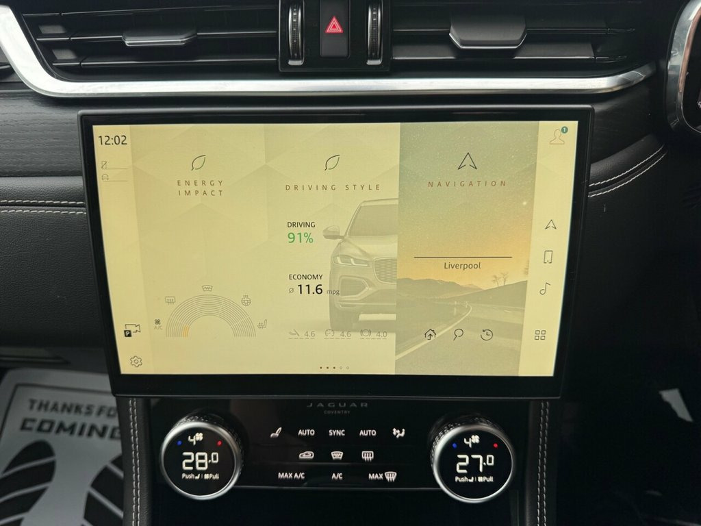 1 OWNER, 2 KEYS, FULL JAGUAR SERVICE HISTORY, JAG WARRANTY TILL END OF FEB 26, 20" ALLOYS, PANORAMIC ROOF, BI XENON LED LIGHTS, TABLET STYLE SAT NAV, REVERSE CAMERA, APPLE CAR PLAY, DAB RADIO, BLUETOOTH, CRUISE CONTROL, DUAL ZONE CLIMATE CONTROL, PDC, HEATED ELECTRIC SEATS, MULTI FUNCTIONAL STEERING WHEEL, ELECTRIC TAILGATE, BLACK PIANO WOOD, FULL LEATHER, IMMACULATE CONDITION THROUGHOUT.....12 MONTHS MOT AND SERVICE INCLUDED, HPI CLEAR, 3 MONTHS JAGUAR WARRANTY REMAINING! 12-Way Heated Electric Front Seats with , 2-Zone Climate Control, 20in Alloy Wheels - 10 Spoke Gloss Black, 3 Rear Headrests, 40-20-40 Folding Rear Seats with Centre , ABS - Anti-locking Braking System, Adaptive Cruise Control, Airbags - Front Side, Airbags - Full Length Side Window Curtai, Analogue Dials with Central TFT Display, Android Auto, Animated Directional Indicators, Apple CarPlay, Auto High Beam Assist, Auto-Dimming Interior Rear View Mirror, Automatic Headlights, Black Exterior Pack, Brake Pad Wear Indicator, Bright Metal Pedals, Digital Audio Broadcast - DAB - Radio, Driver Condition Monitor, Dynamic Stability Control - DSC, EBA - Emergency Brake Assist, EPAS - Electric Power As